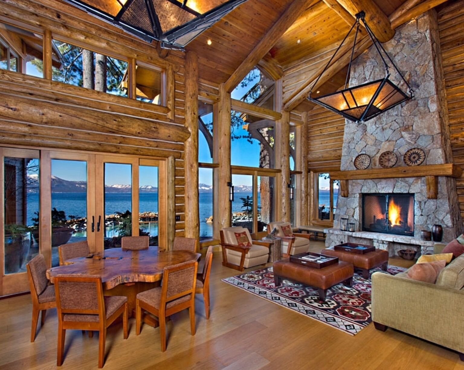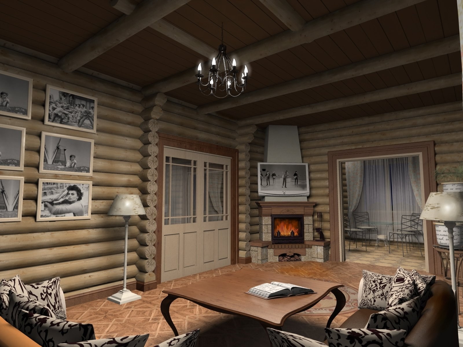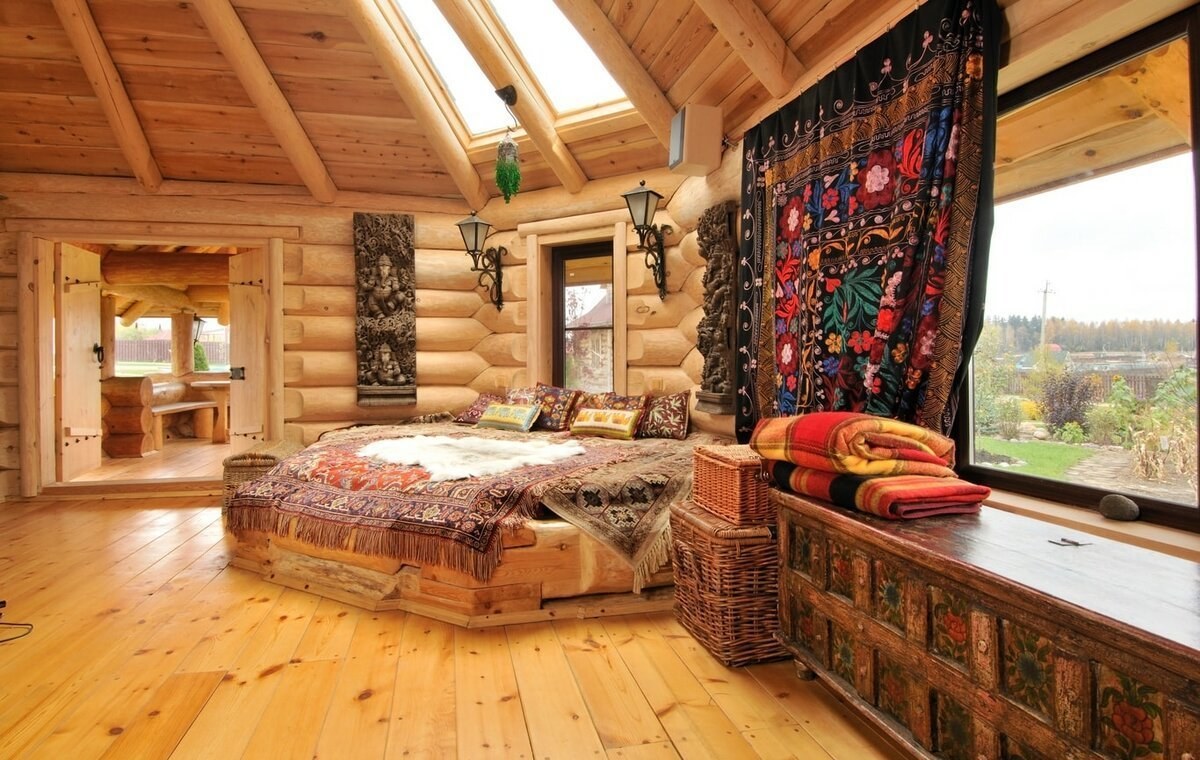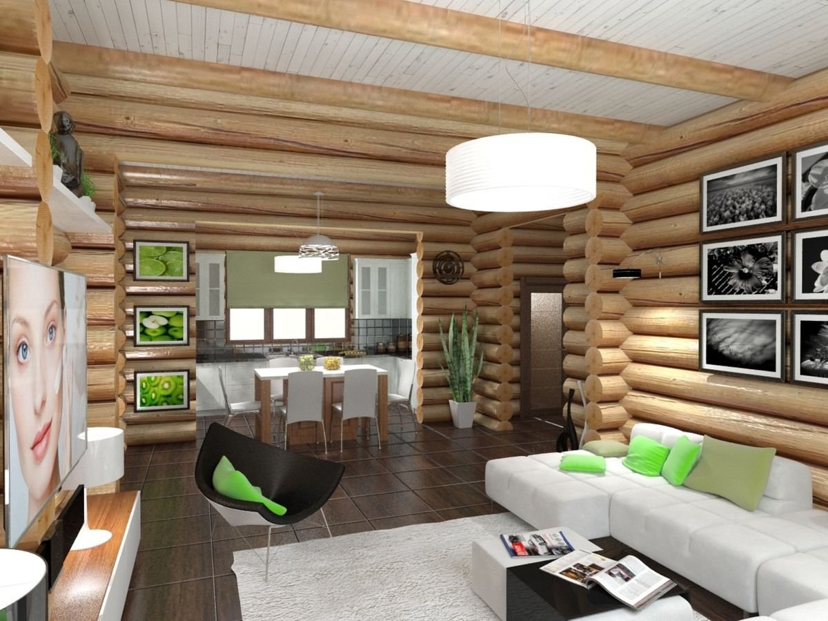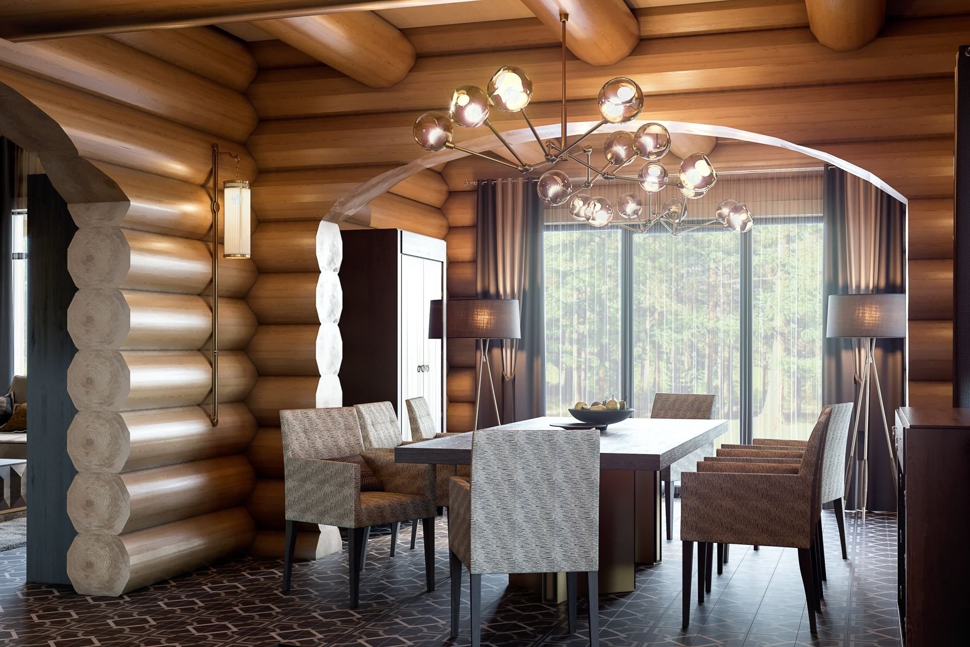 Дом из оцилиндрованного бревна интерьер стиль Кантри