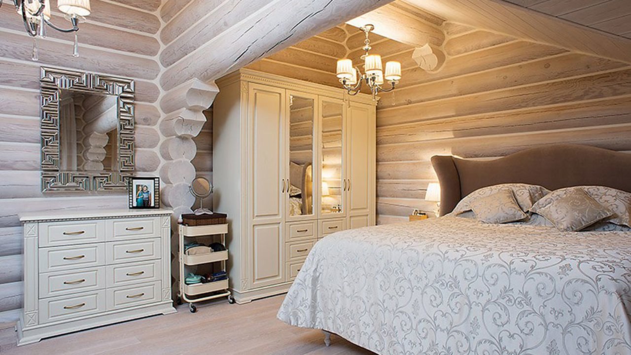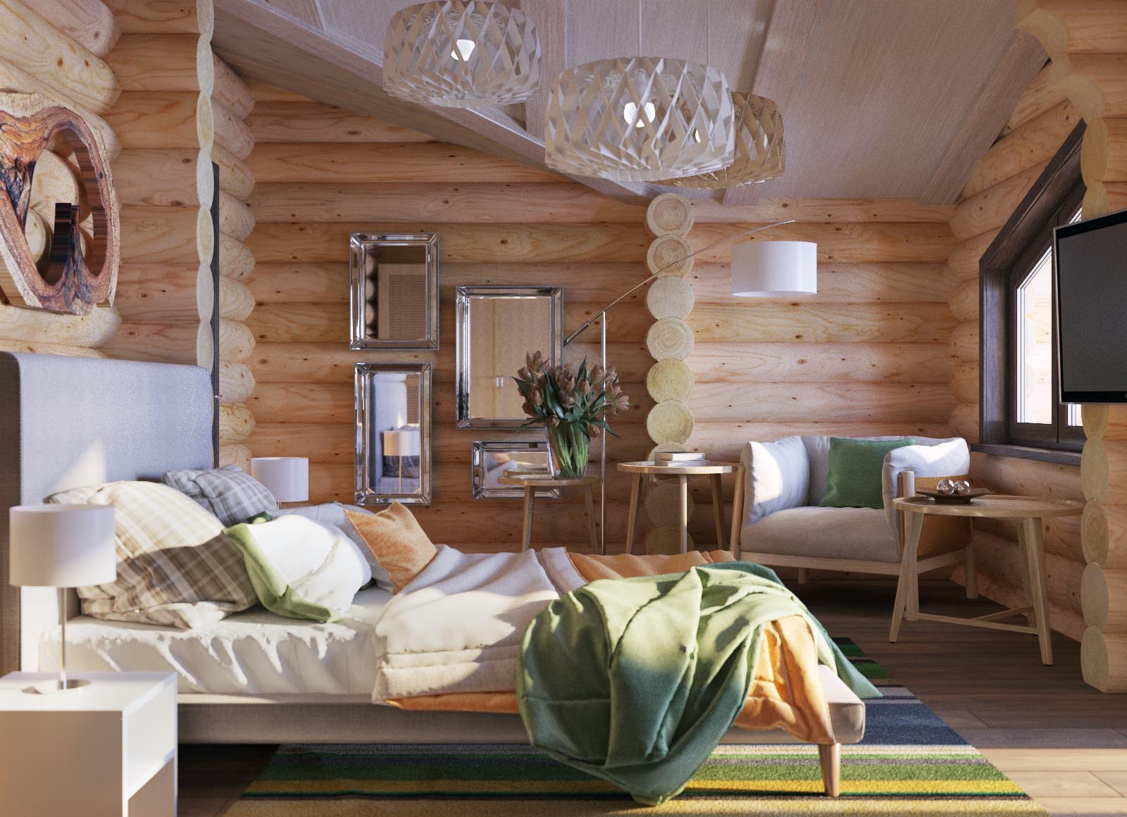 Интерьер в доме из оцилиндрованного бревна 6*6