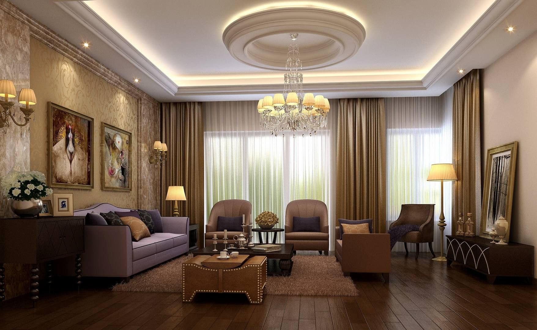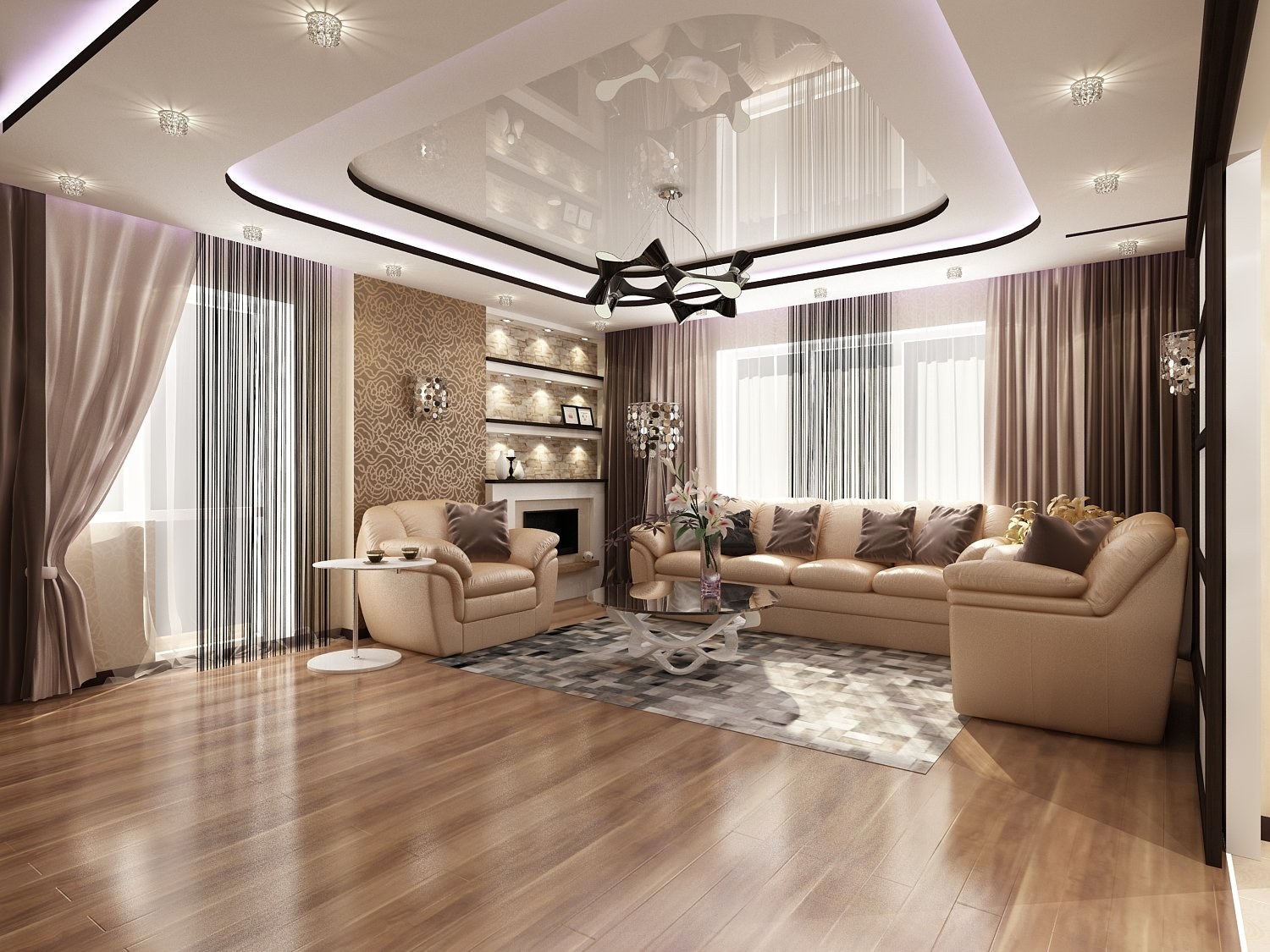 Красивый потолок в гостиной
