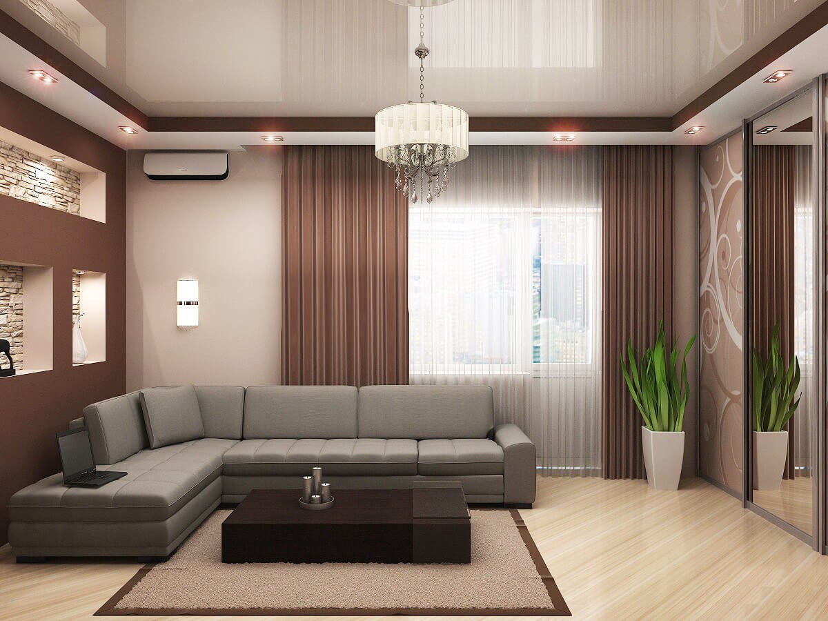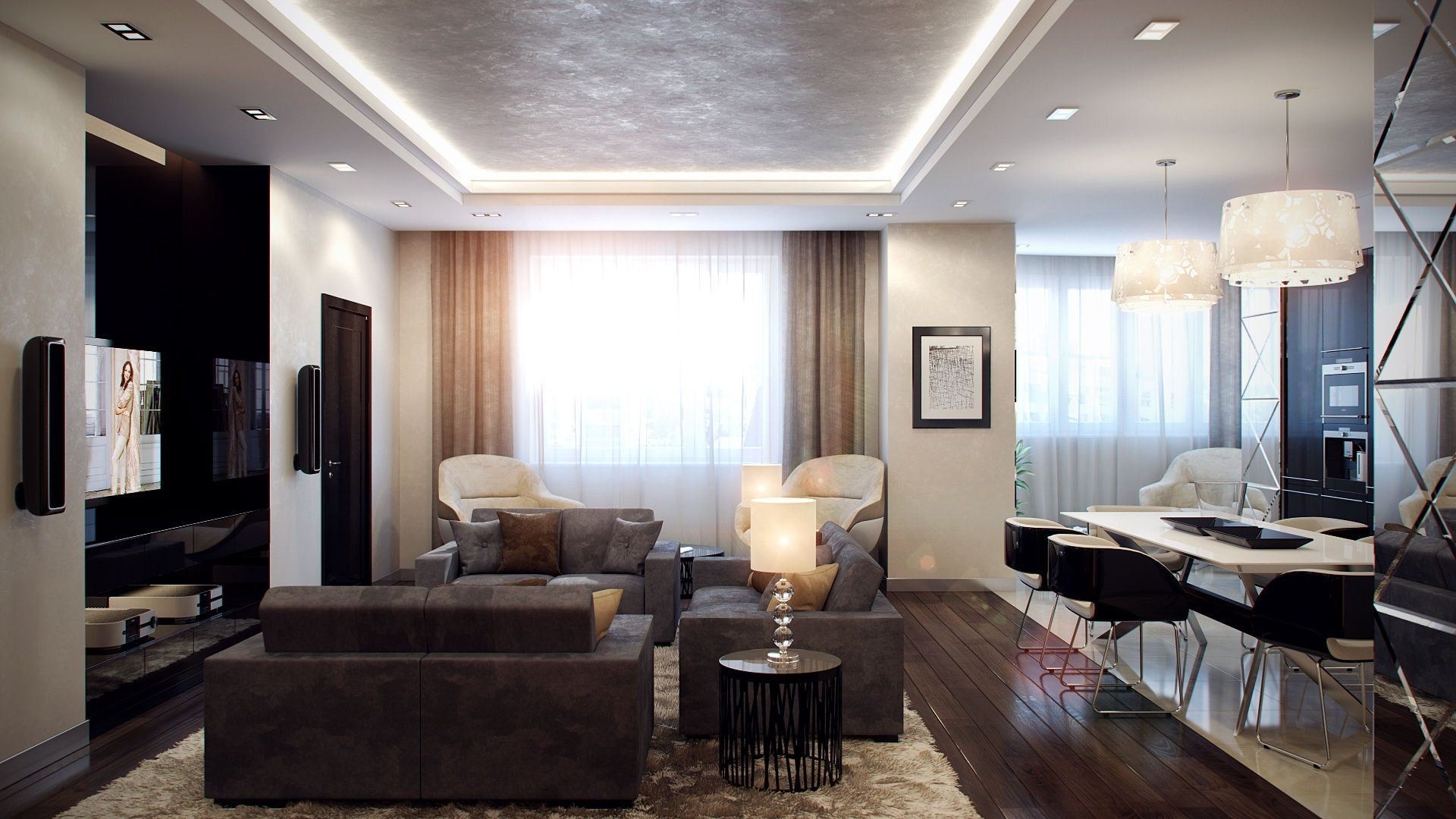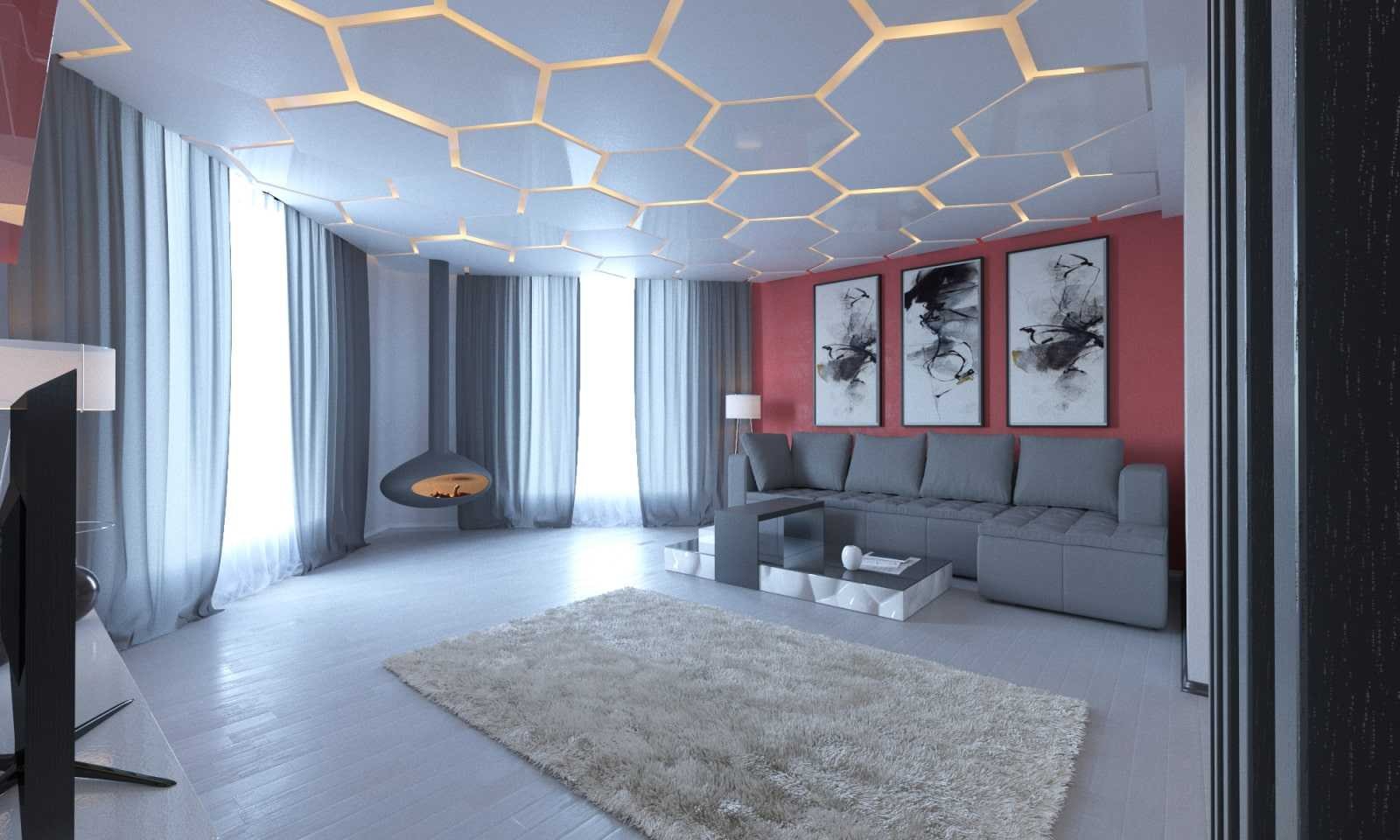 Потолок в гостиной в современном стиле