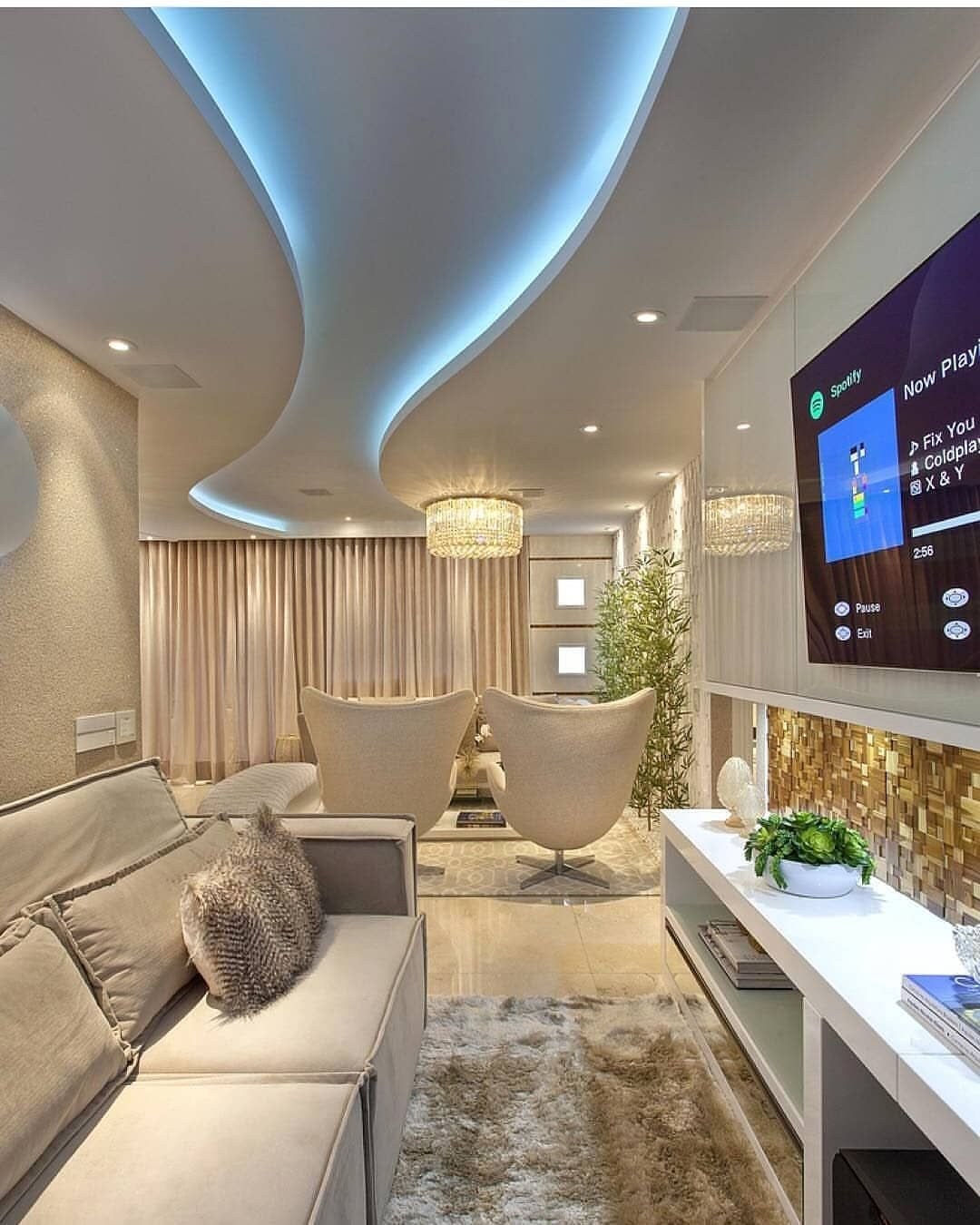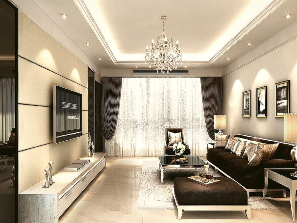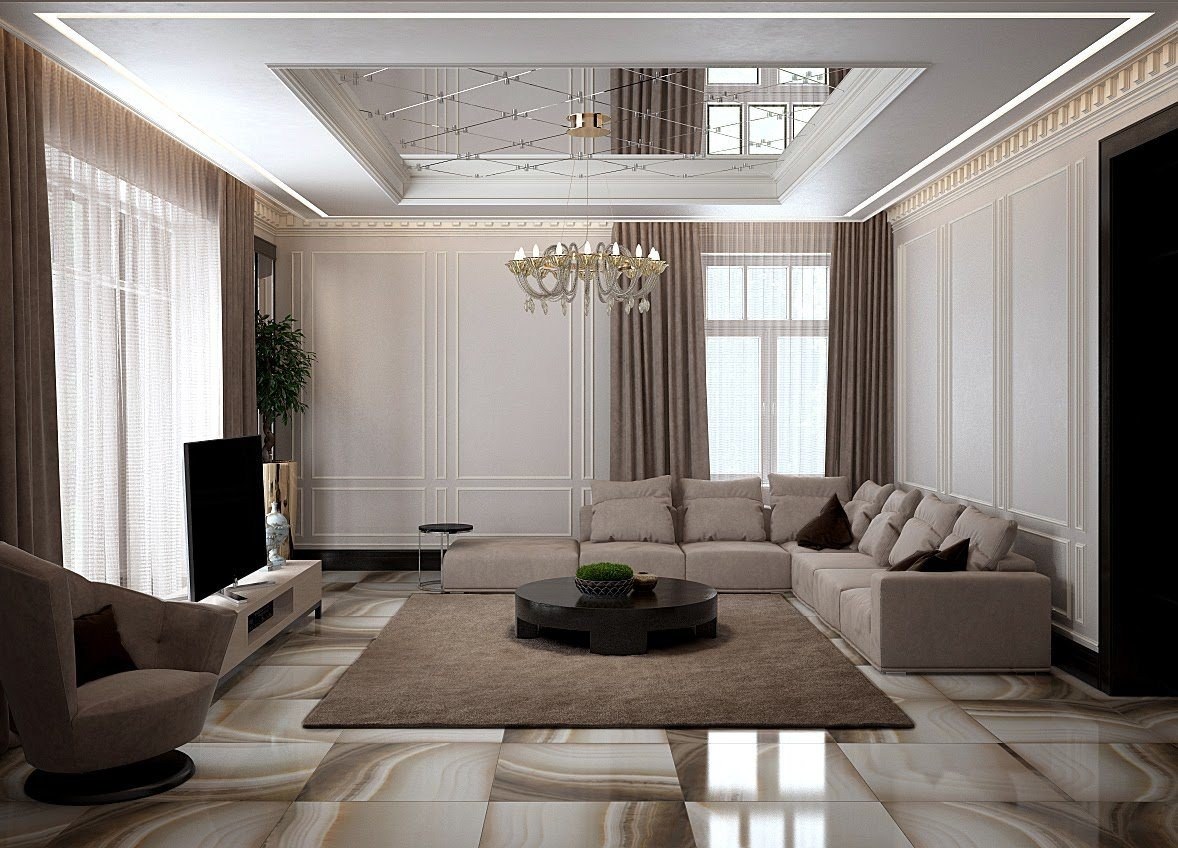 Интерьер потолка в гостиной (97 фото)