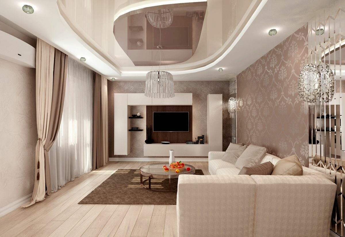 Натяжные потолки в гостиную
