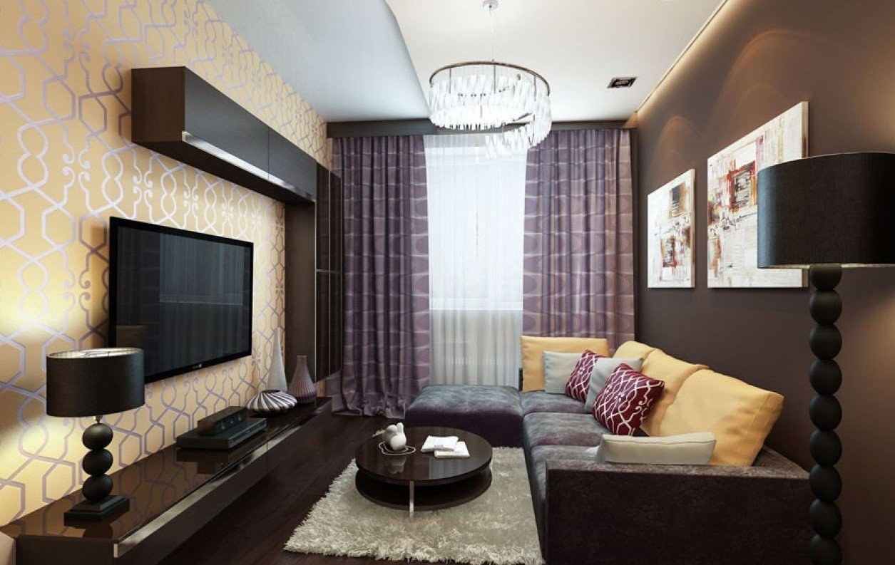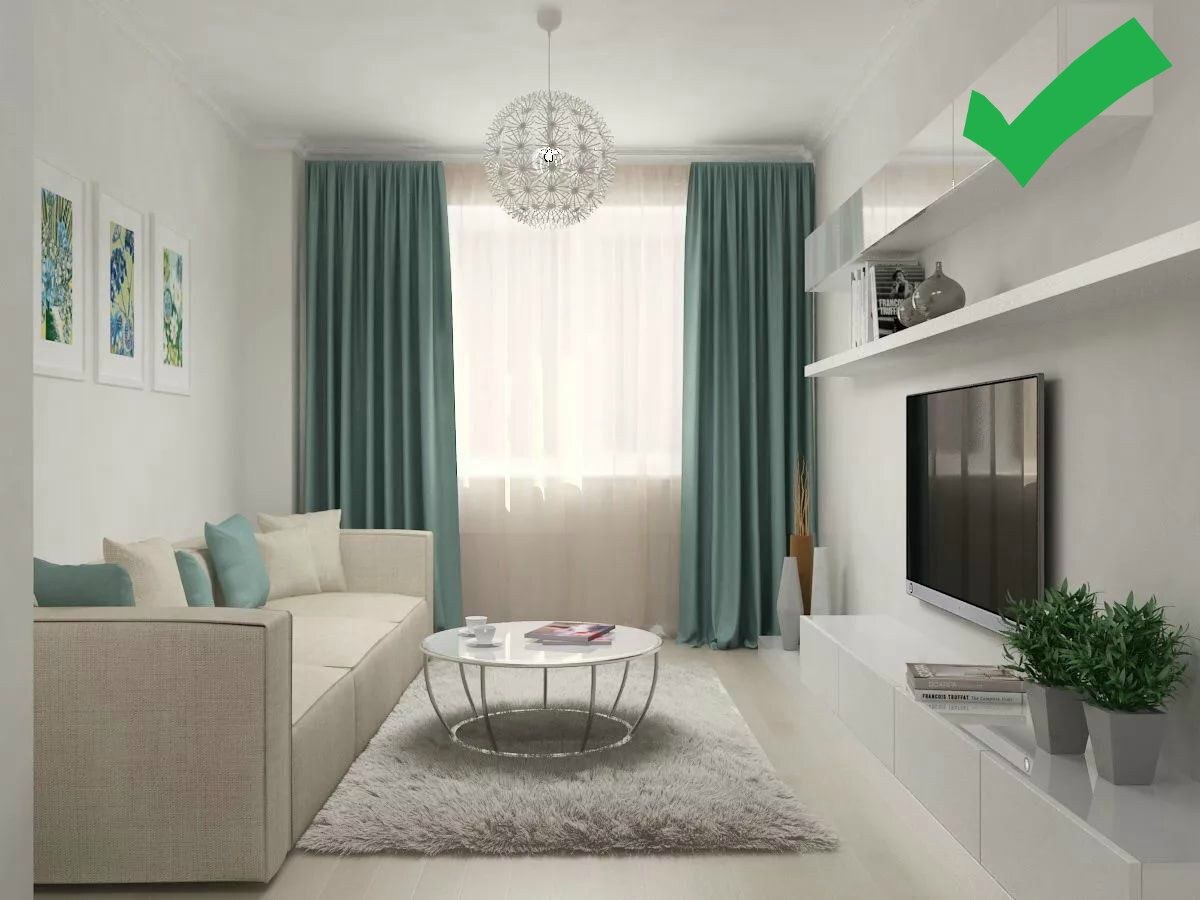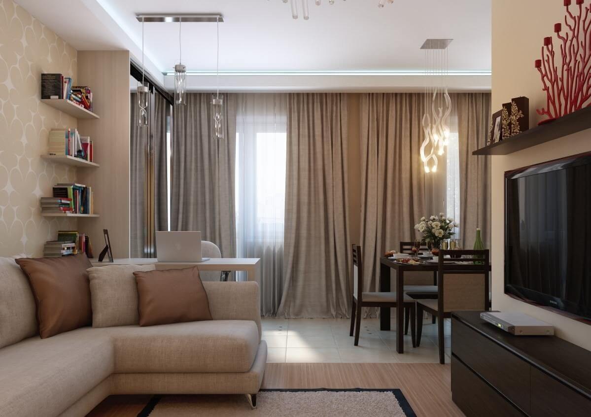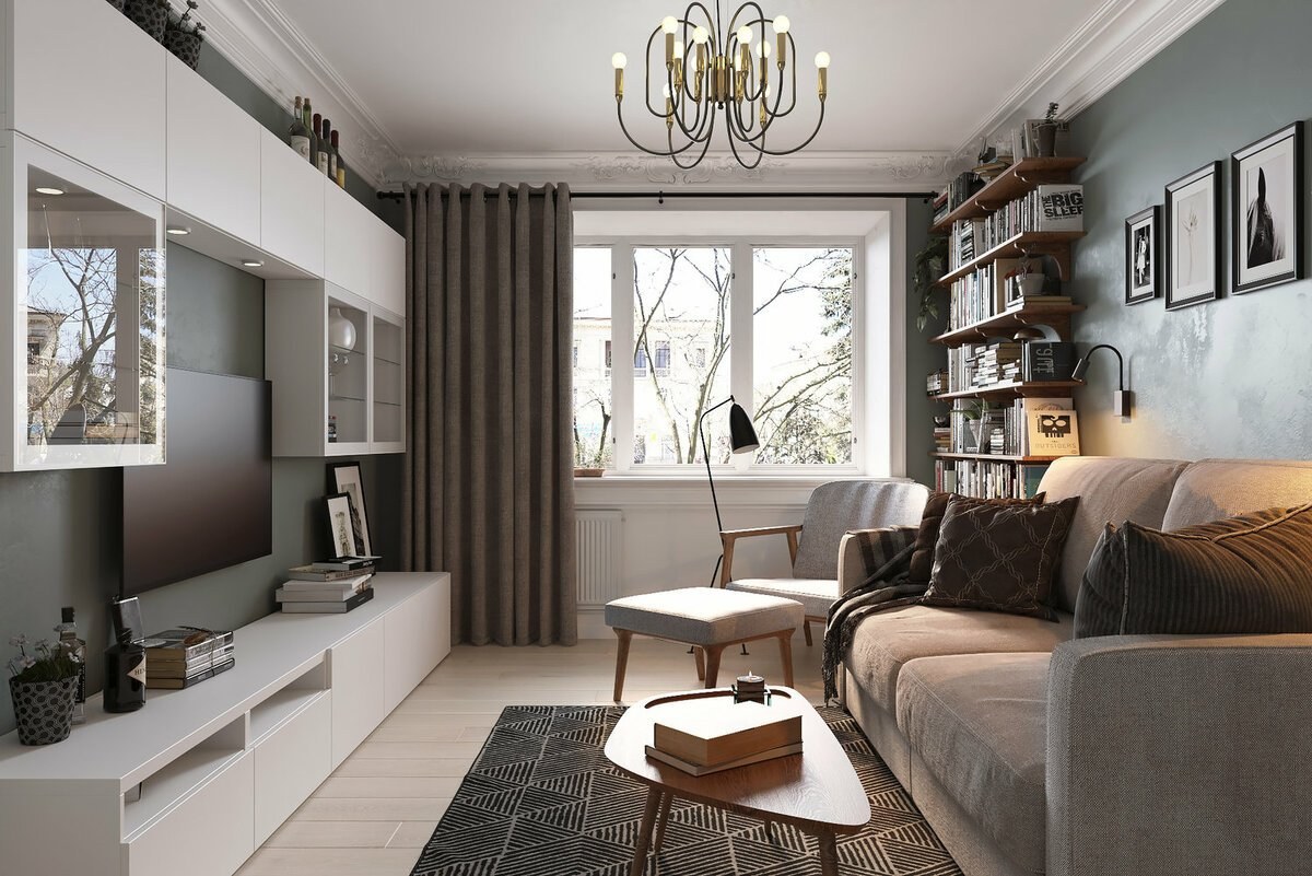 Интерьер гостиной 18 кв.м прямоугольной формы