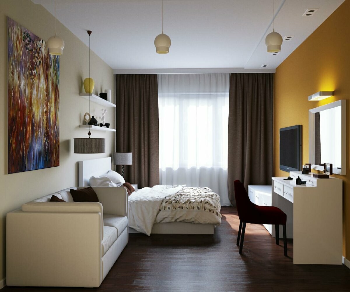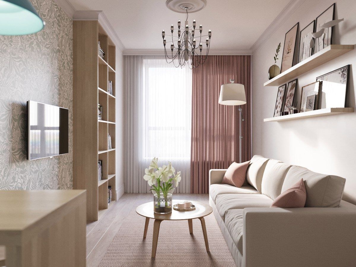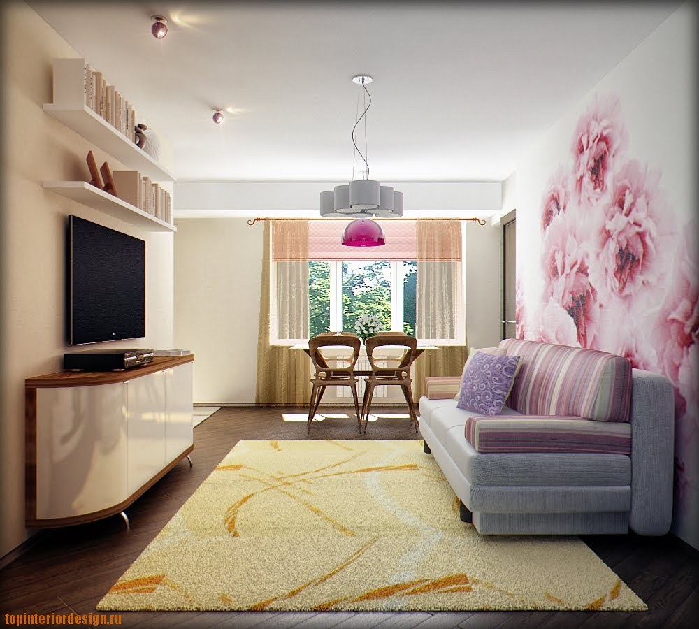 Интерьер гостиной 18 кв.м прямоугольной формы