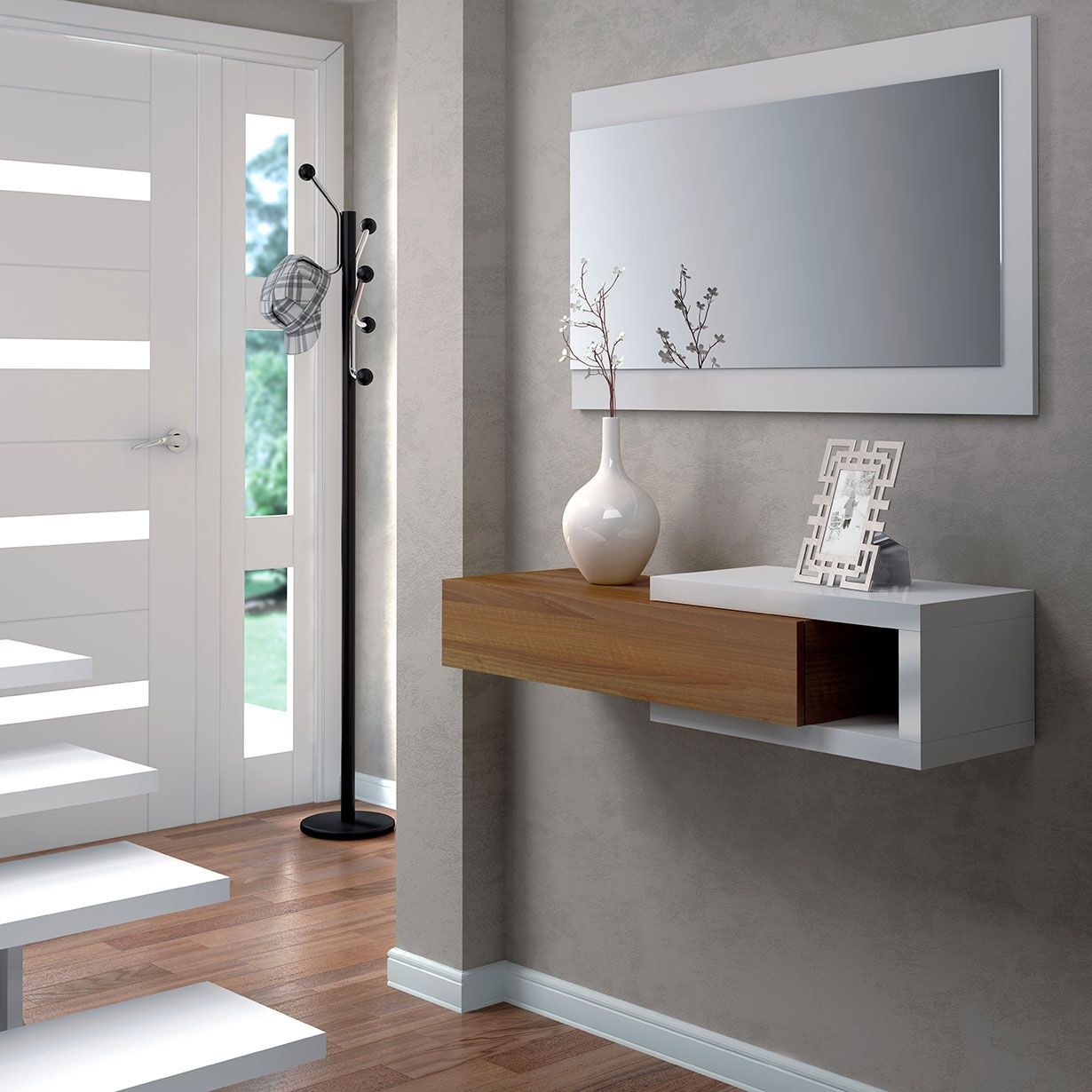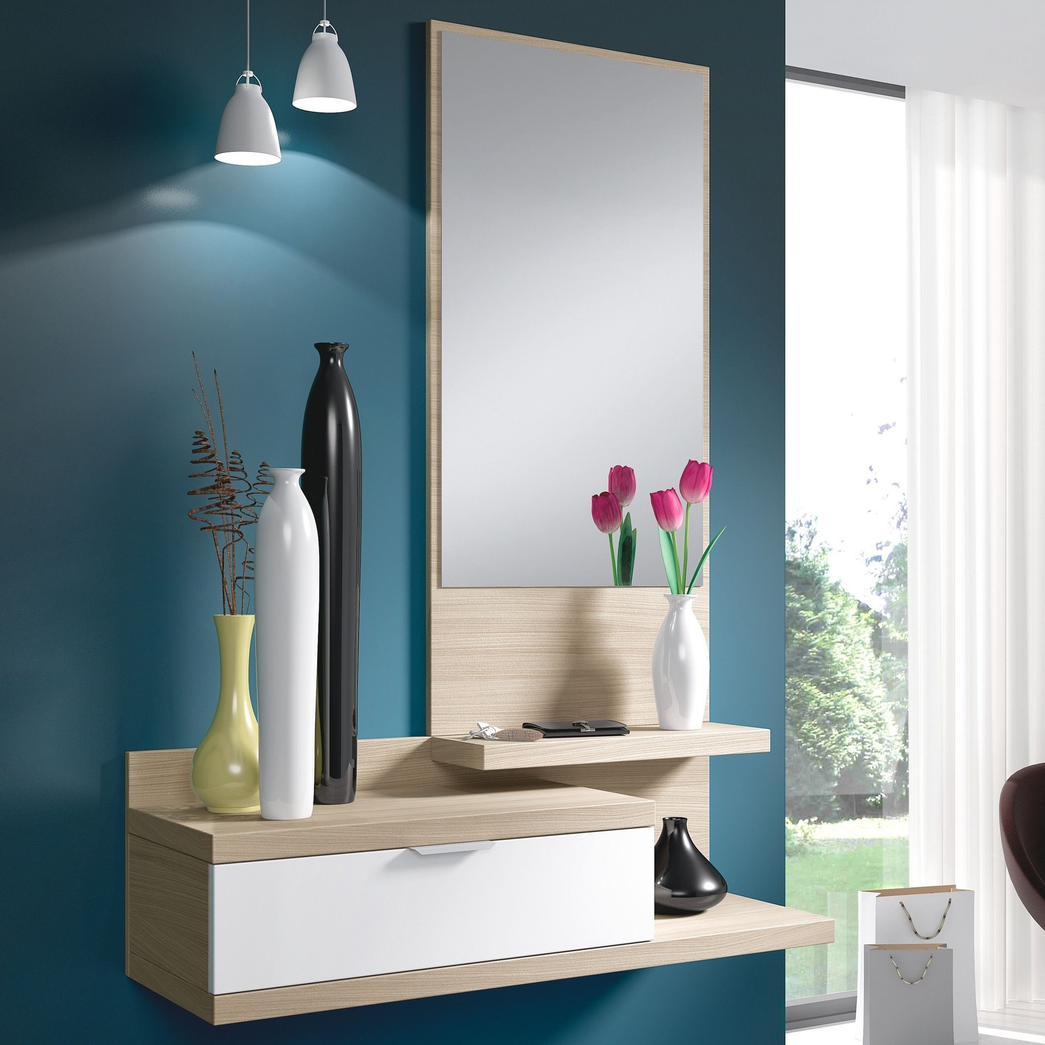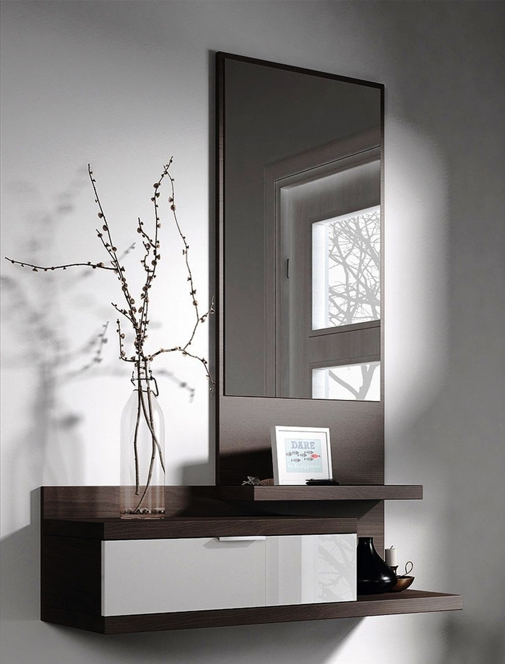 Подвесная консоль с зеркалом в прихожую