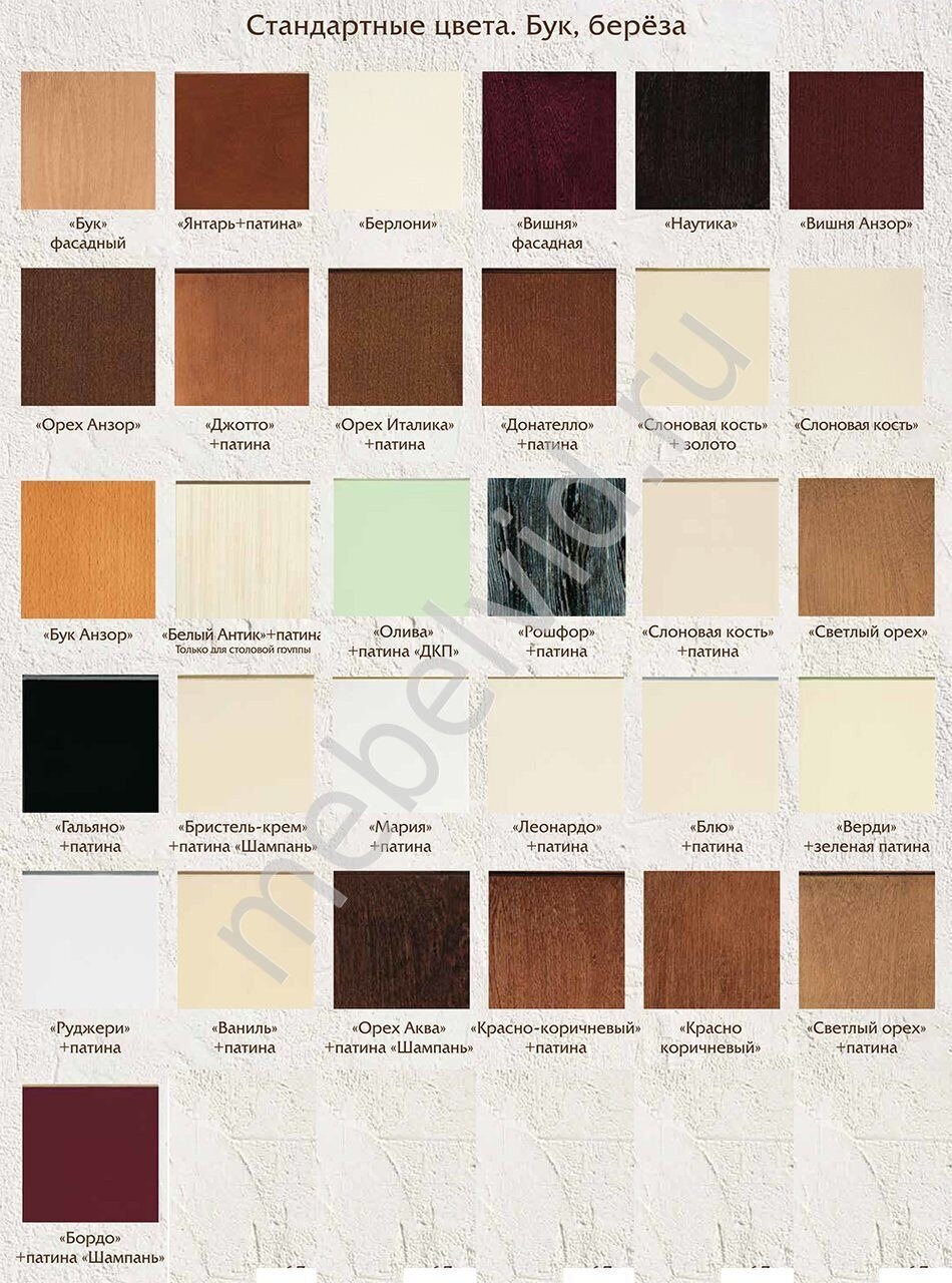 Бук, орех, вишня, венге+дуб, шимо светлый/темный