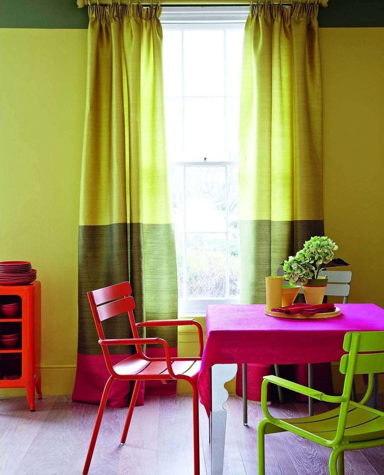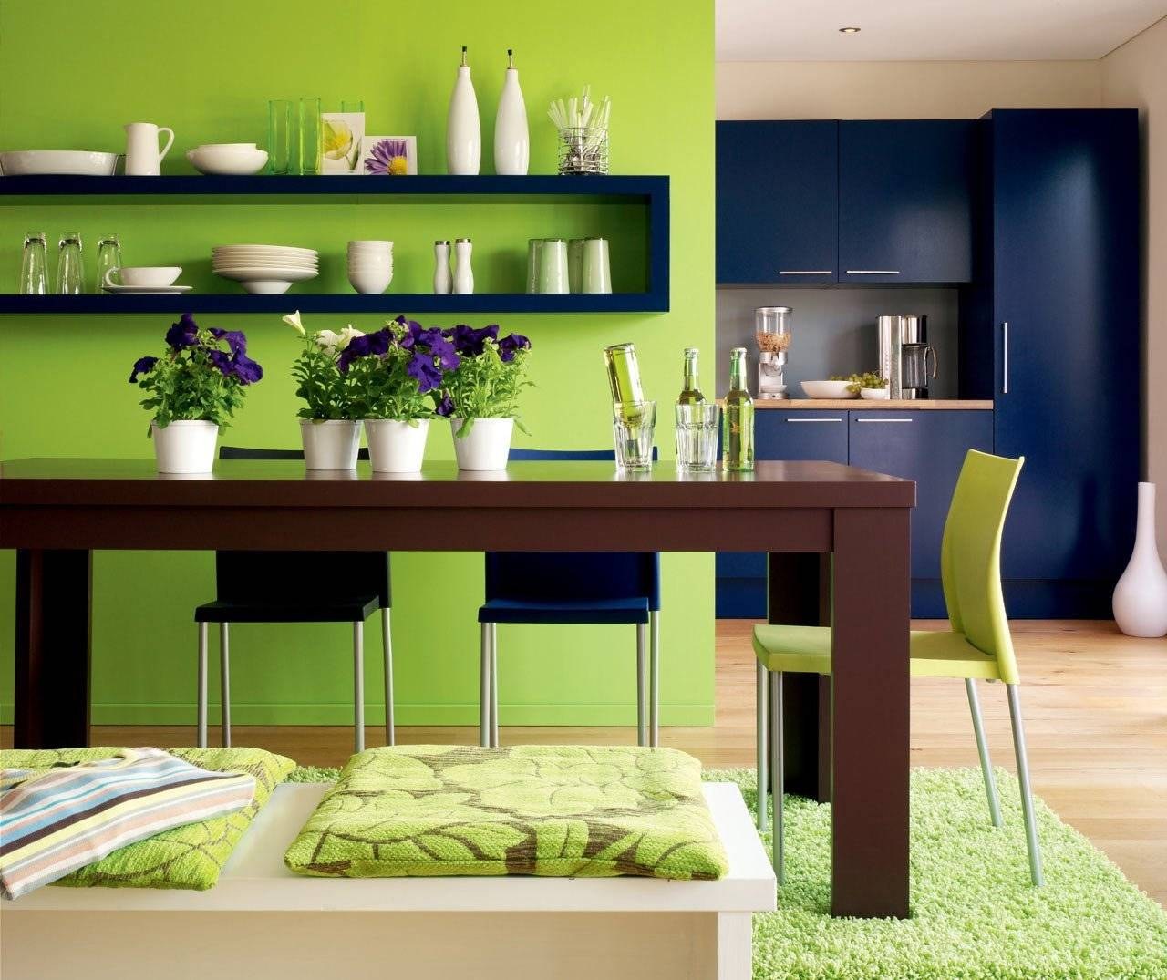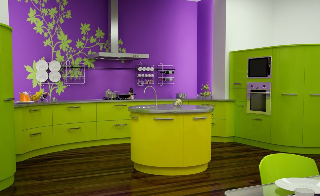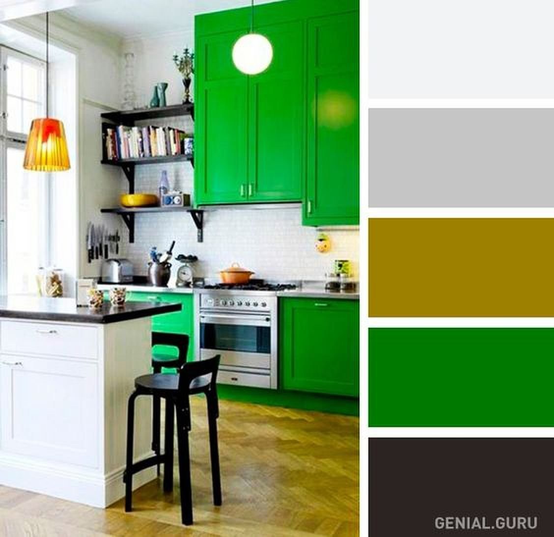 Зелёный жёлтый оранжевый цвет в интерьере кухни