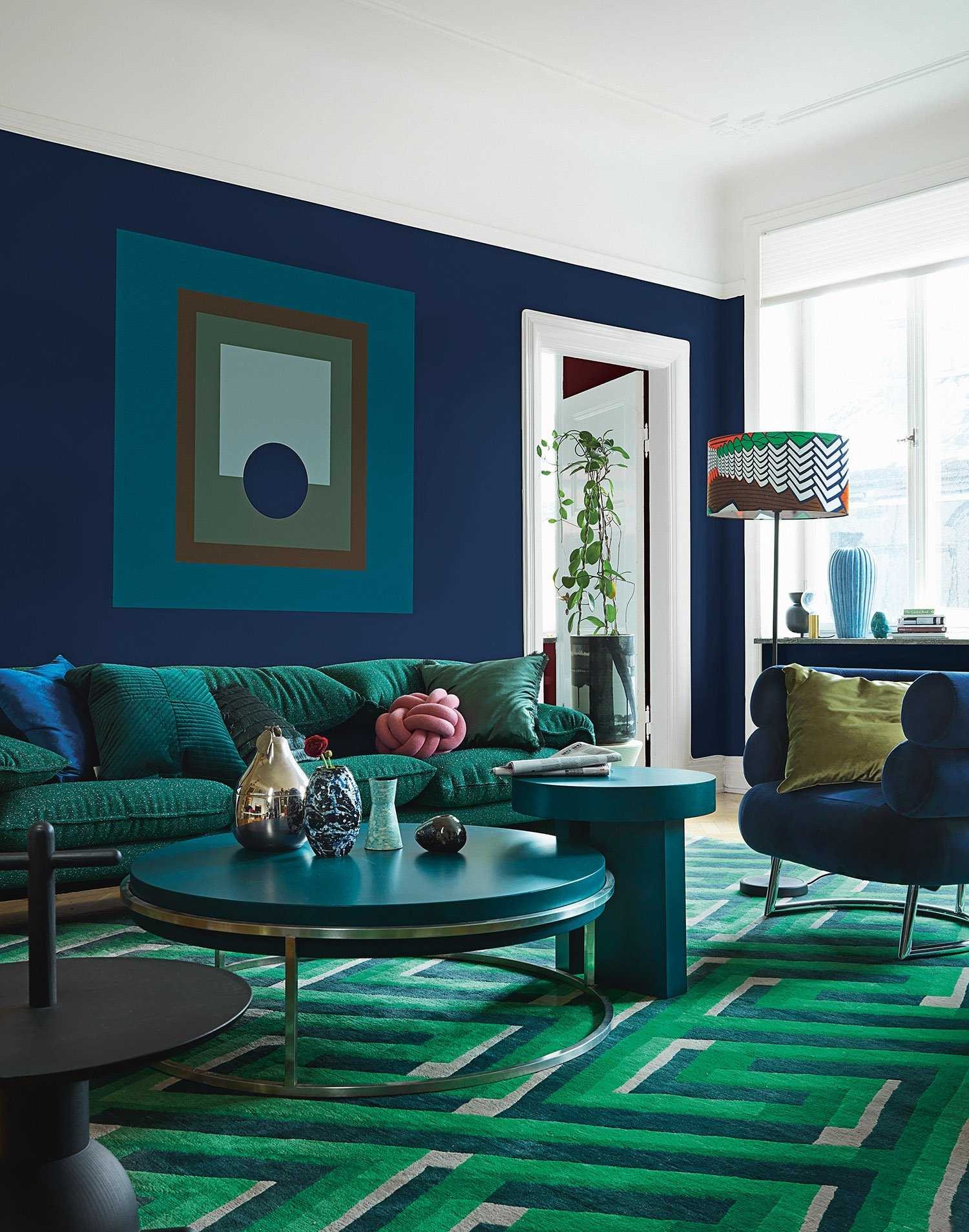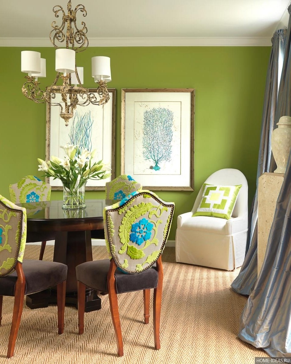Цвет гармонирует с зеленым в интерьере (94 фото)