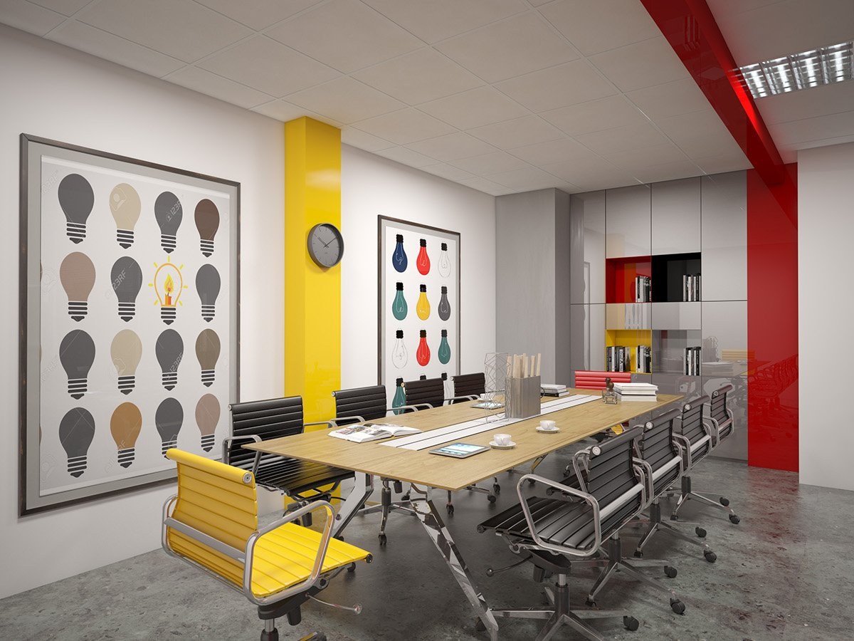 Яркие акценты в интерьере кабинета с чем сочетается (90 фото)