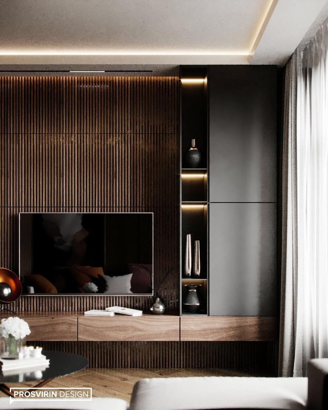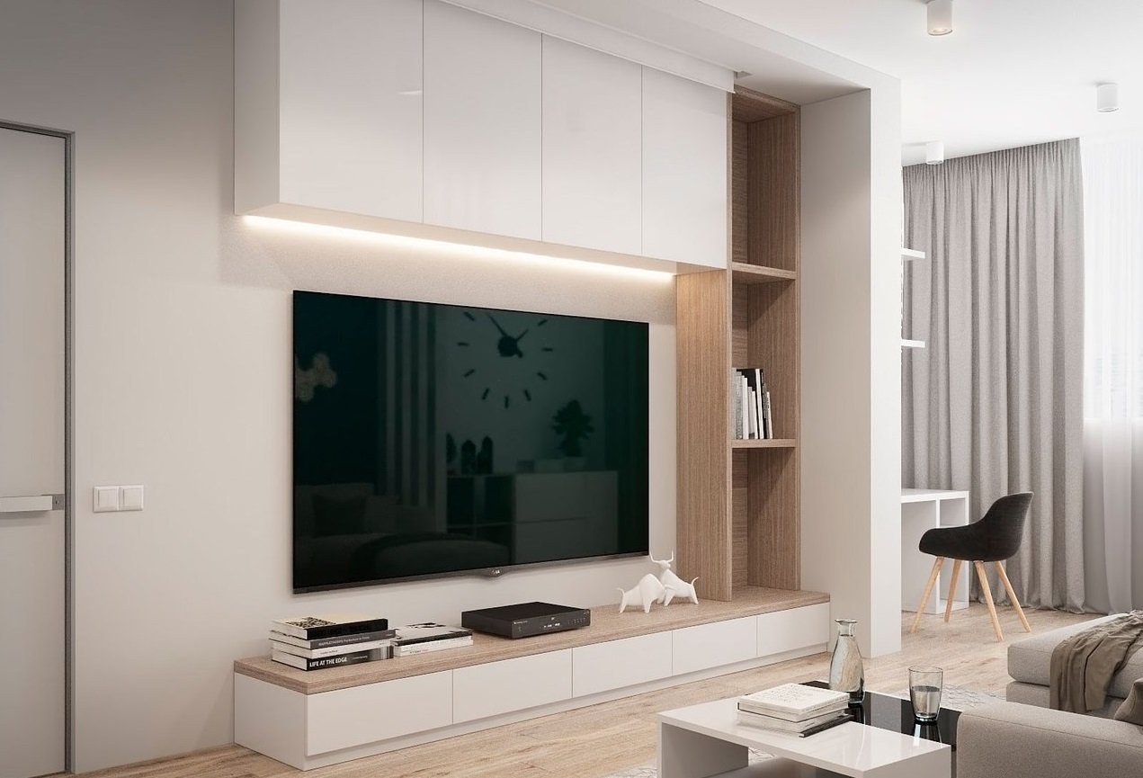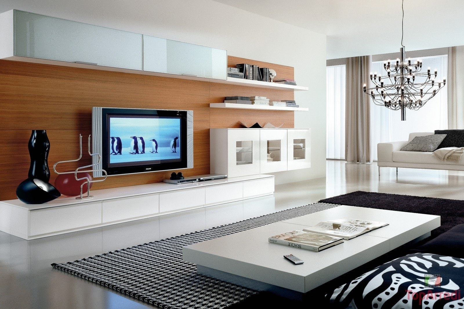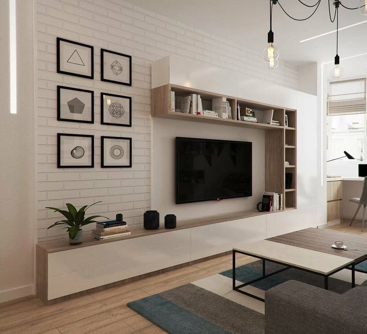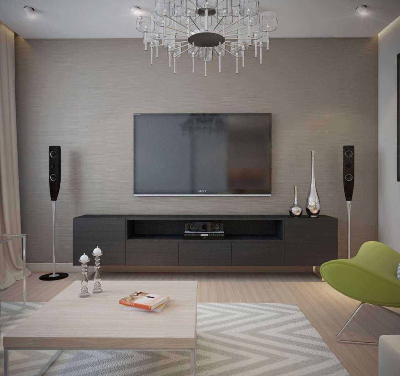 Телевизионная зона в гостиной в современном стиле (97 фото)
