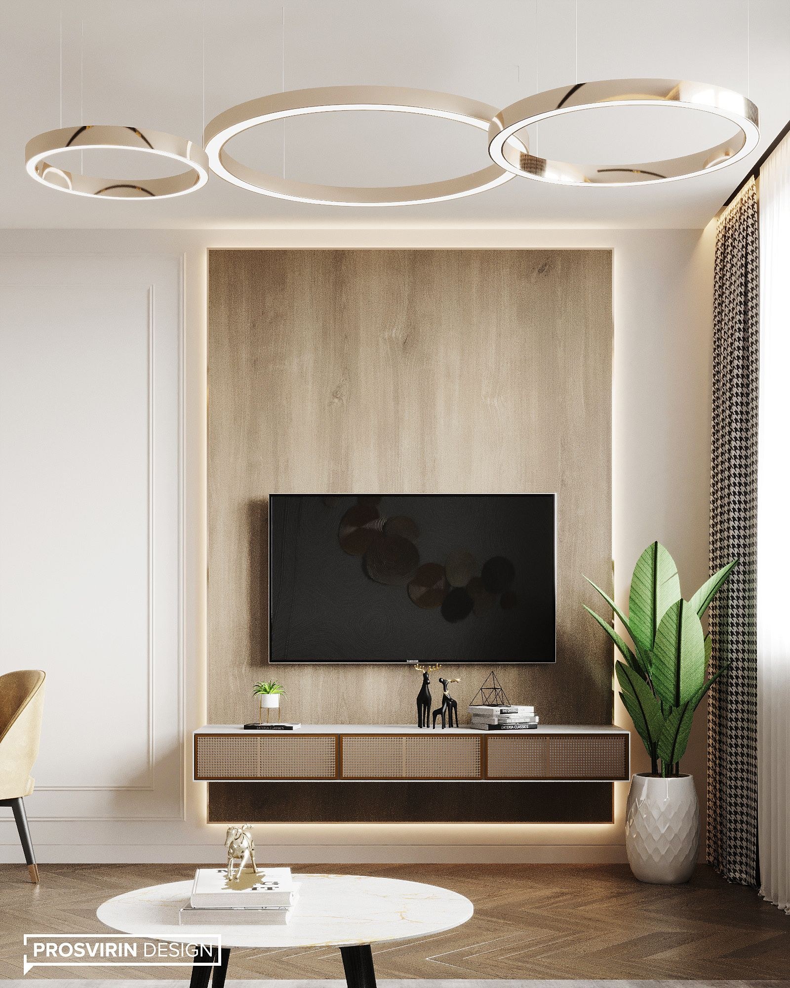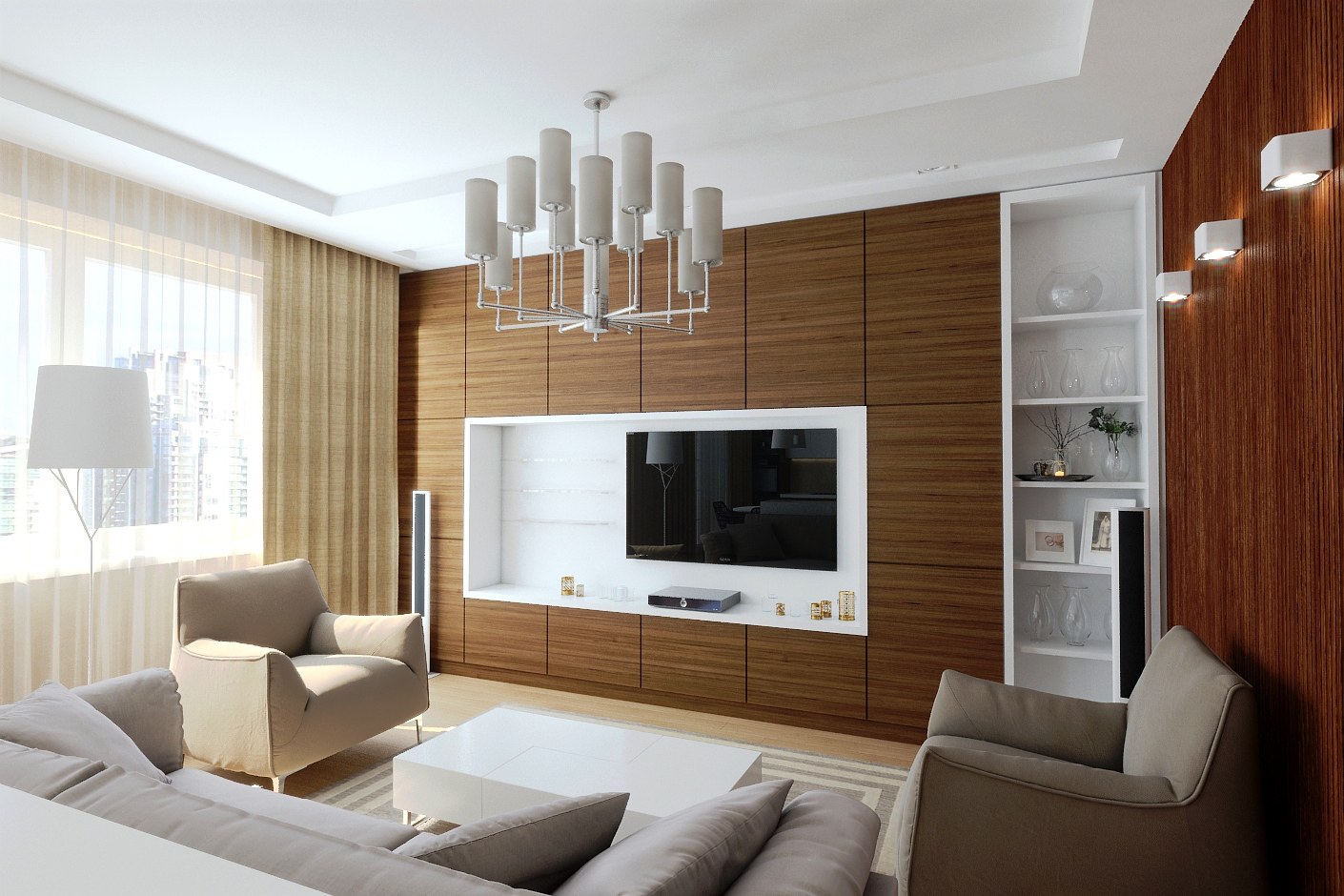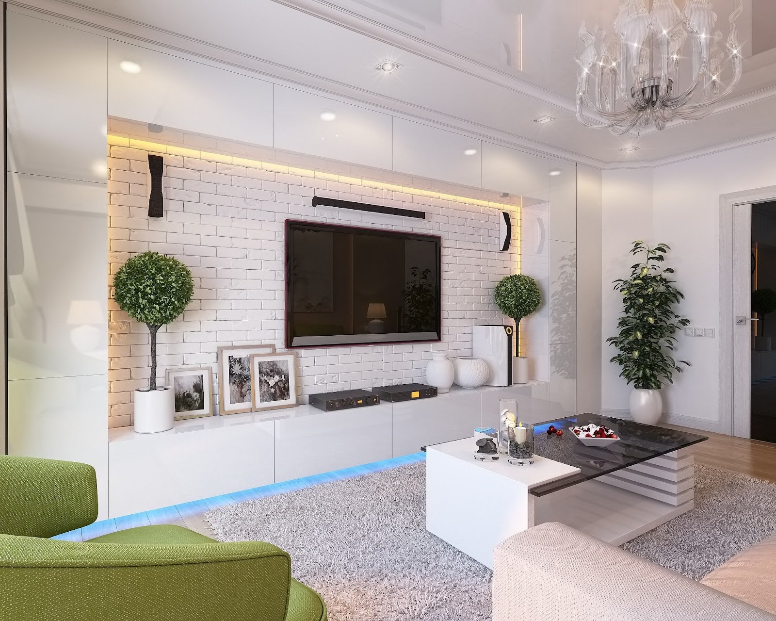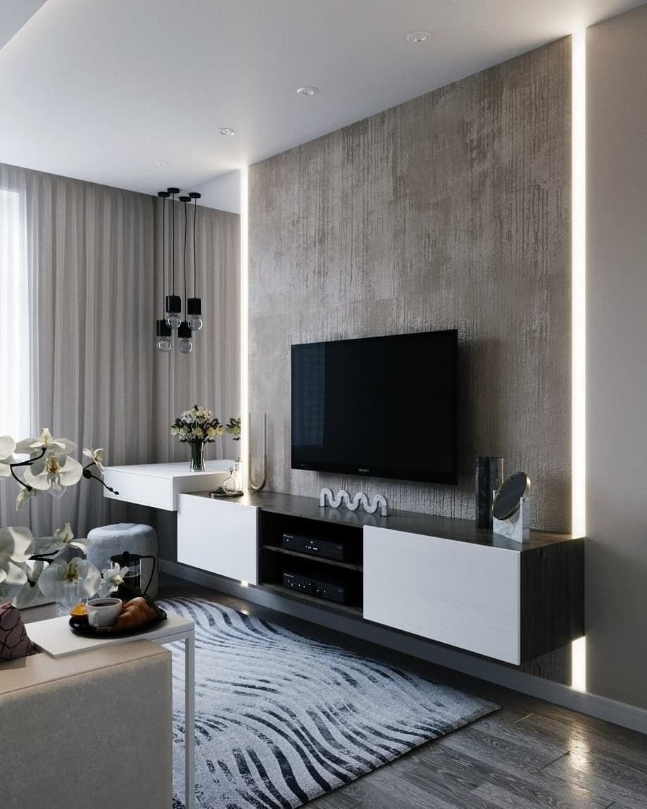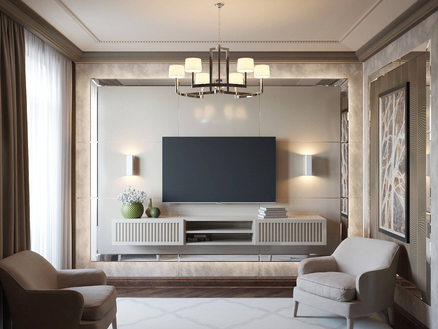 Телевизионная зона в гостиной в современном стиле (97 фото)