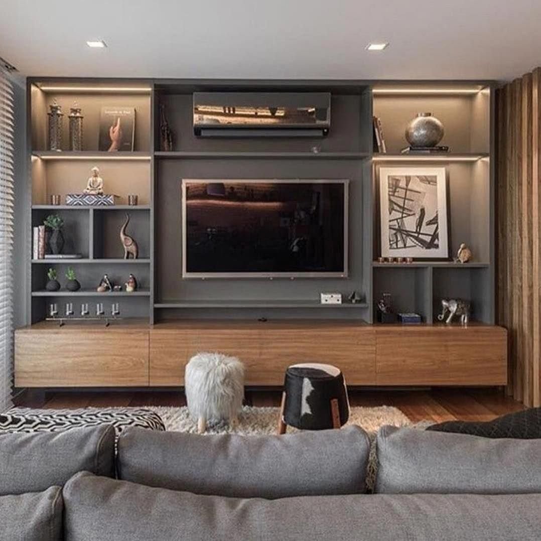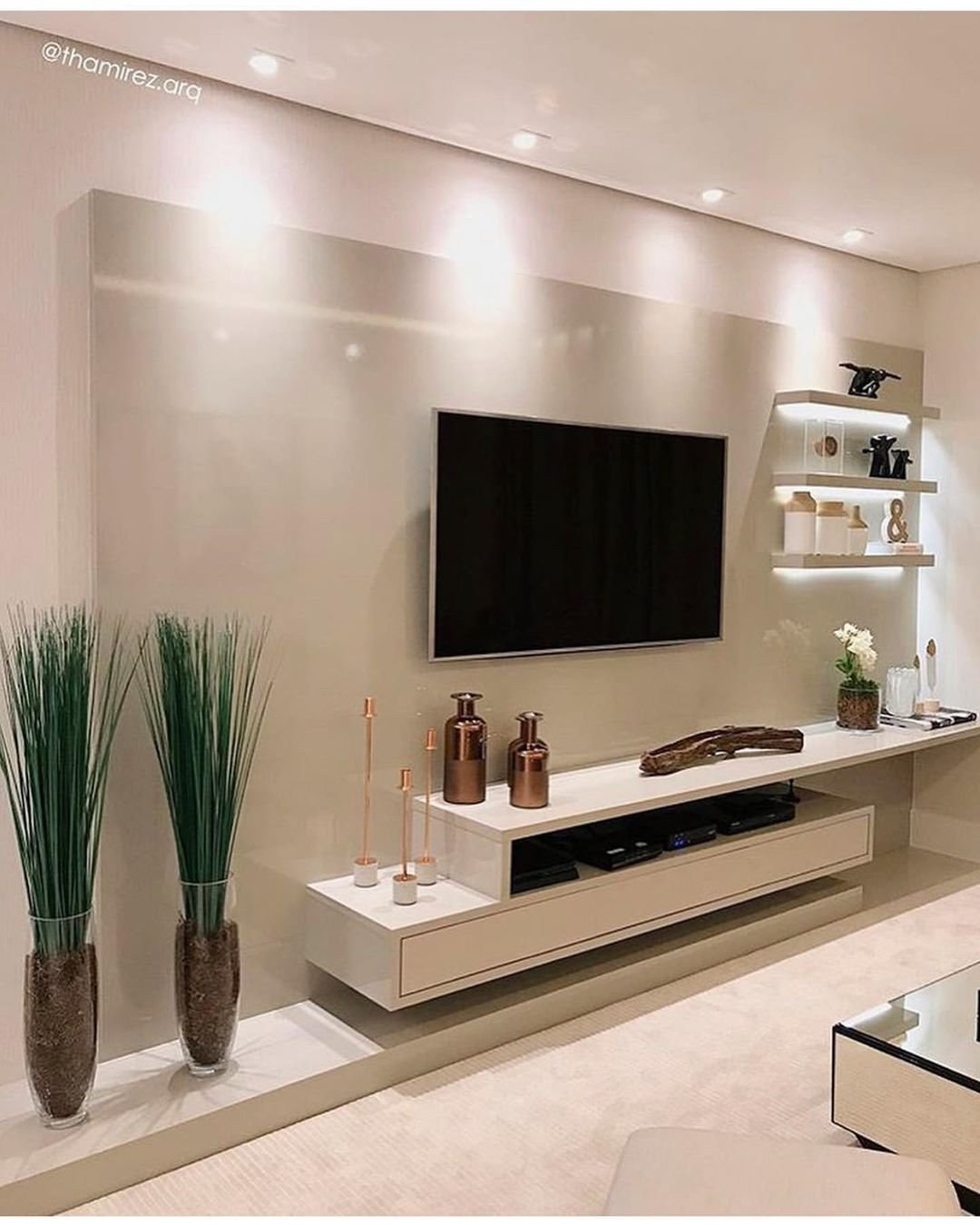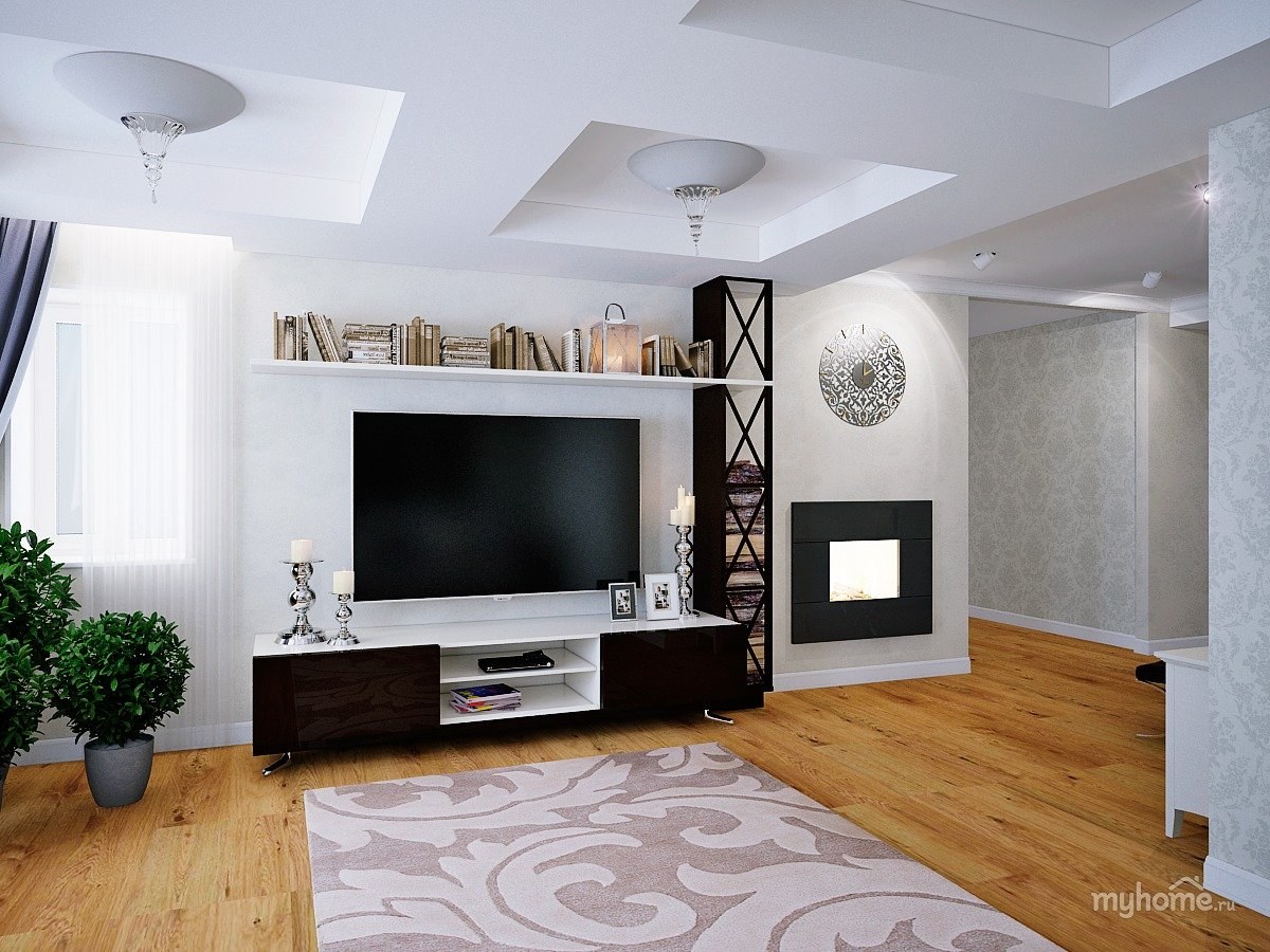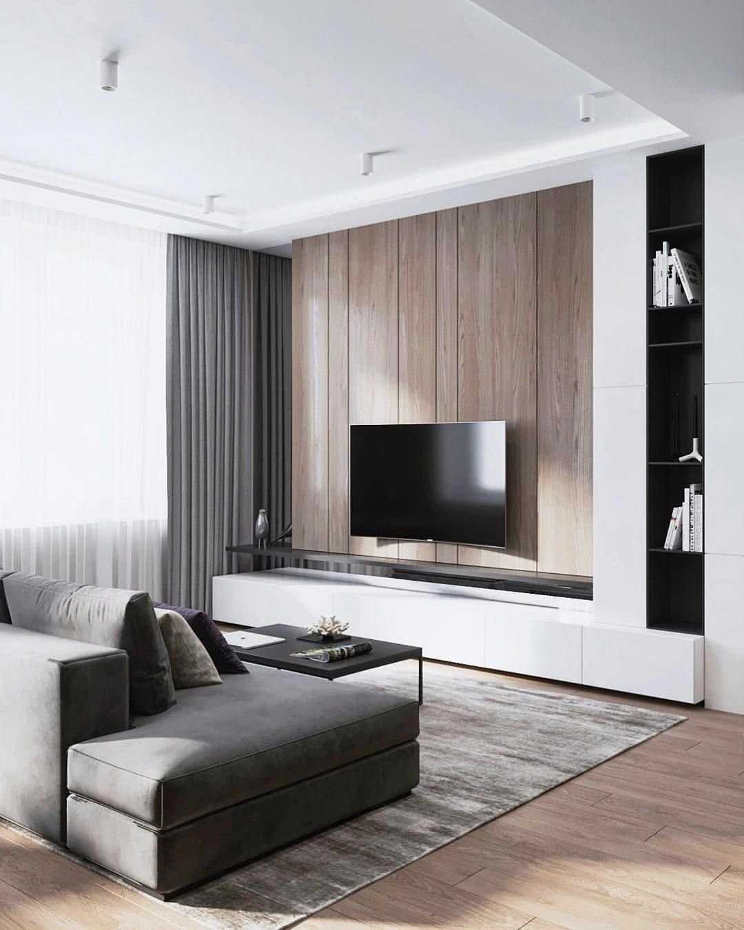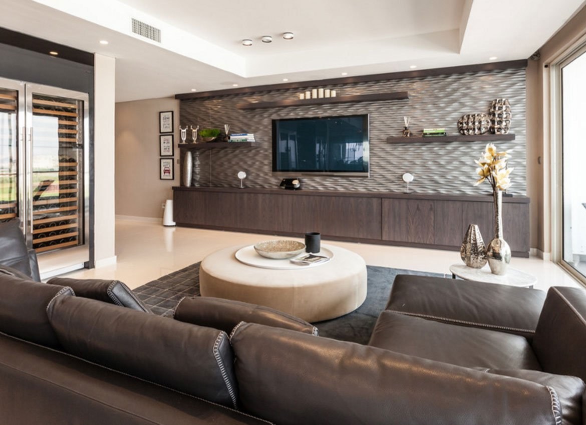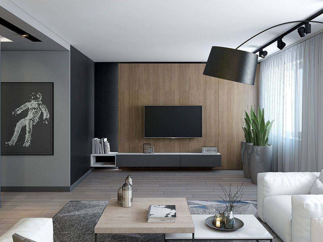 Телевизионная зона в гостиной в современном стиле (97 фото)