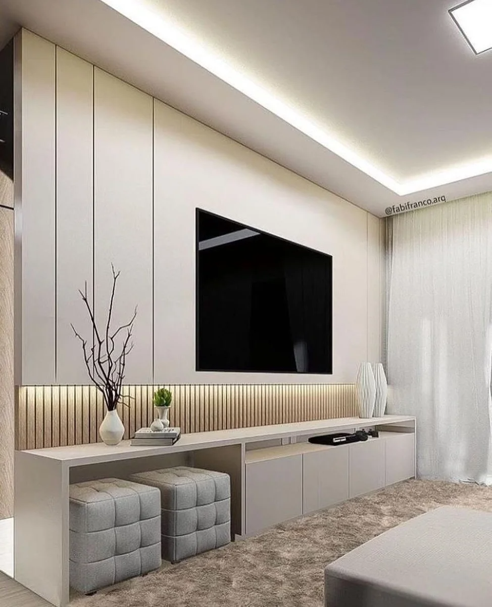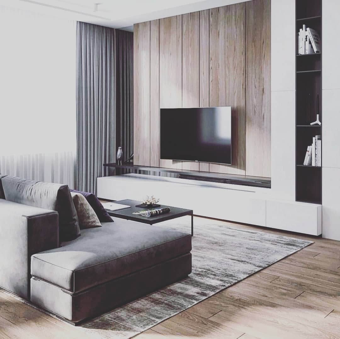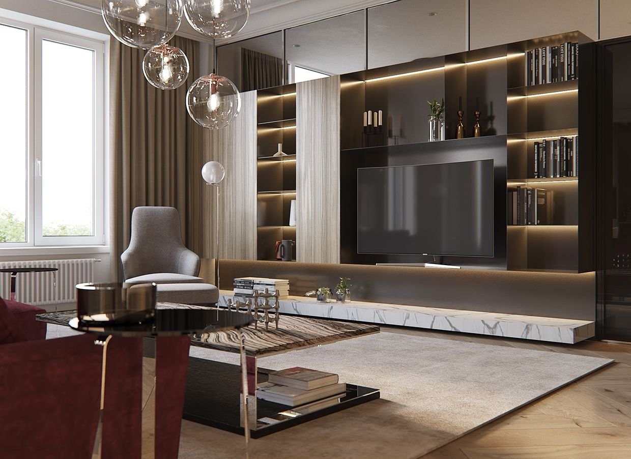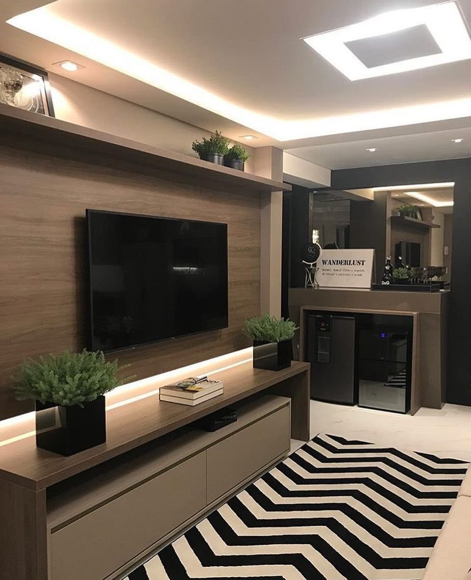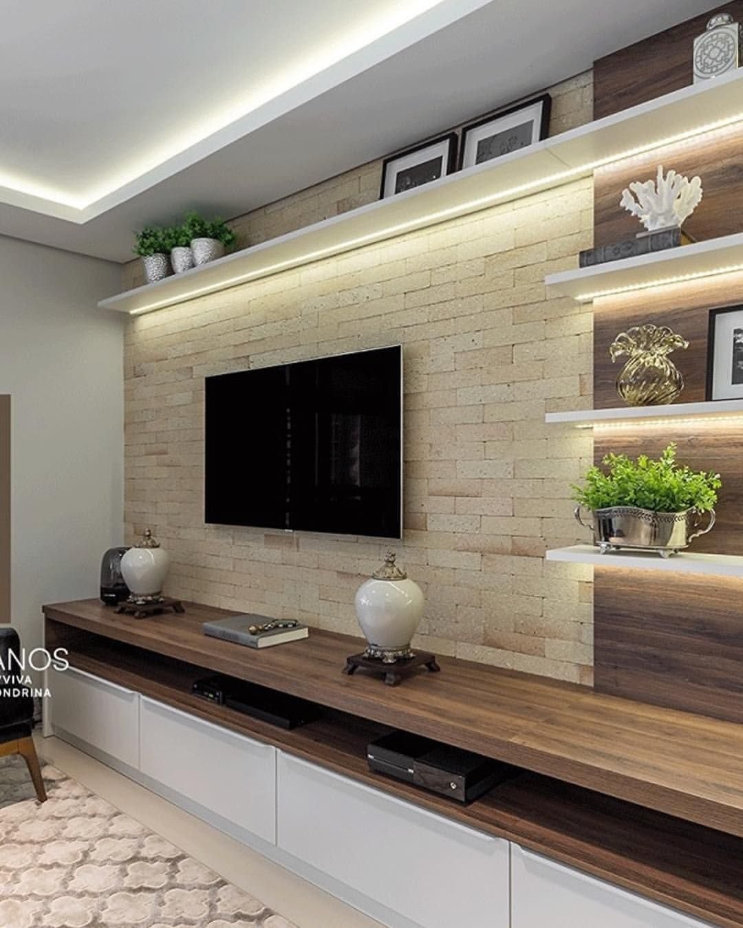 Телевизионная зона в гостиной в современном стиле (97 фото)