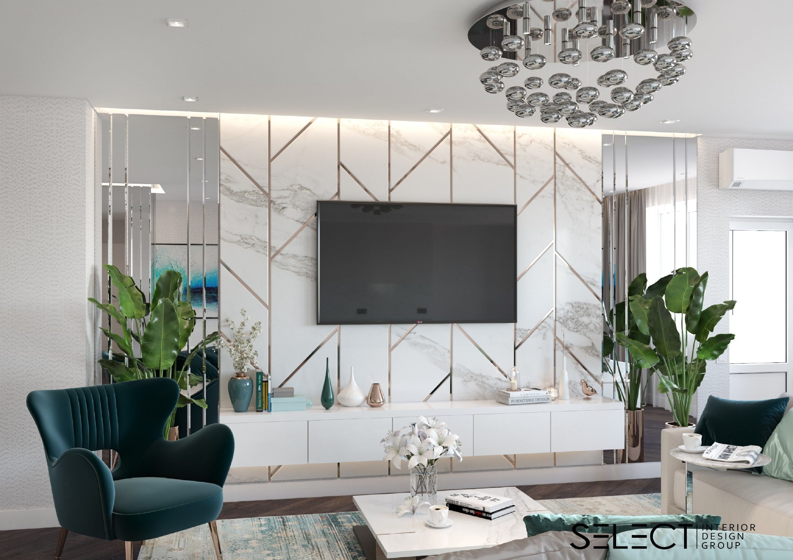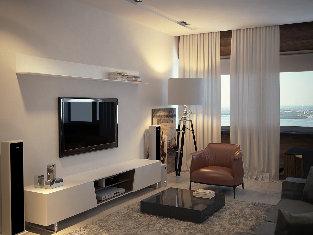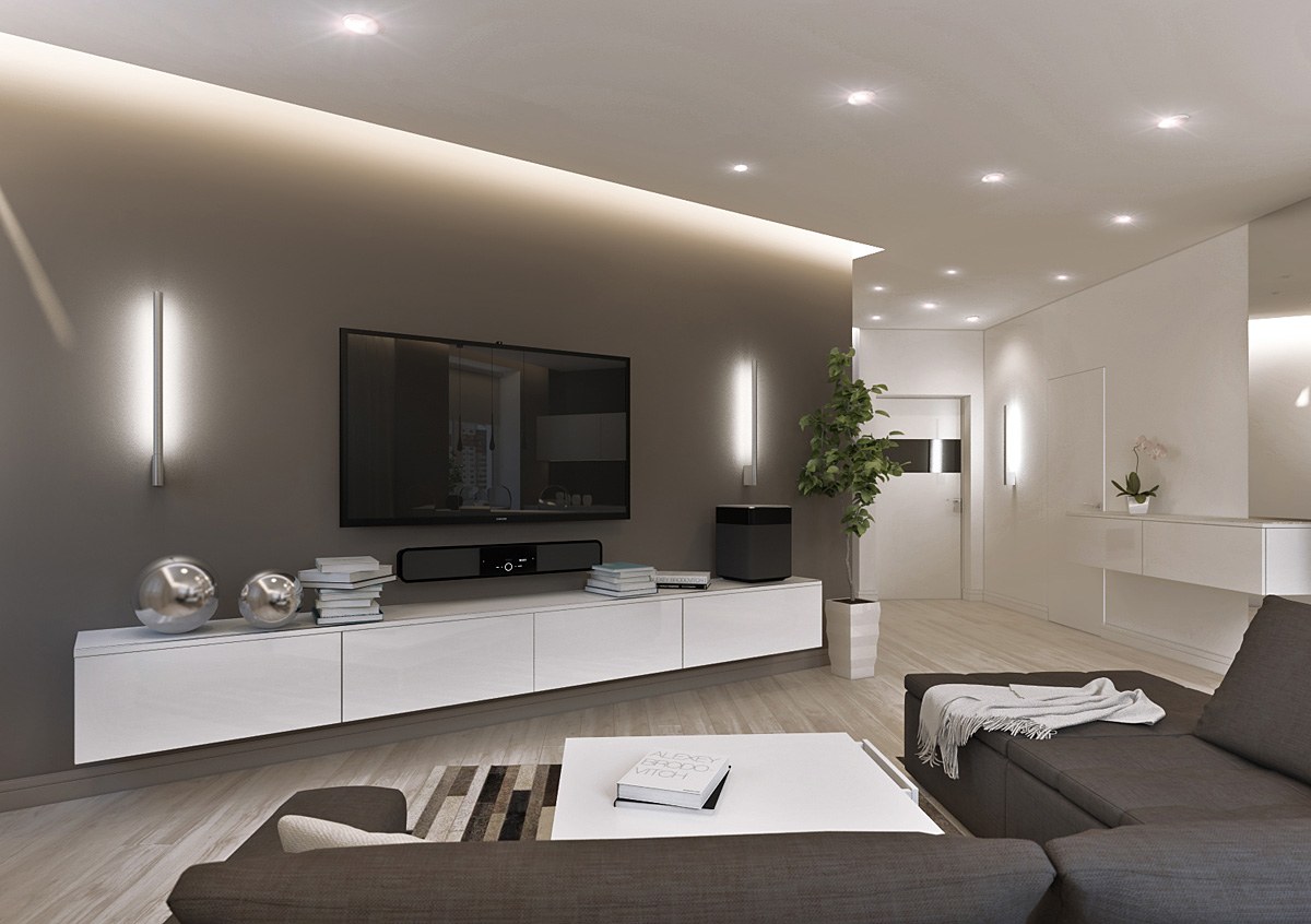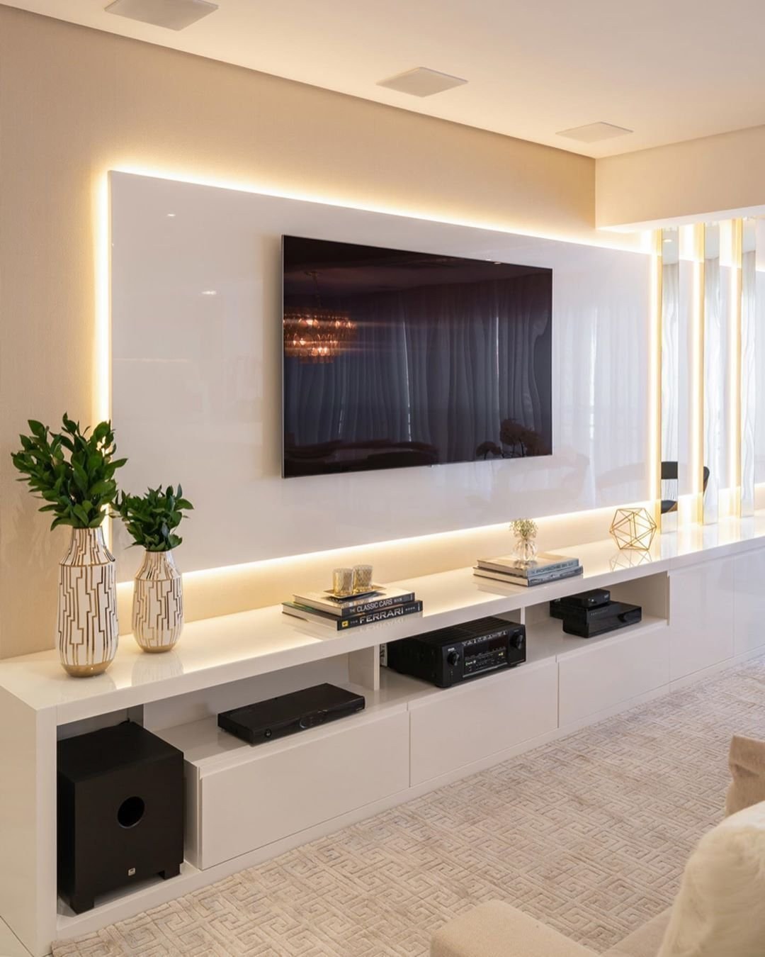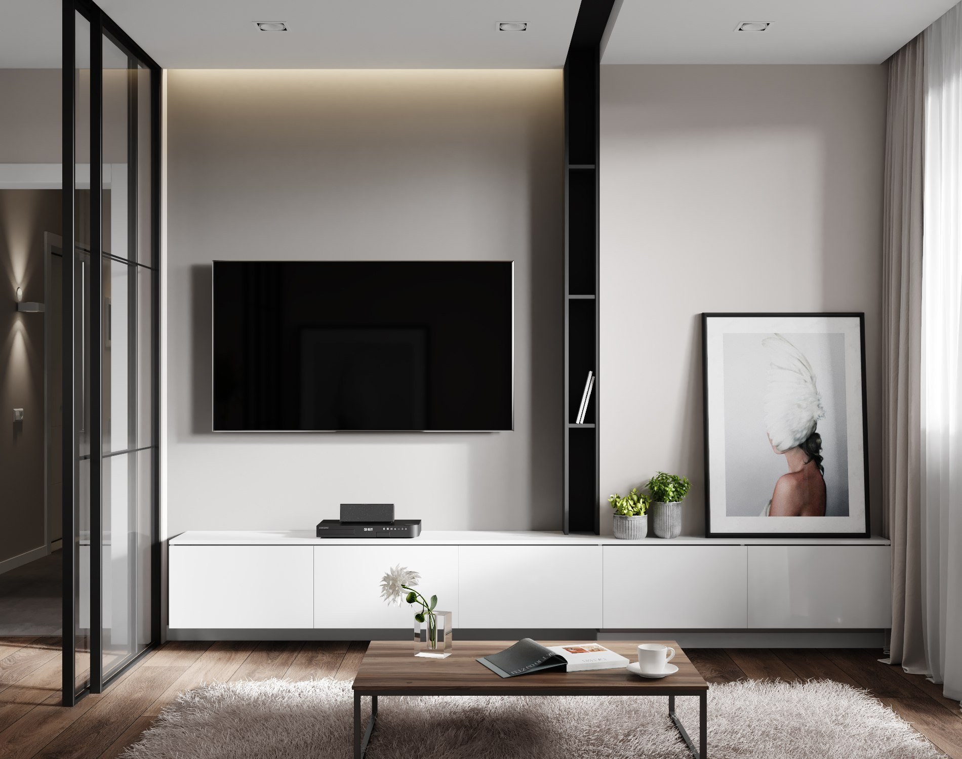 Телевизионная зона в гостиной в современном стиле (97 фото)