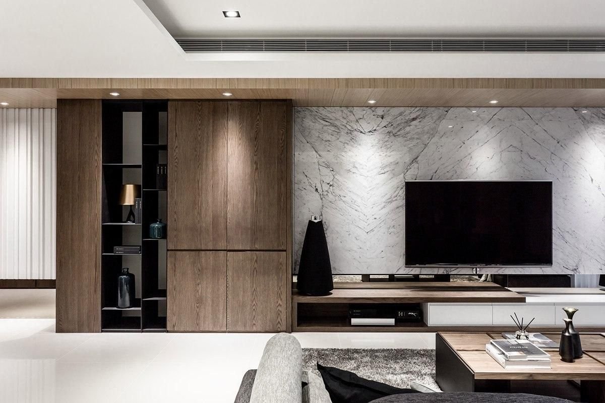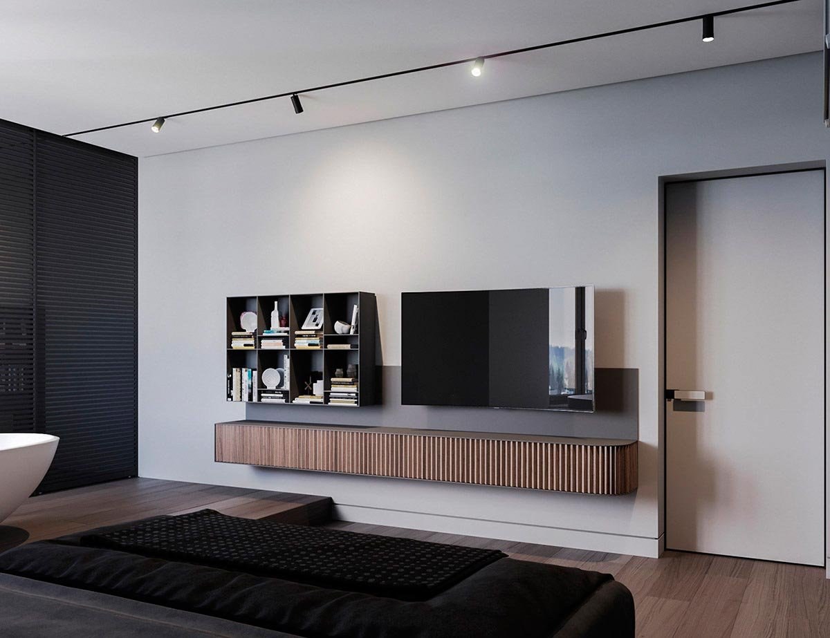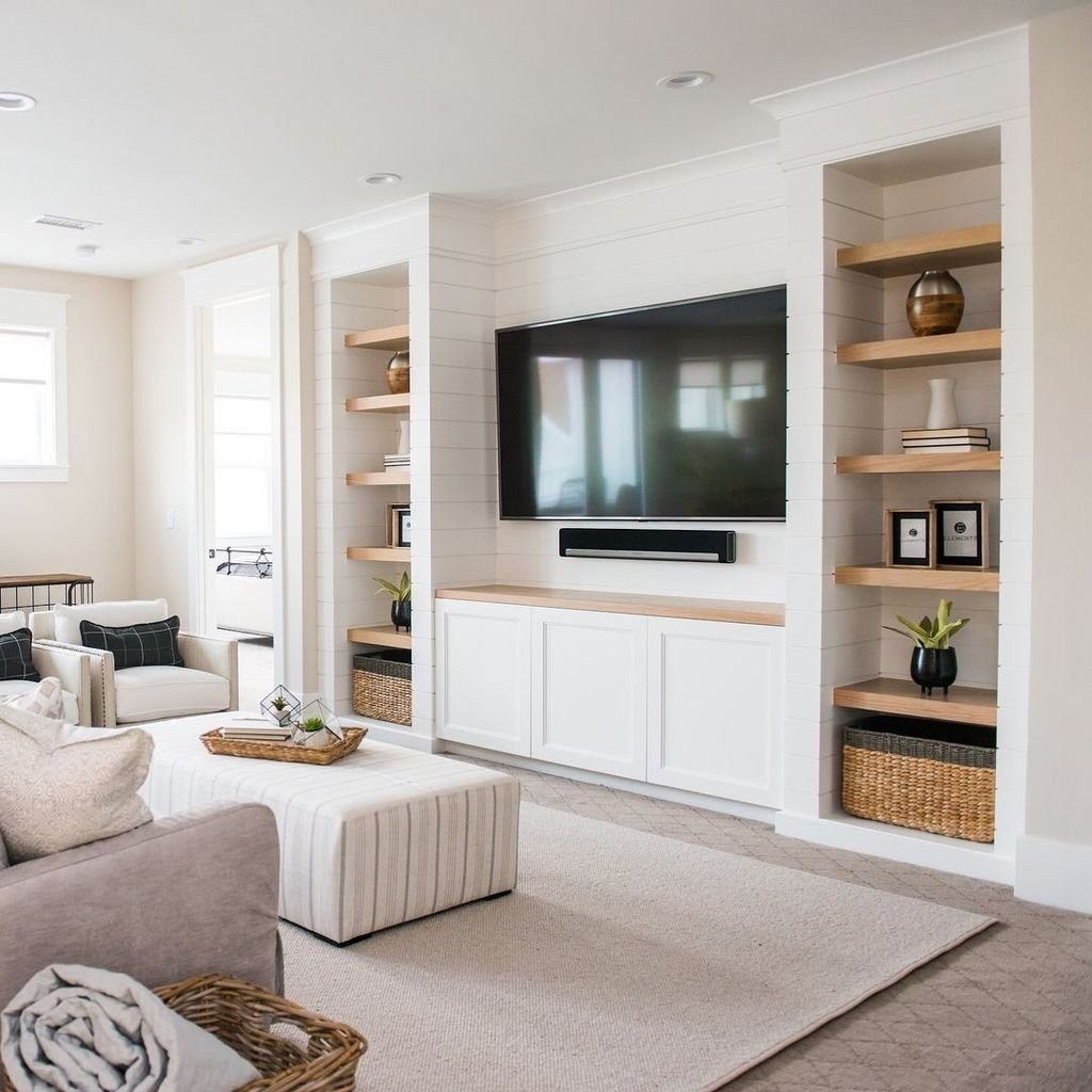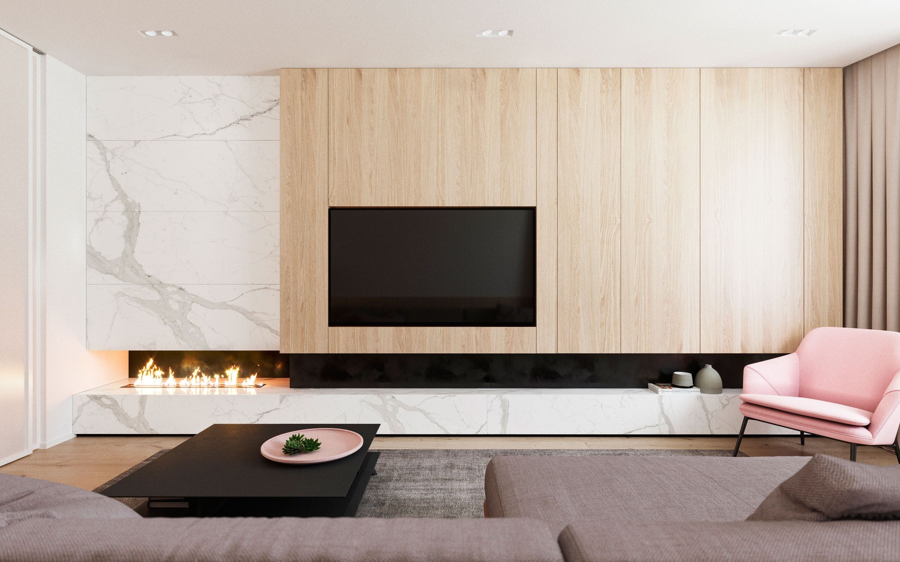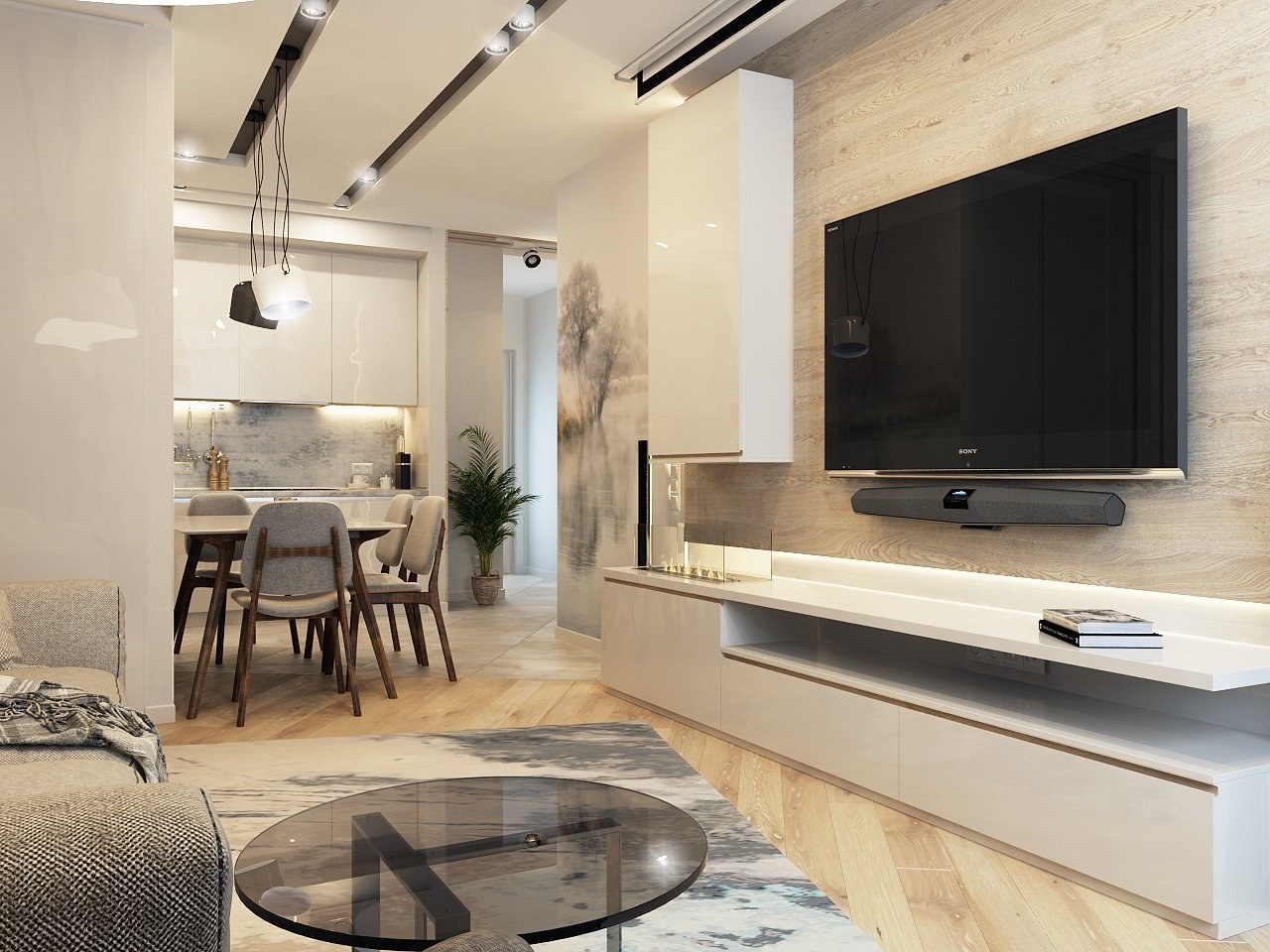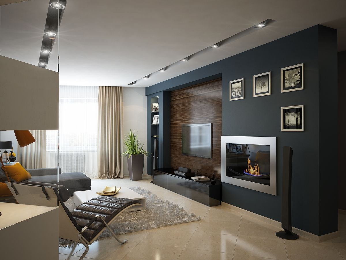 Телевизионная зона в гостиной в современном стиле (97 фото)