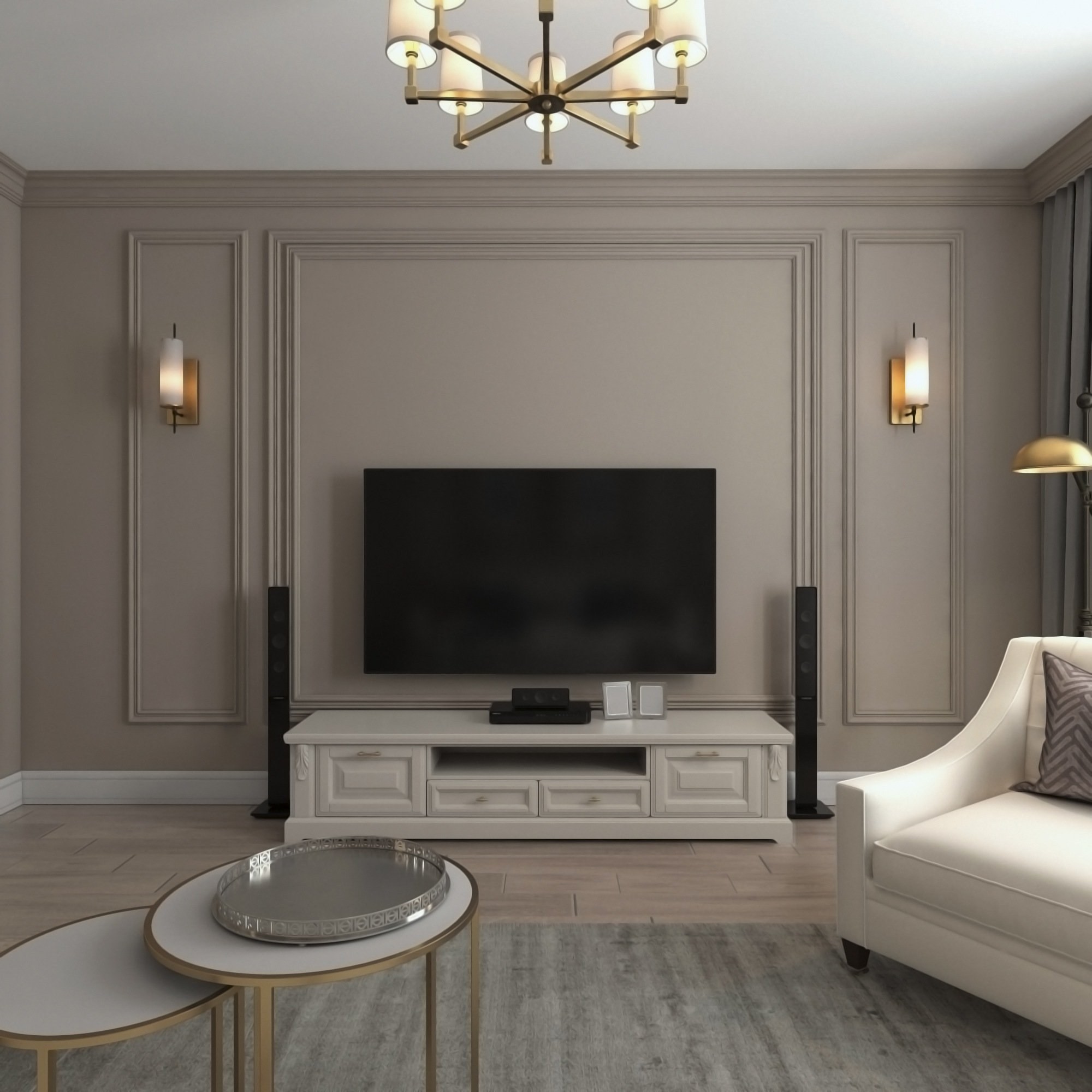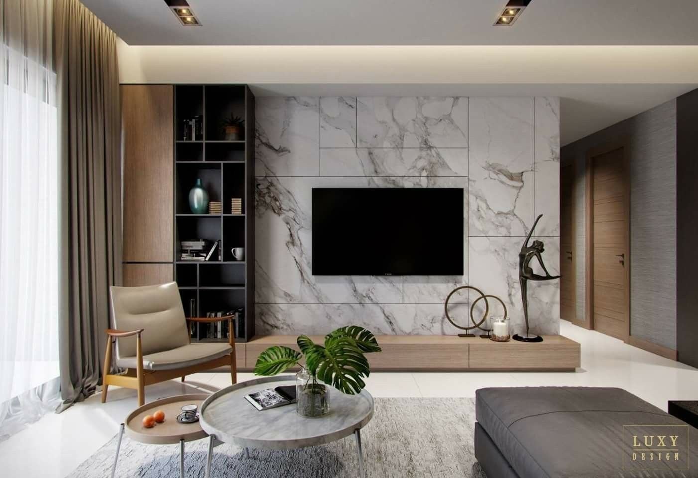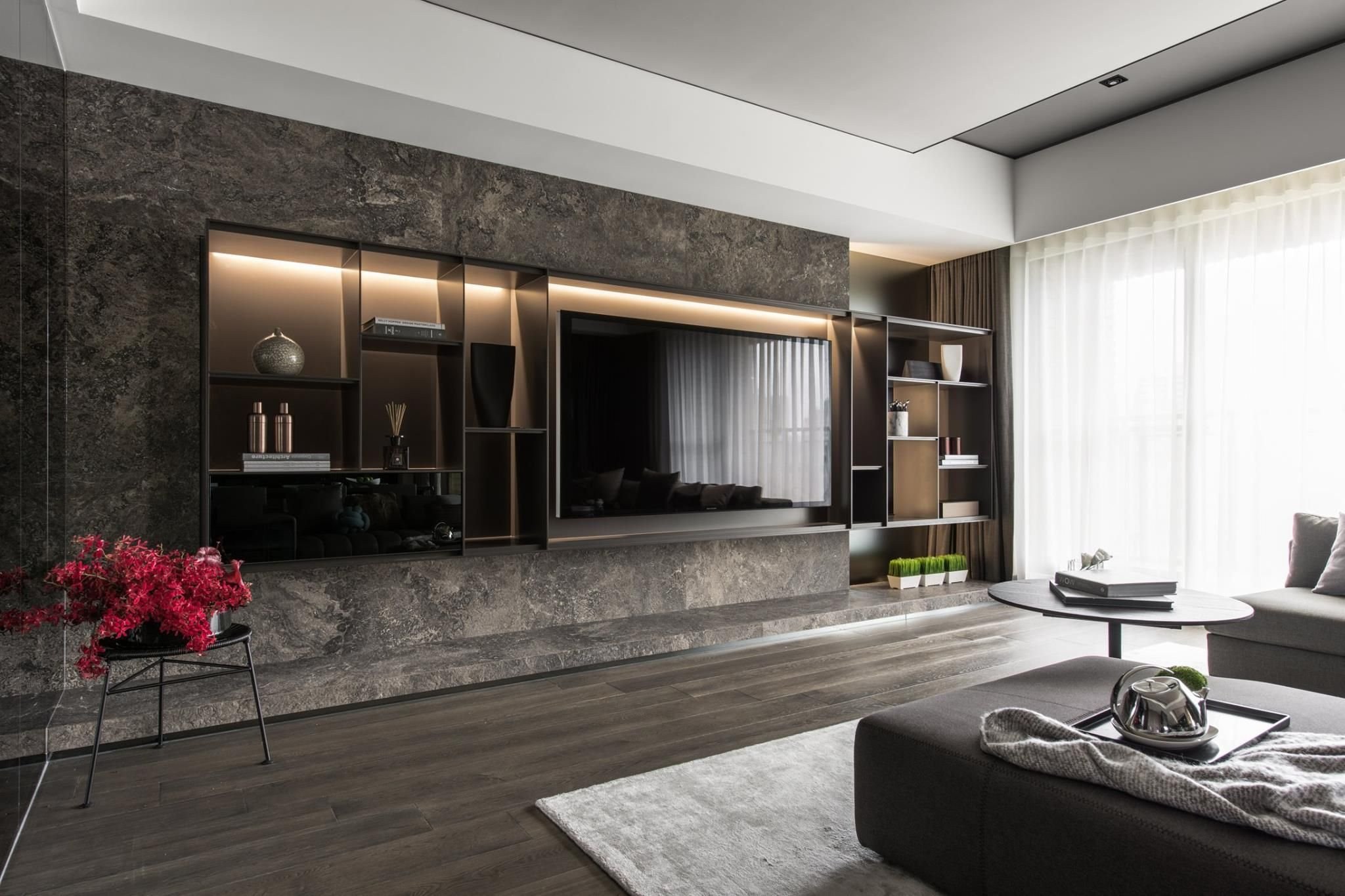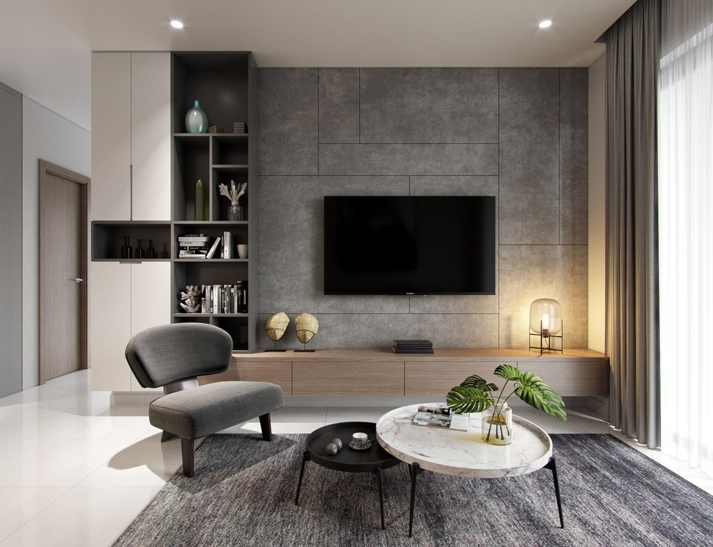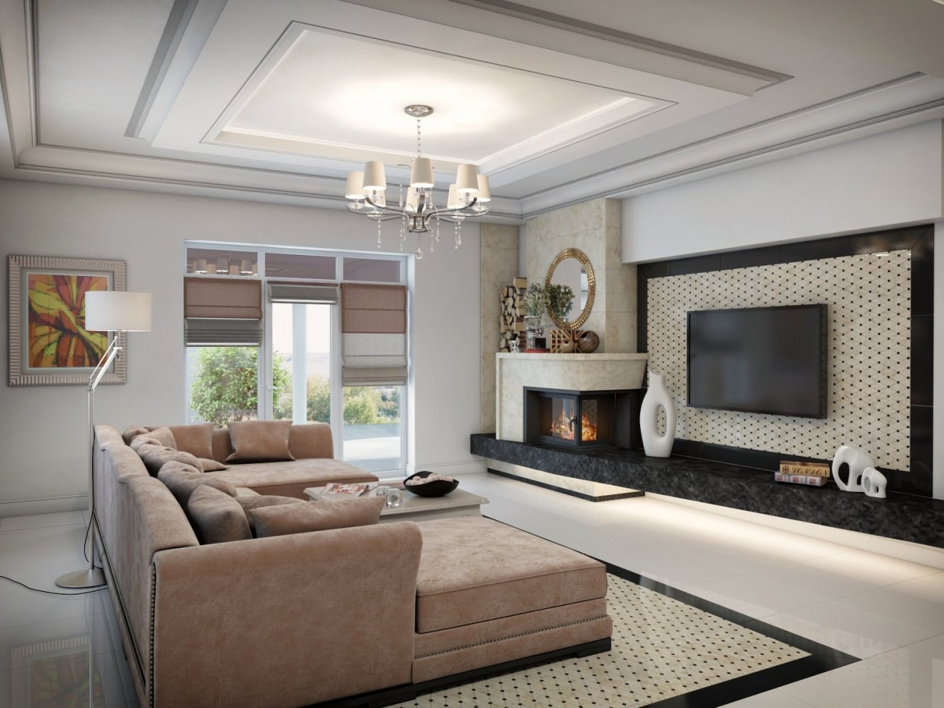 Телевизионная зона в гостиной в современном стиле (97 фото)