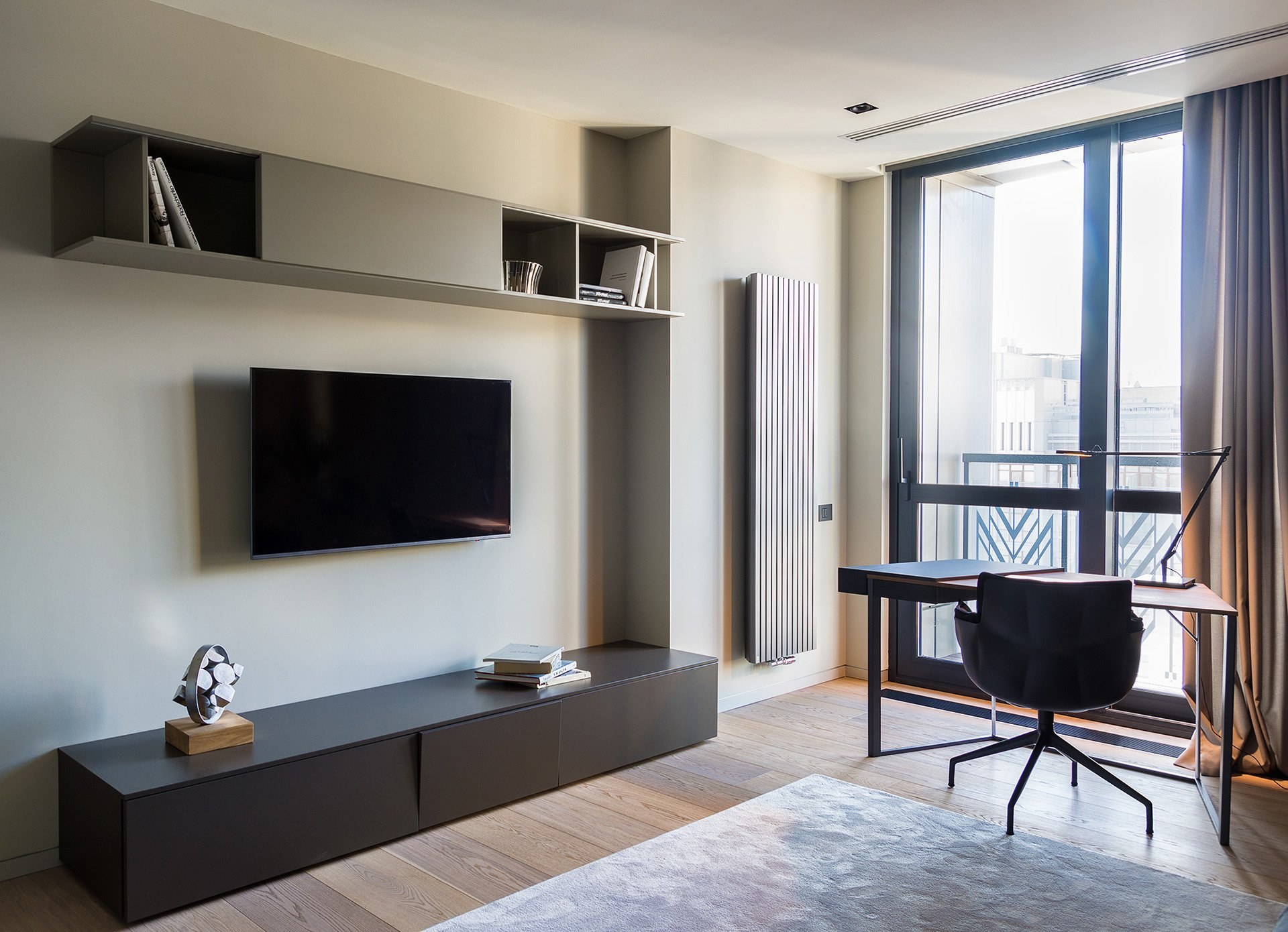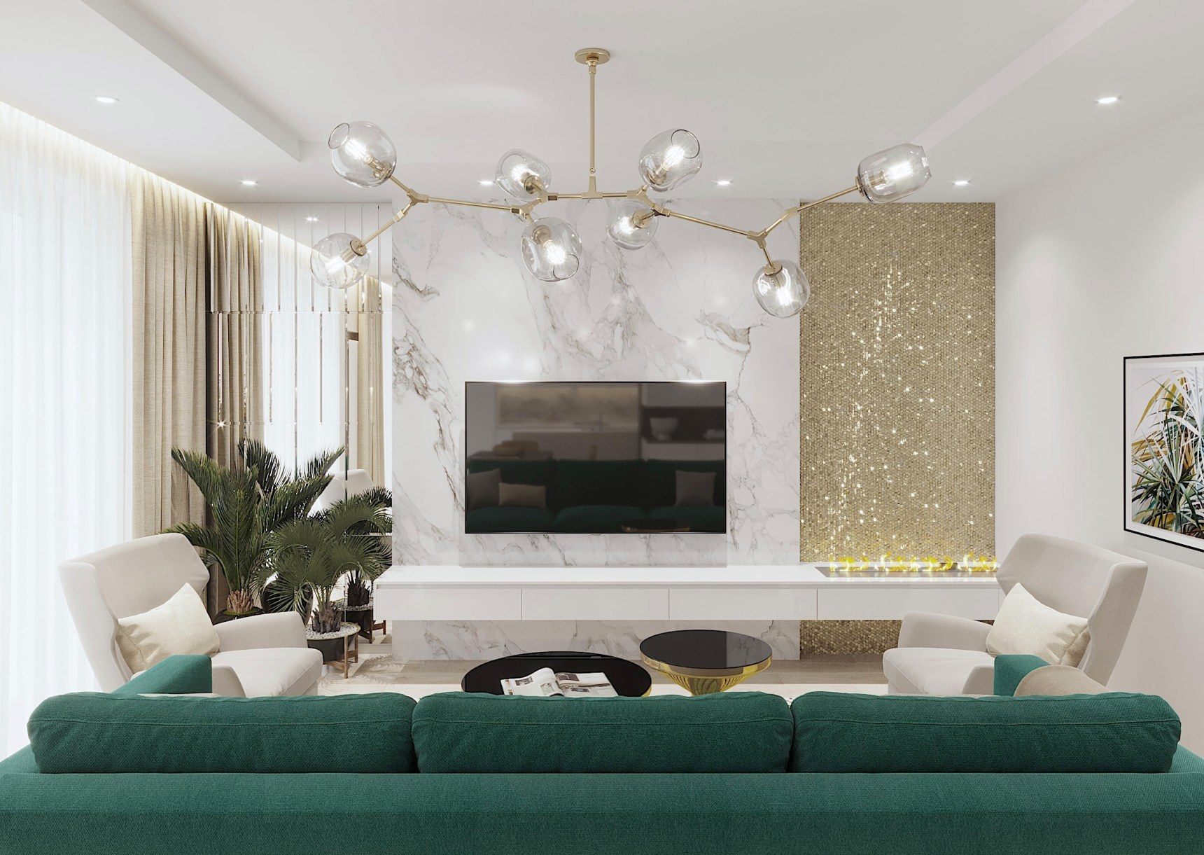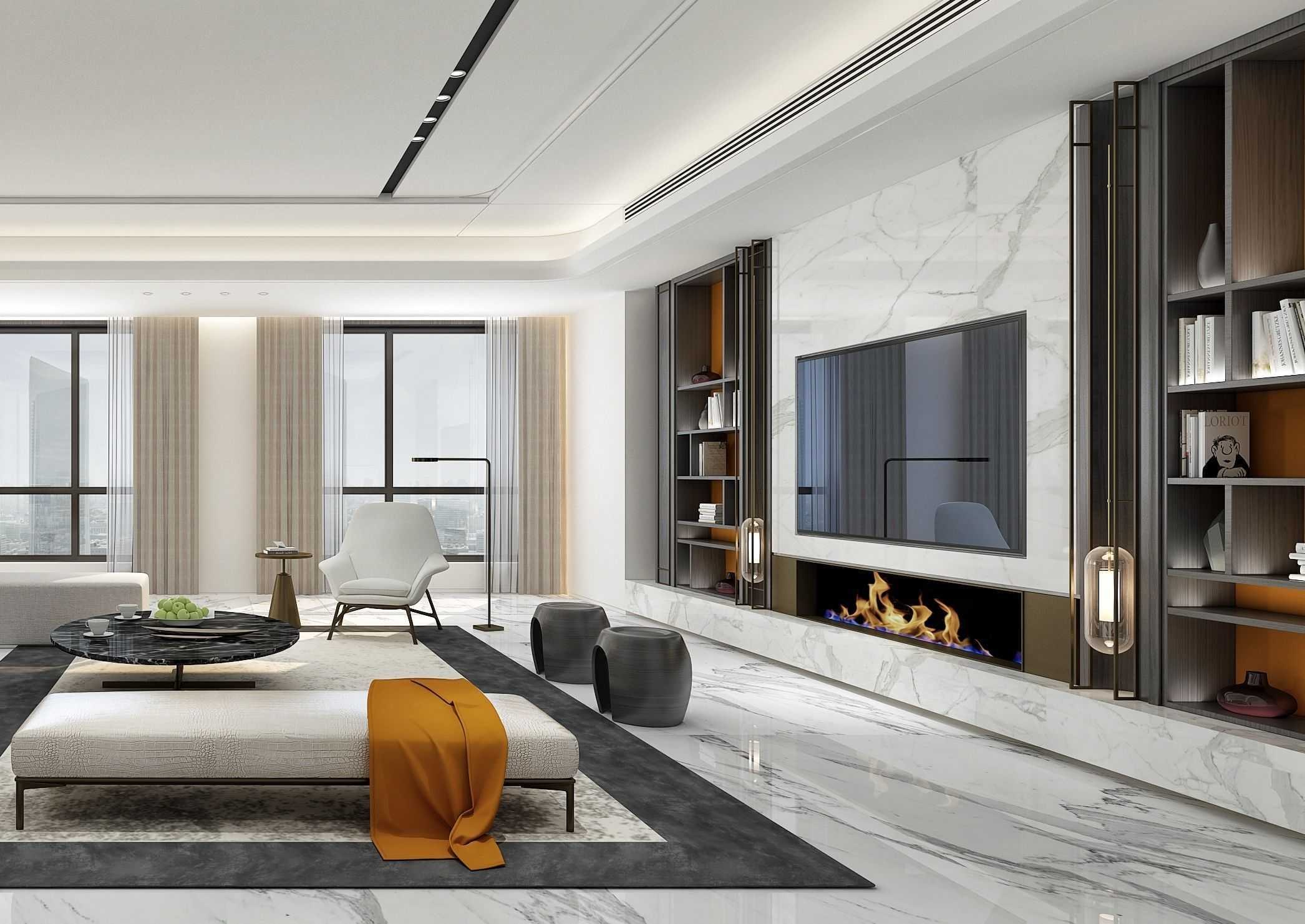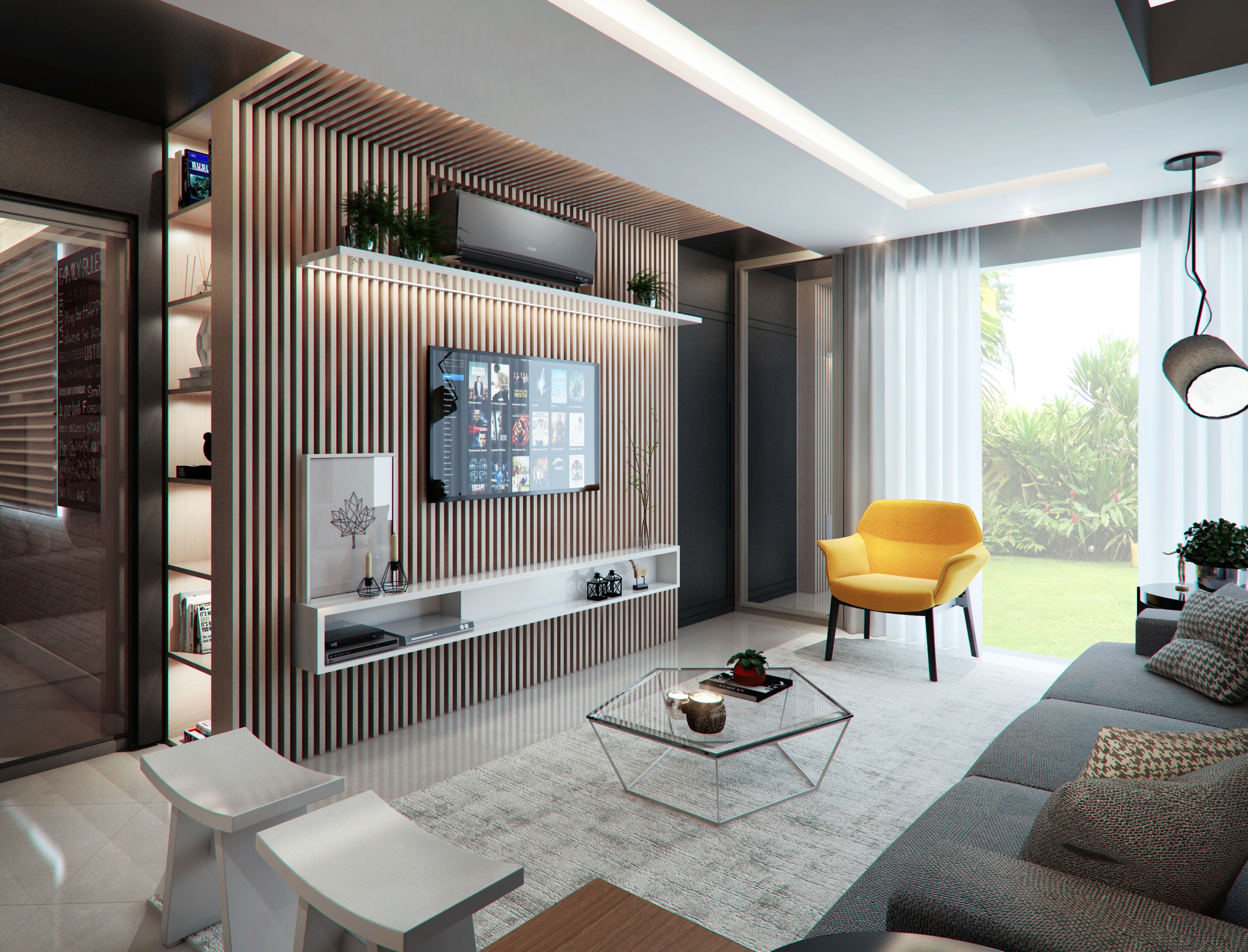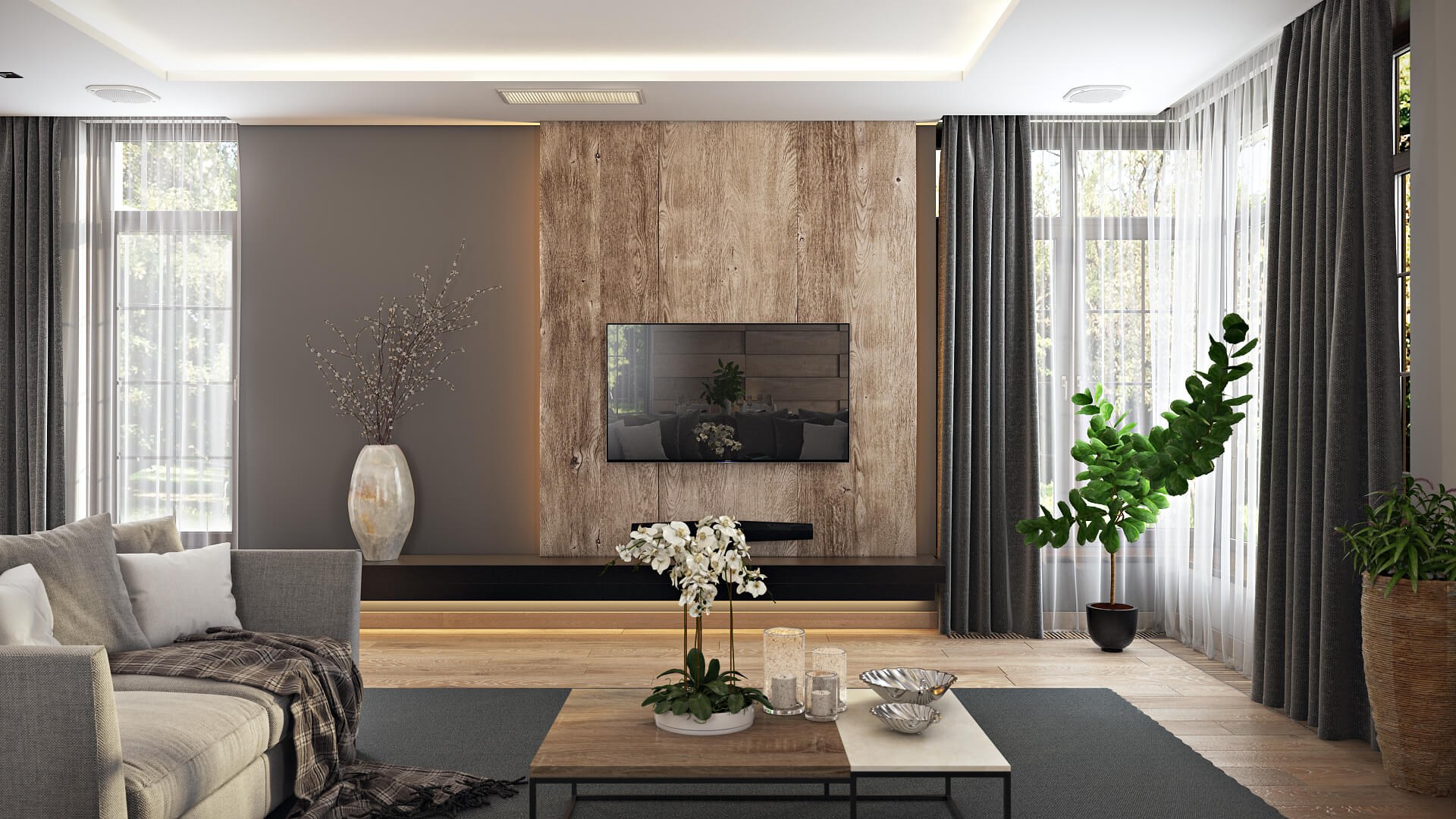 Телевизионная зона в гостиной в современном стиле (97 фото)