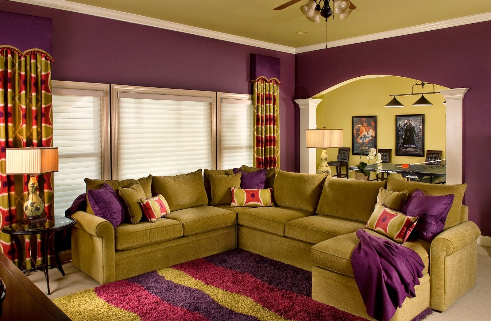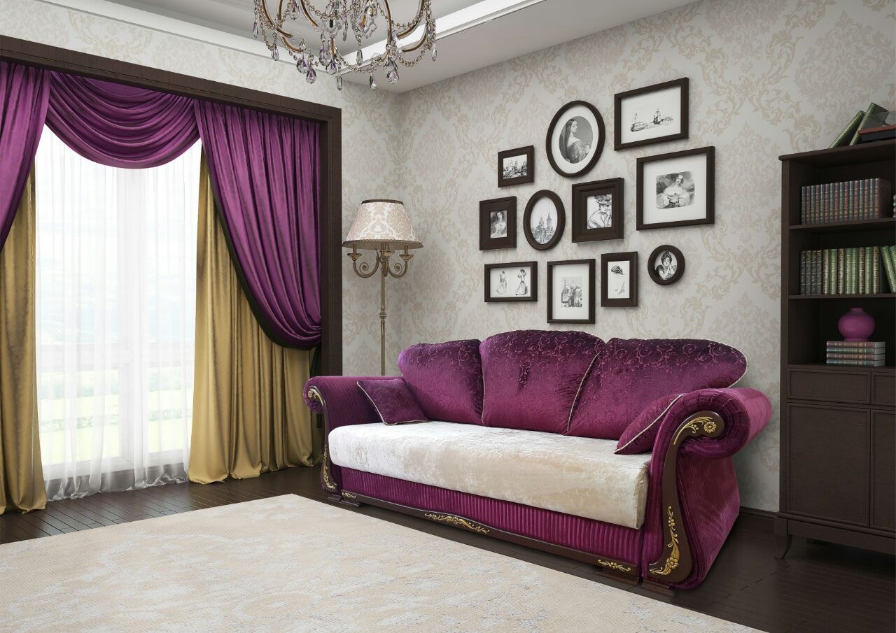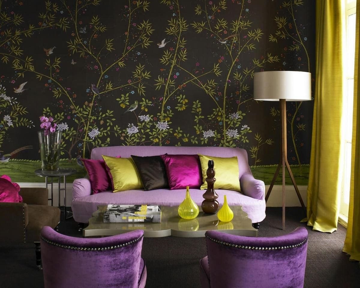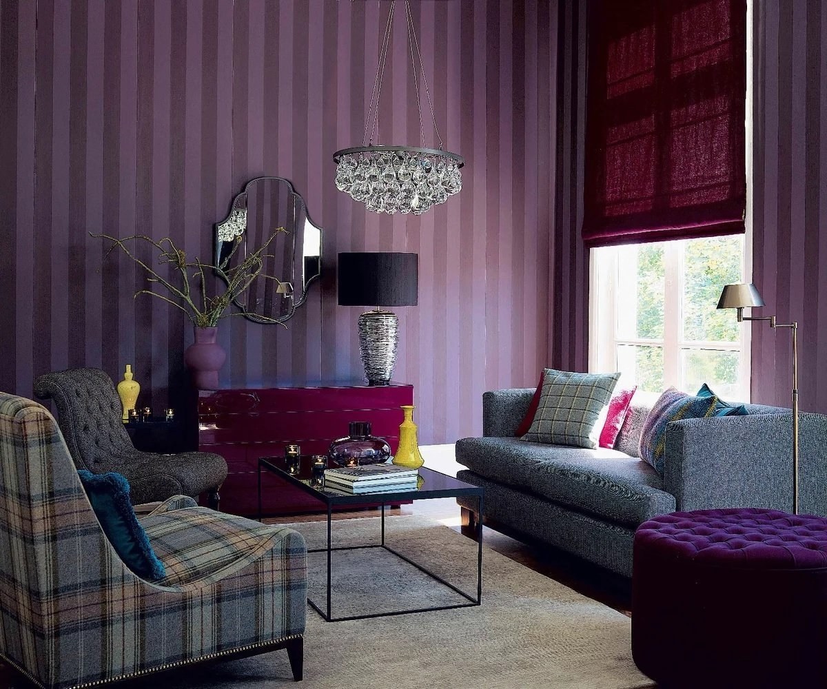 Фиолетовый в интерьере гостиной