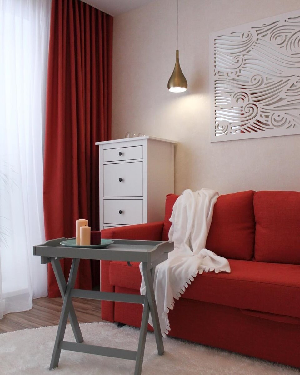 Шторы к красному дивану