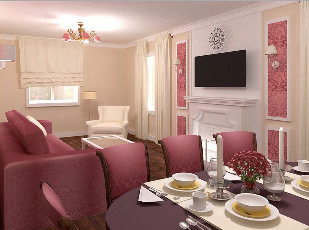 Интерьер розовой гостиной