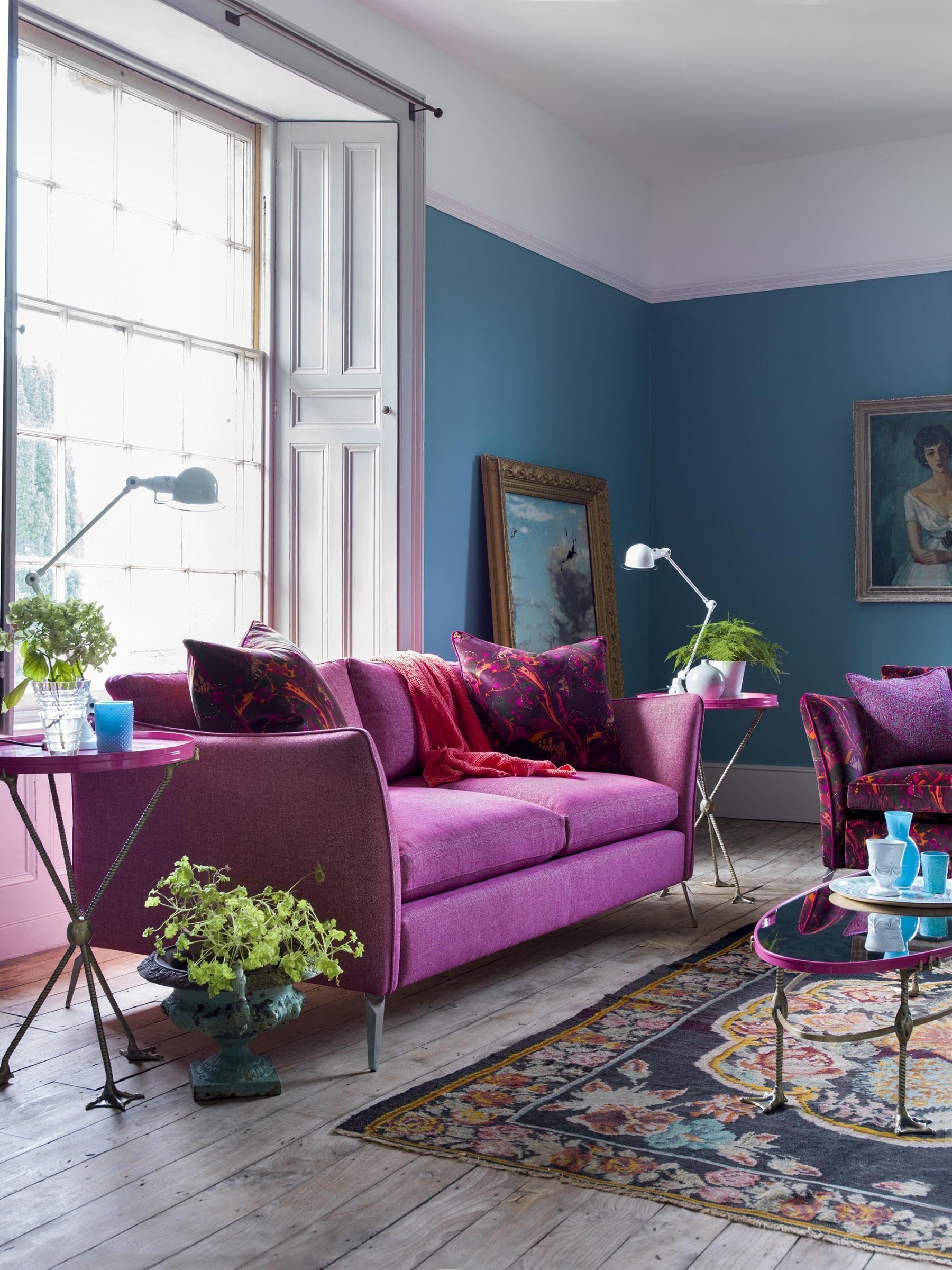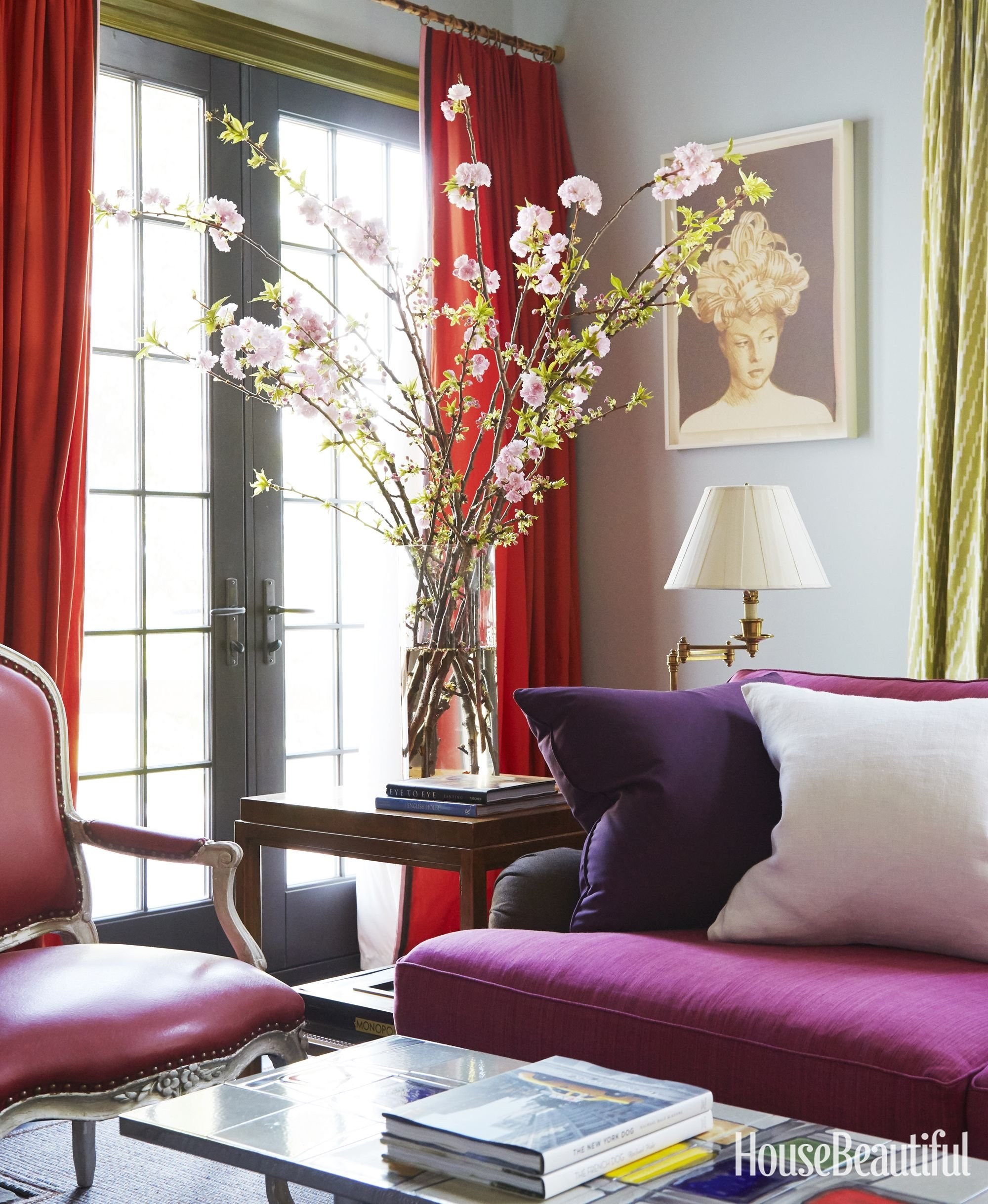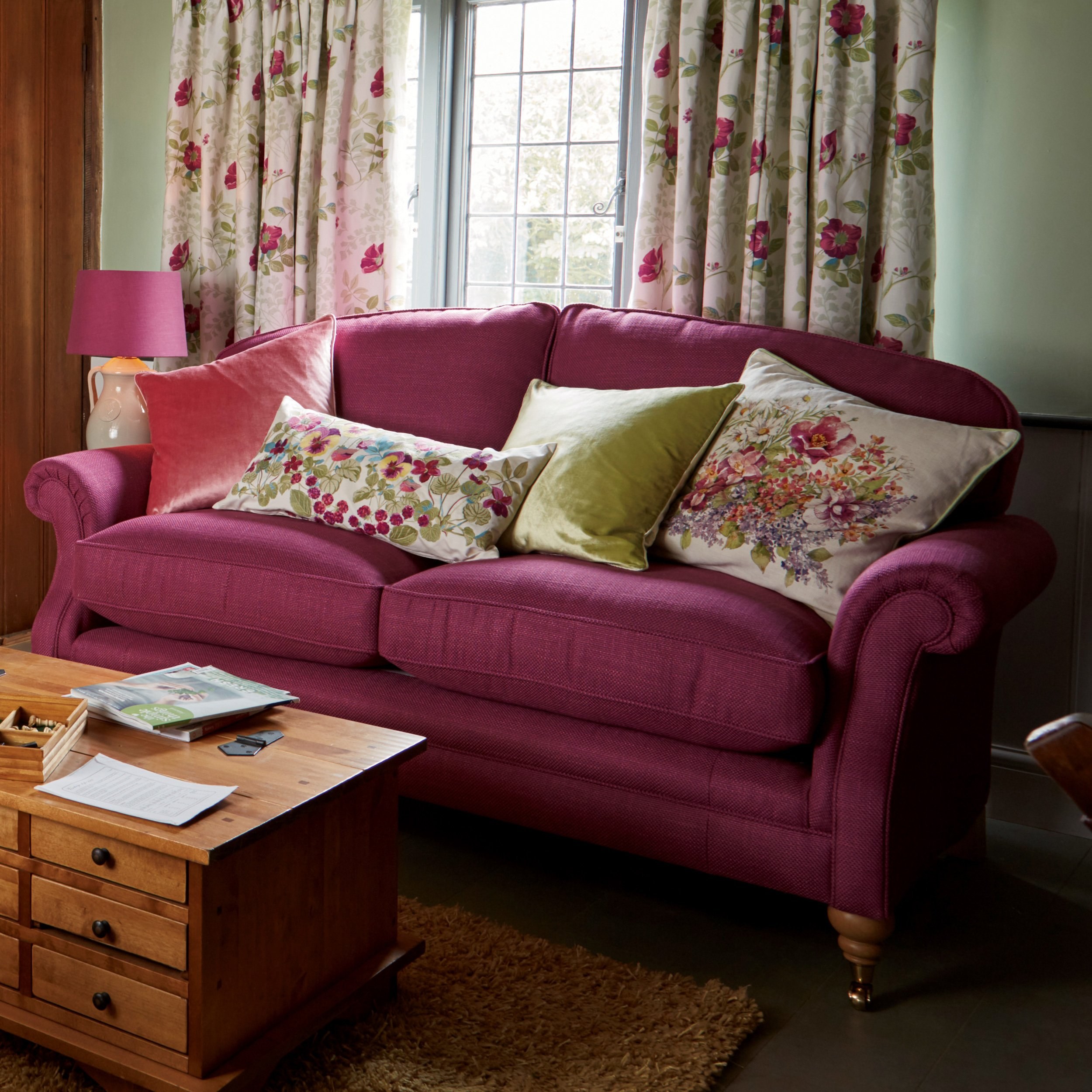 Диван цвета фуксии в интерьере