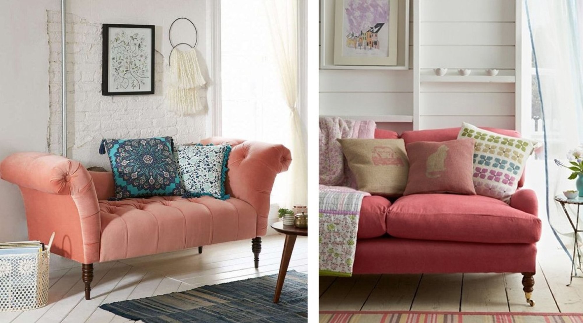 Диван кораллового цвета в интерьере