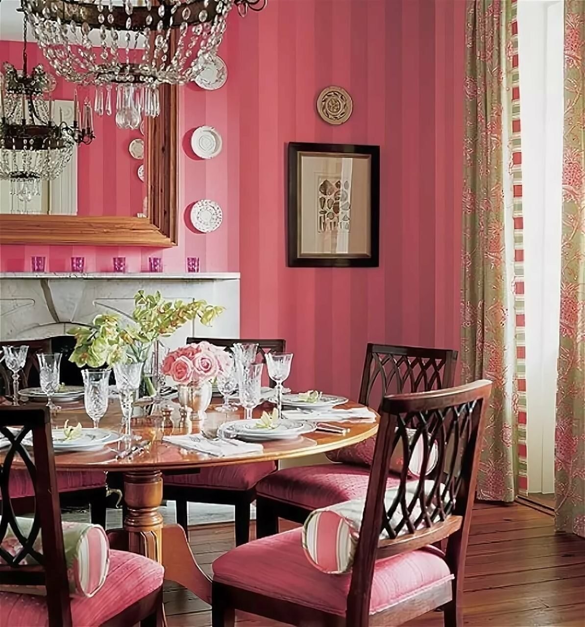 Сочетание розового и зеленого в интерьере