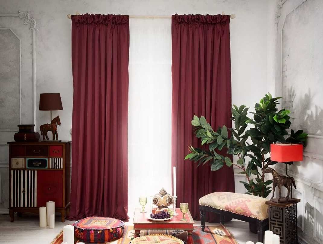 Бордовые шторы в интерьере