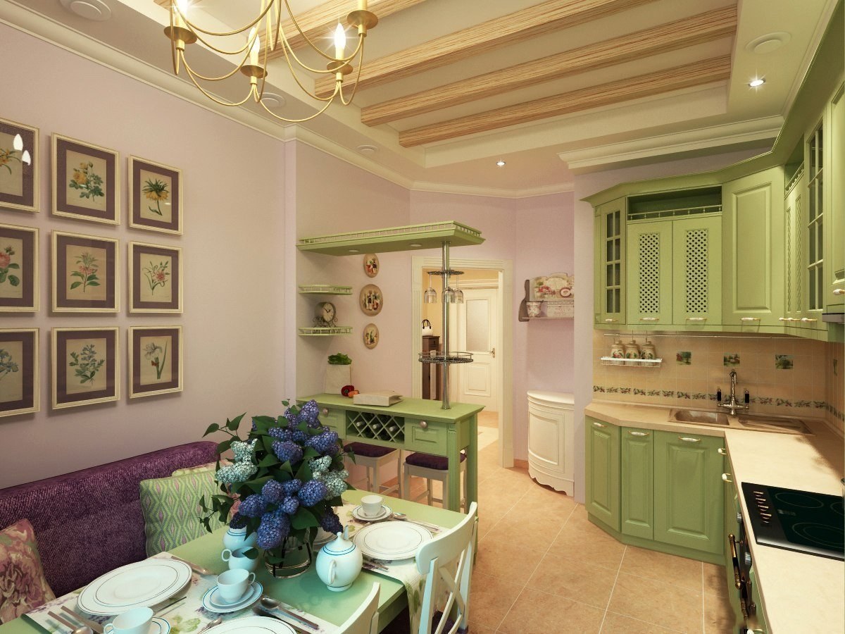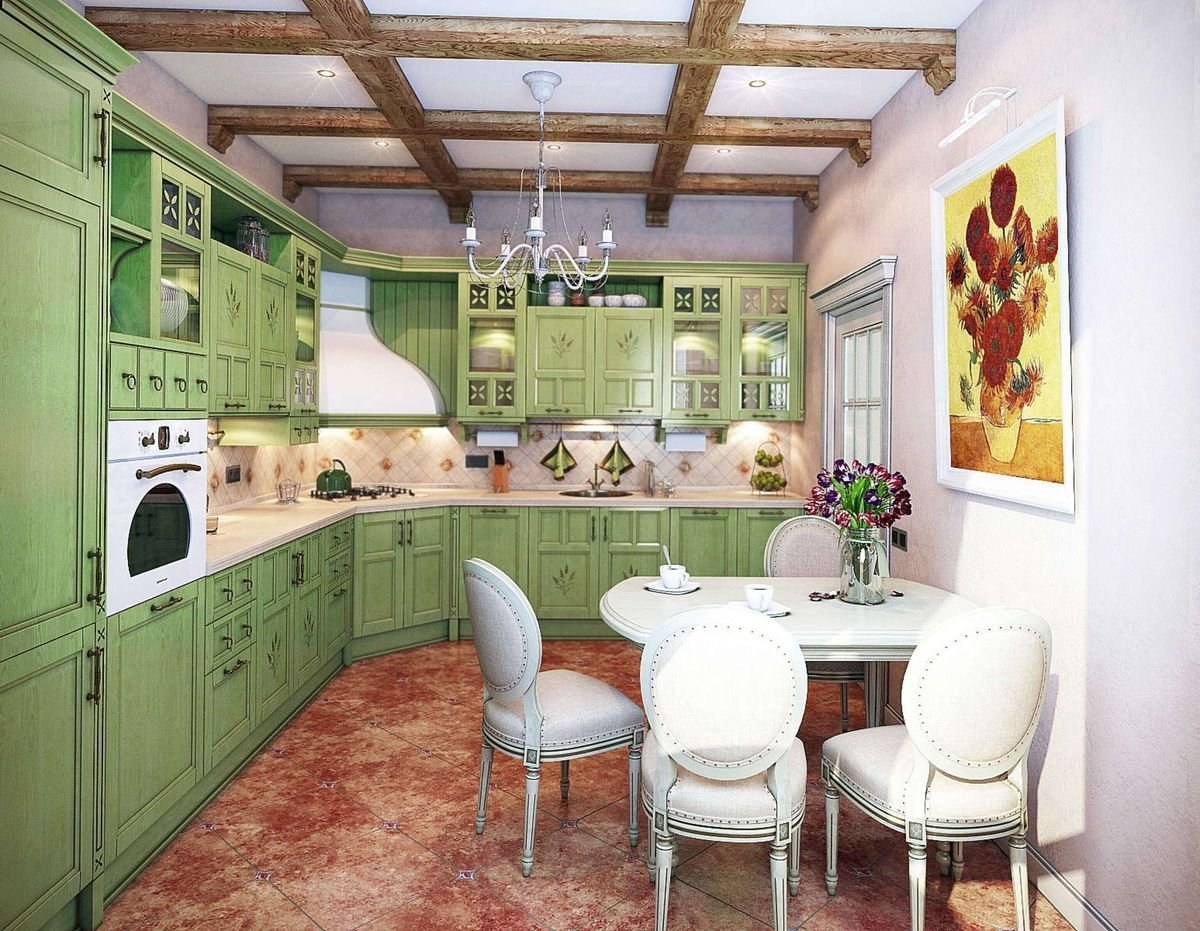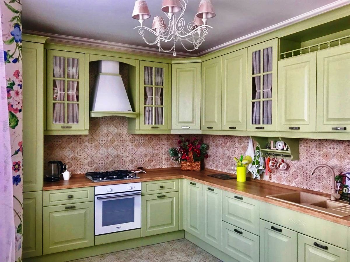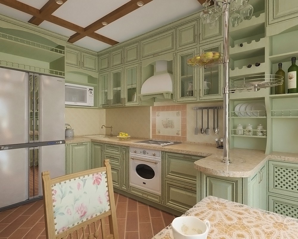 Фисташковая кухня в интерьере в стиле Прованс