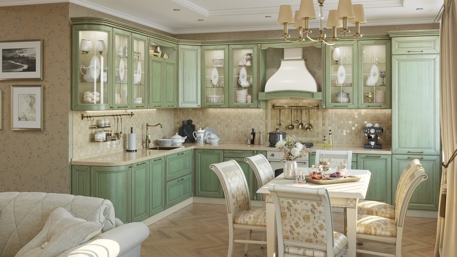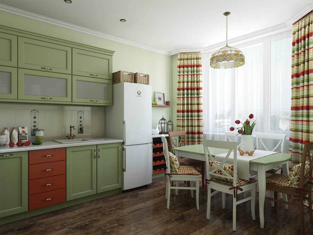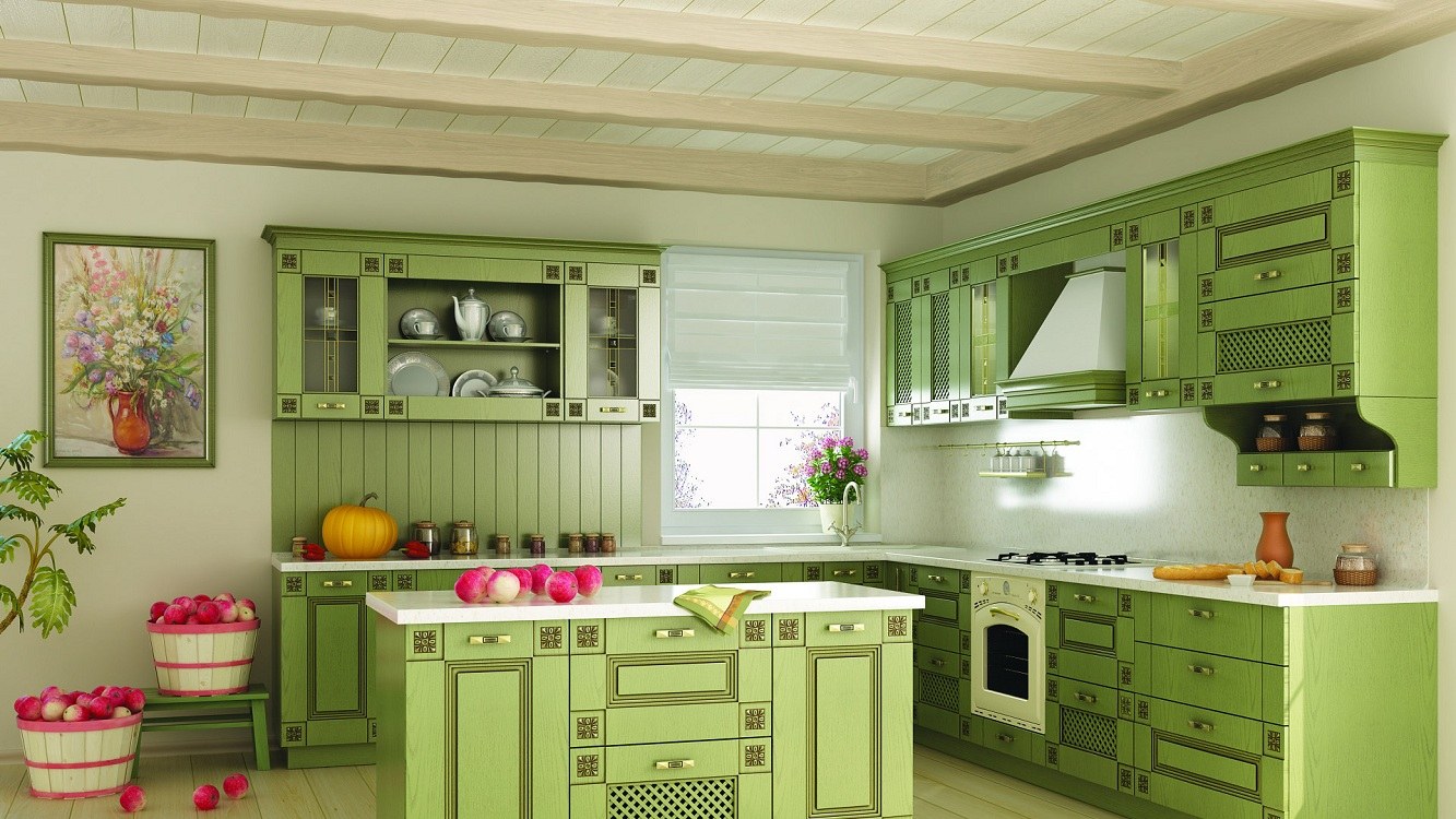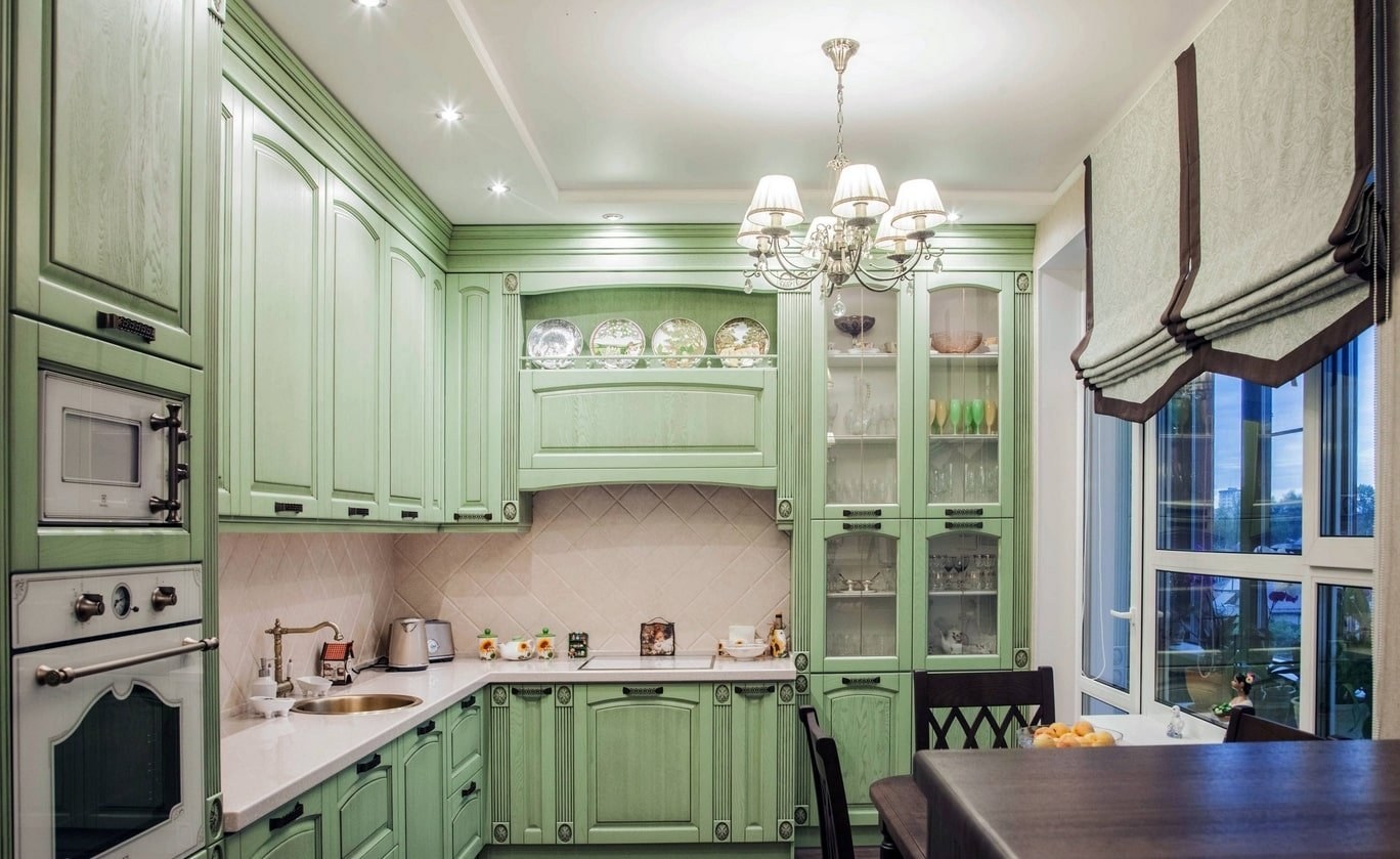 Фисташковая кухня в интерьере в стиле Прованс