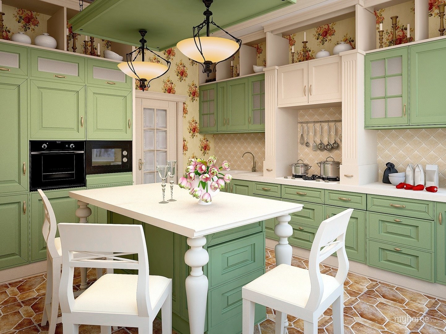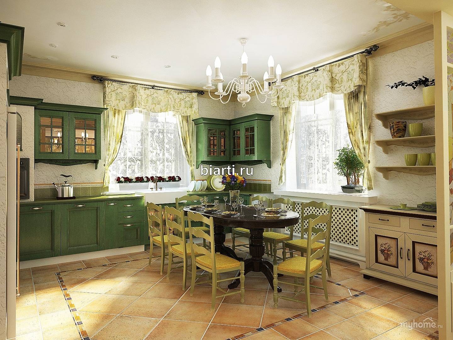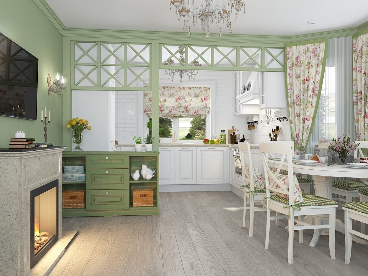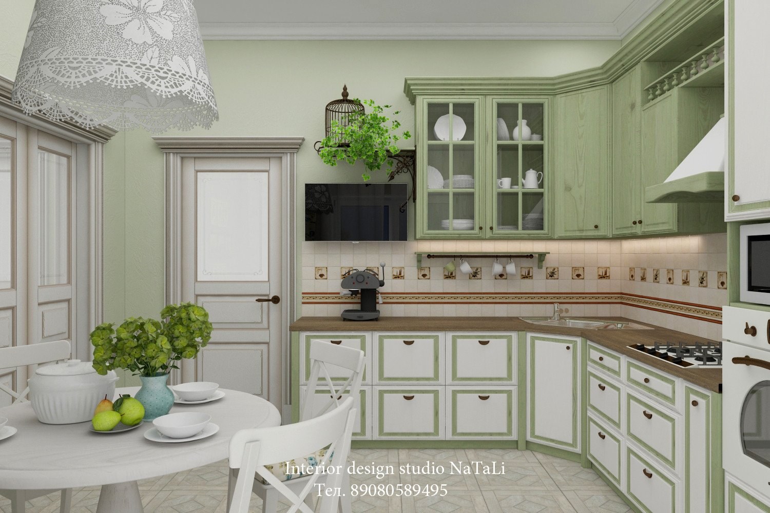 Фисташковая кухня в интерьере в стиле Прованс