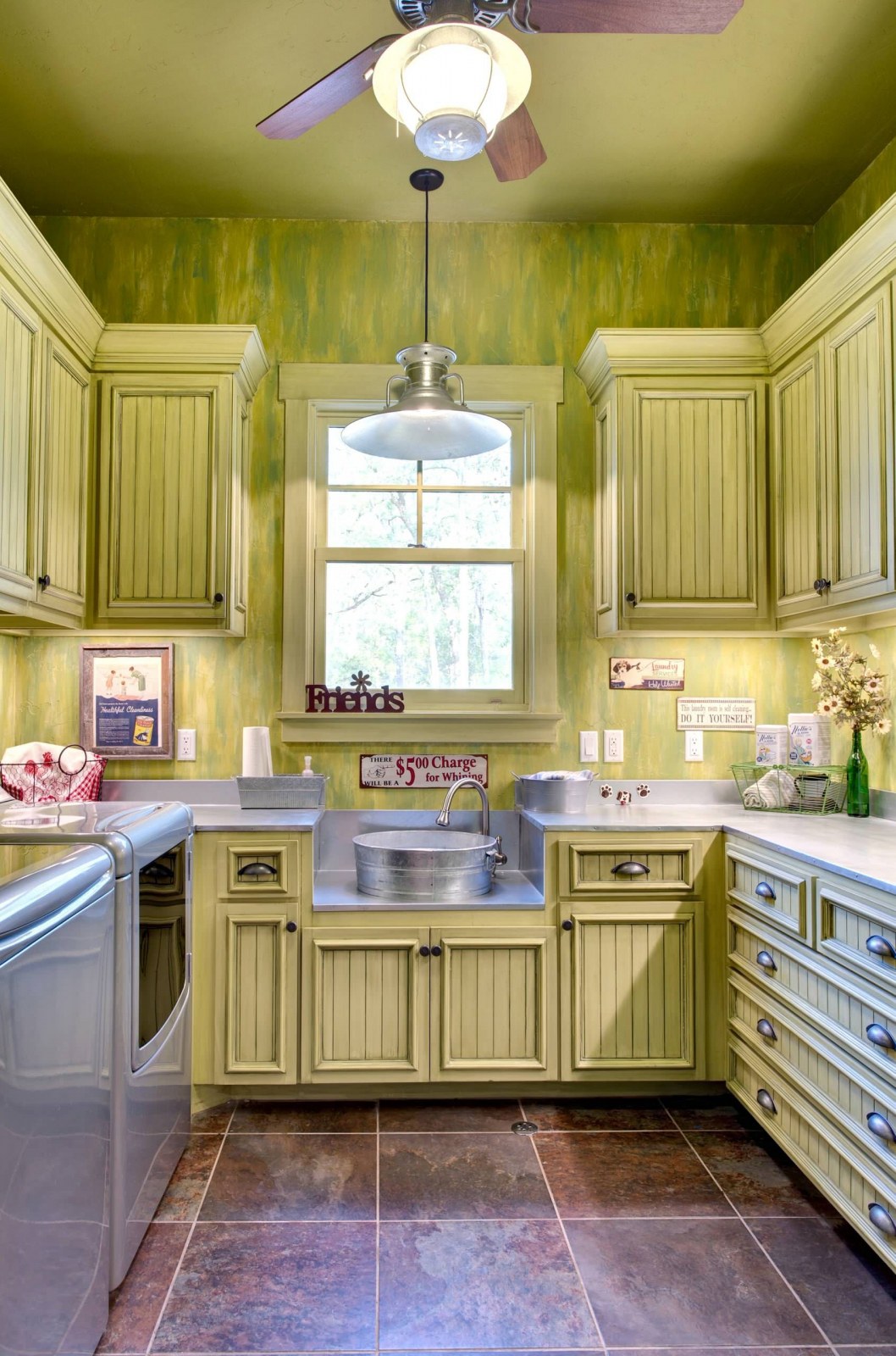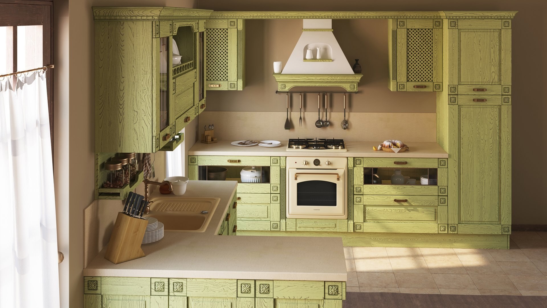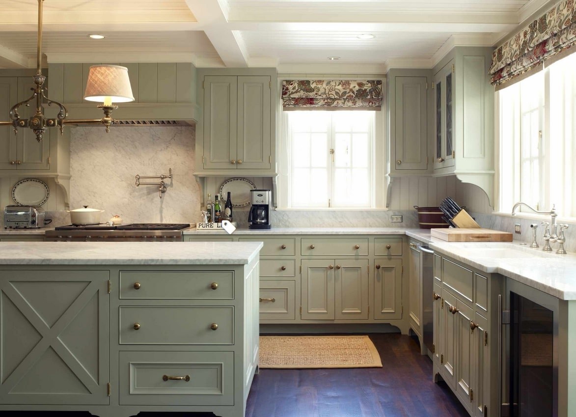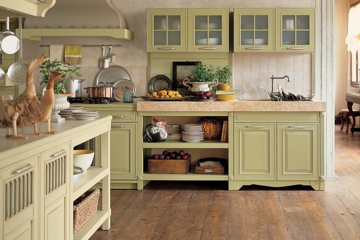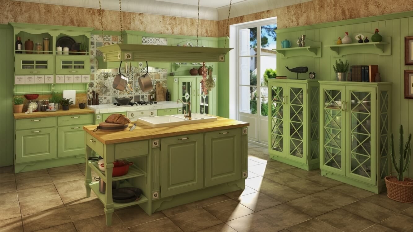 Кухня в стиле Кантри оливкового цвета