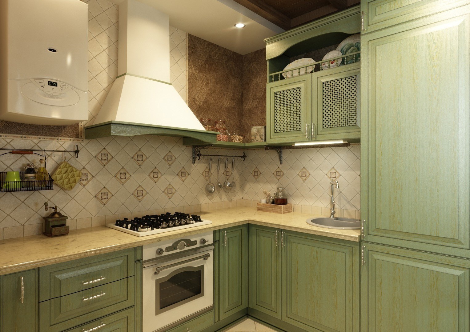 Кухня в фисташковых тонах в стиле Прованс