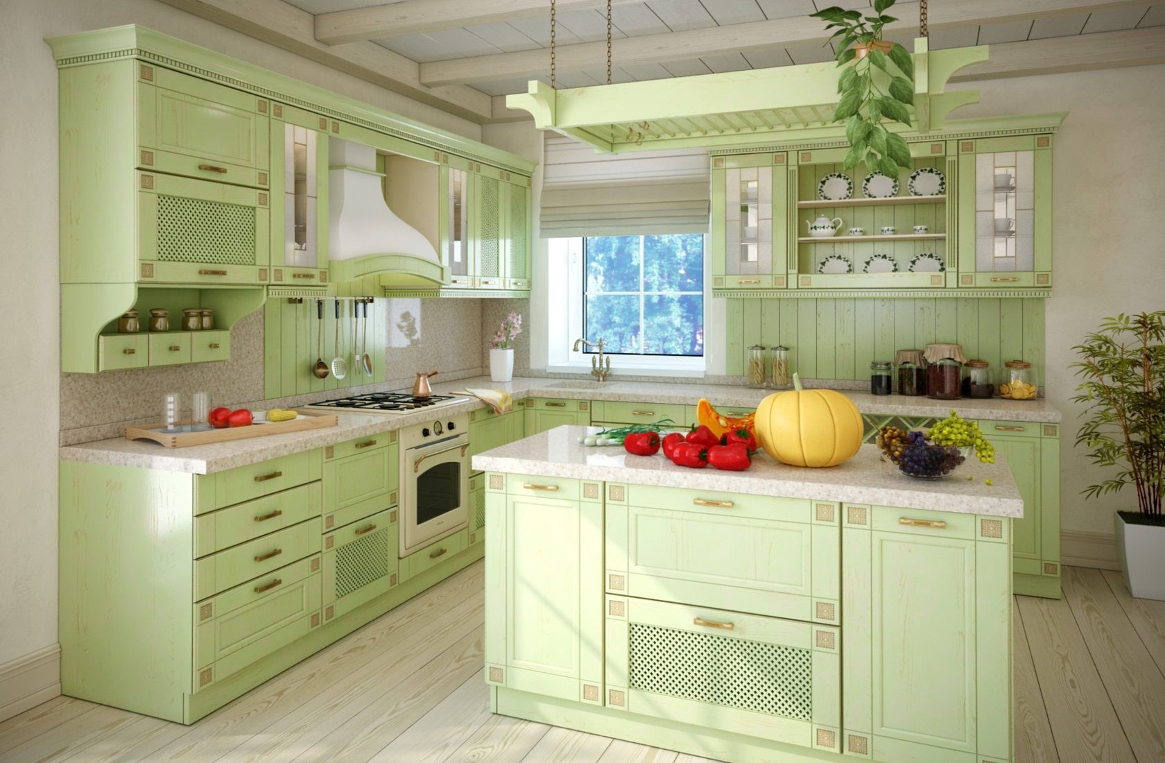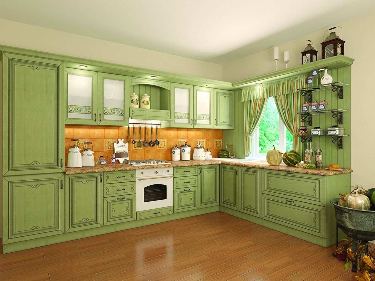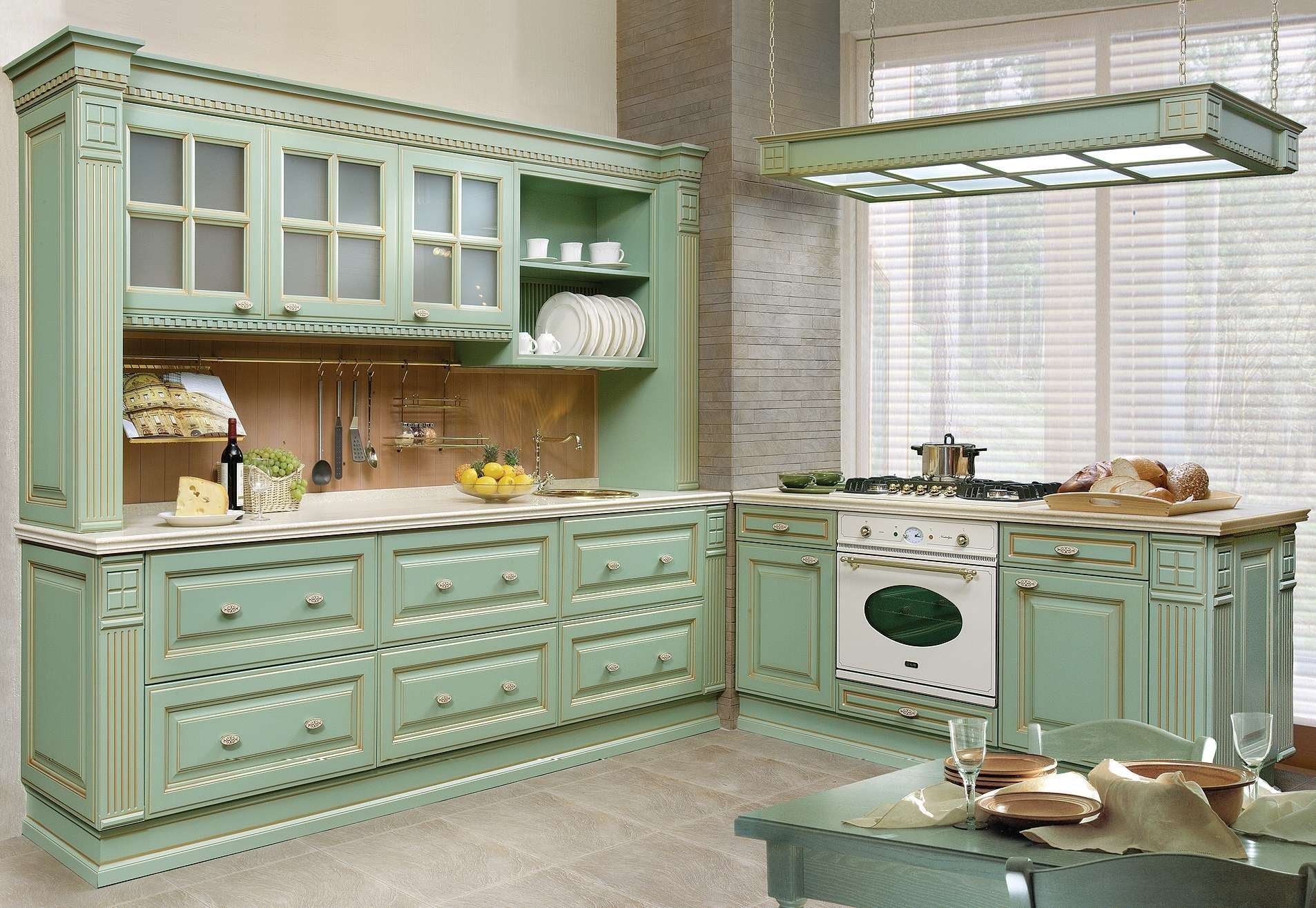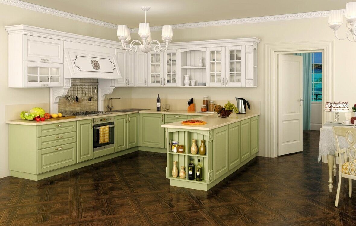 Кухня в стиле Прованс фисташкового цвета