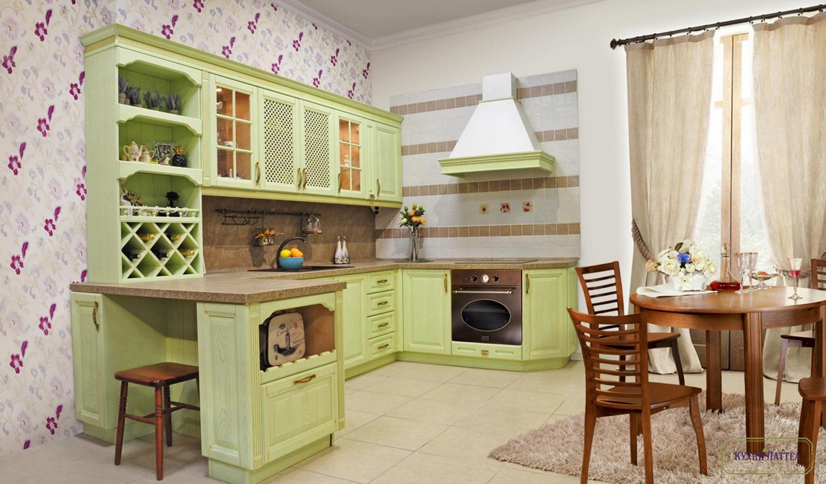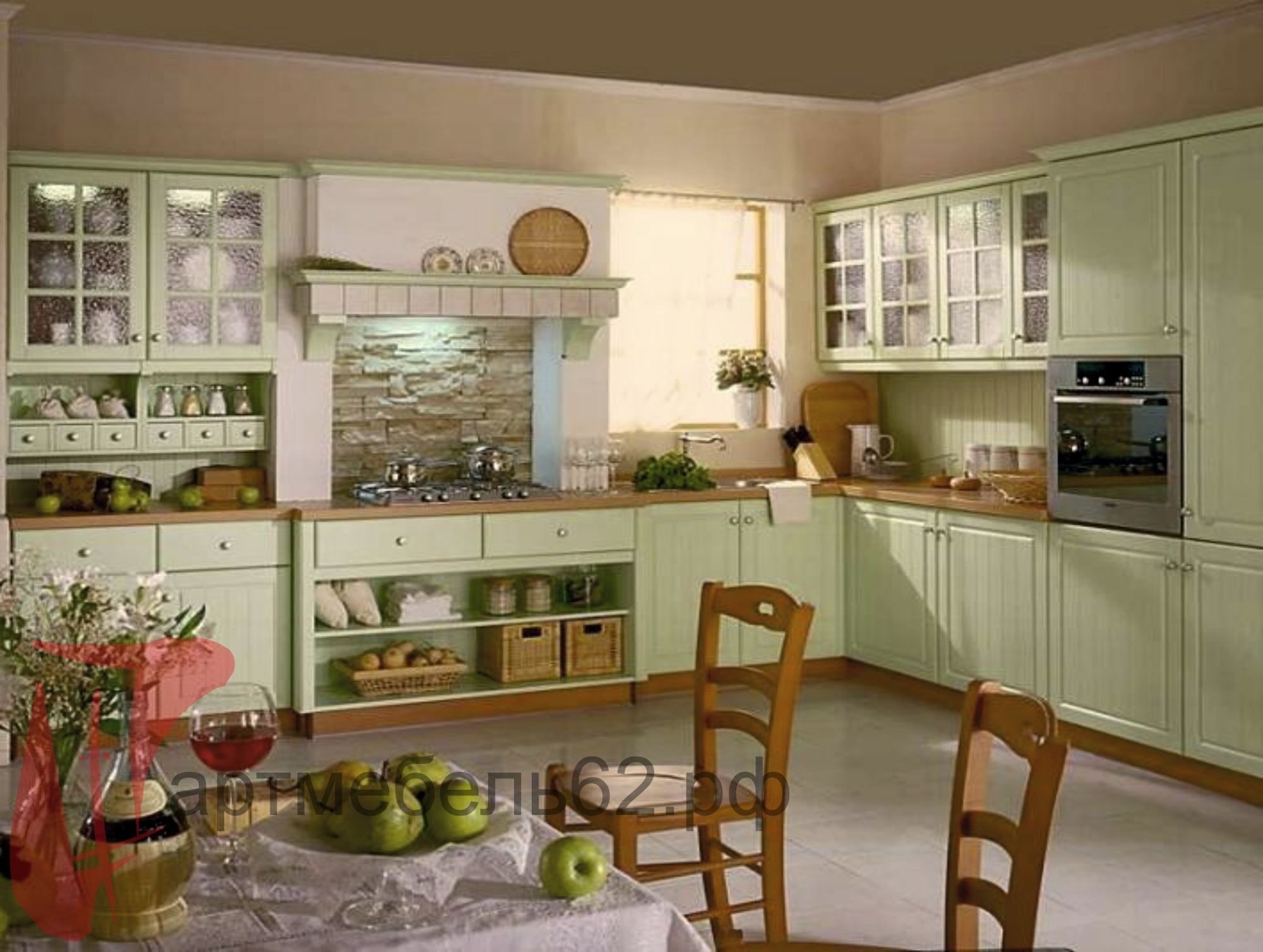 Фисташковая кухня в стиле Прованс