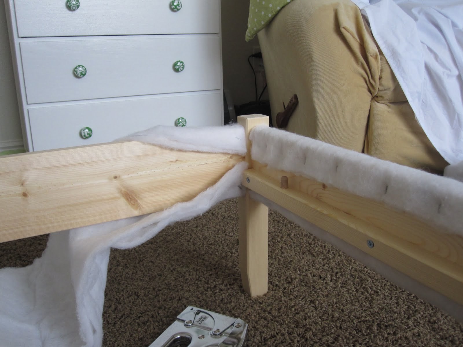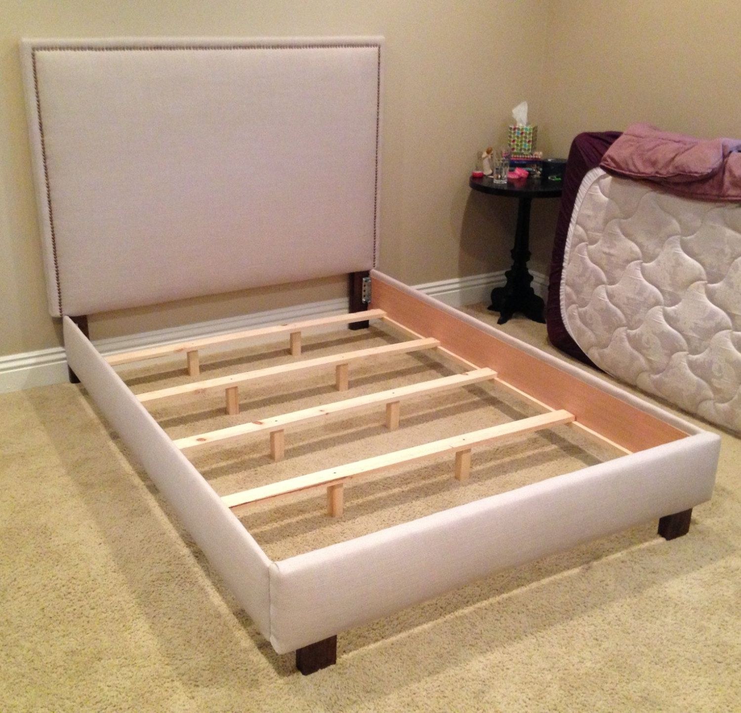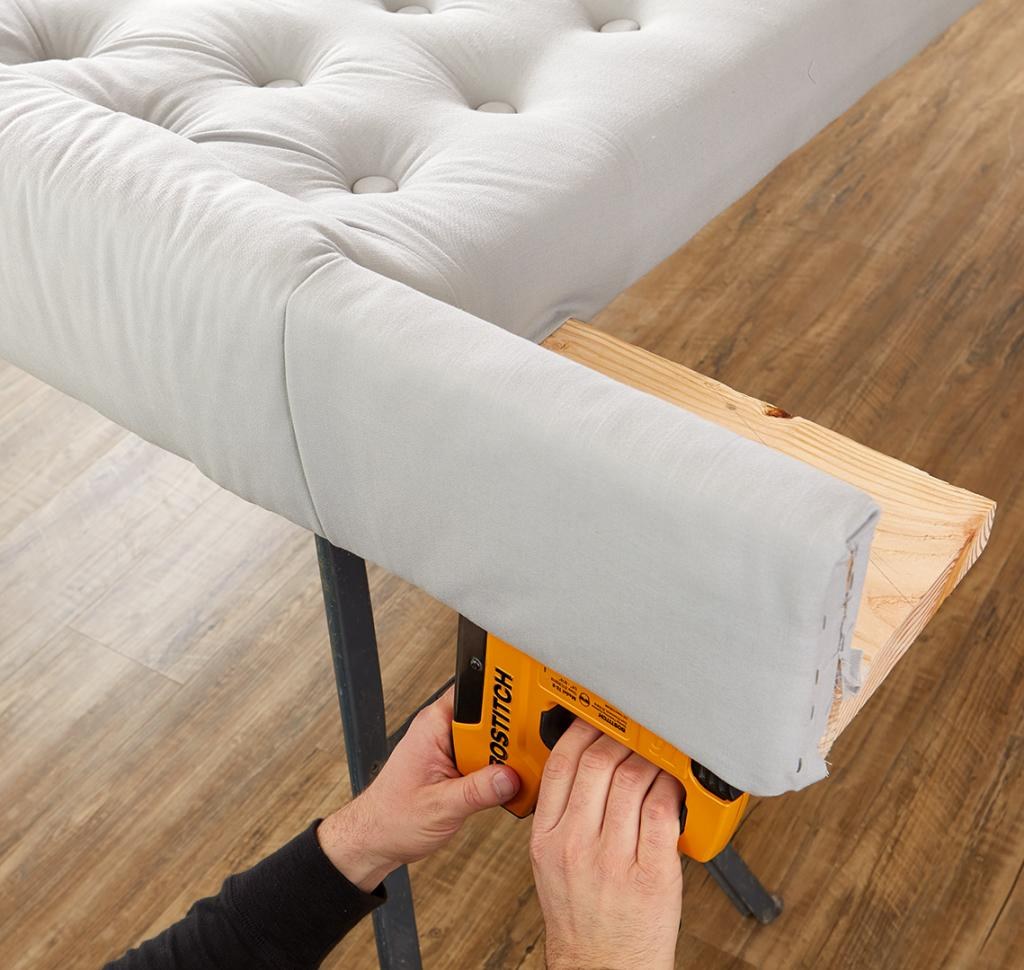 Обтянуть каркас кровати тканью