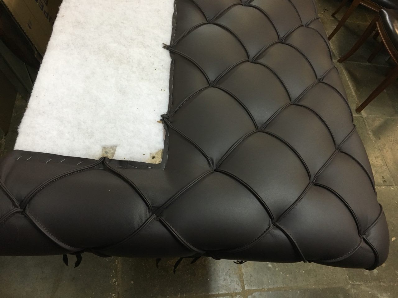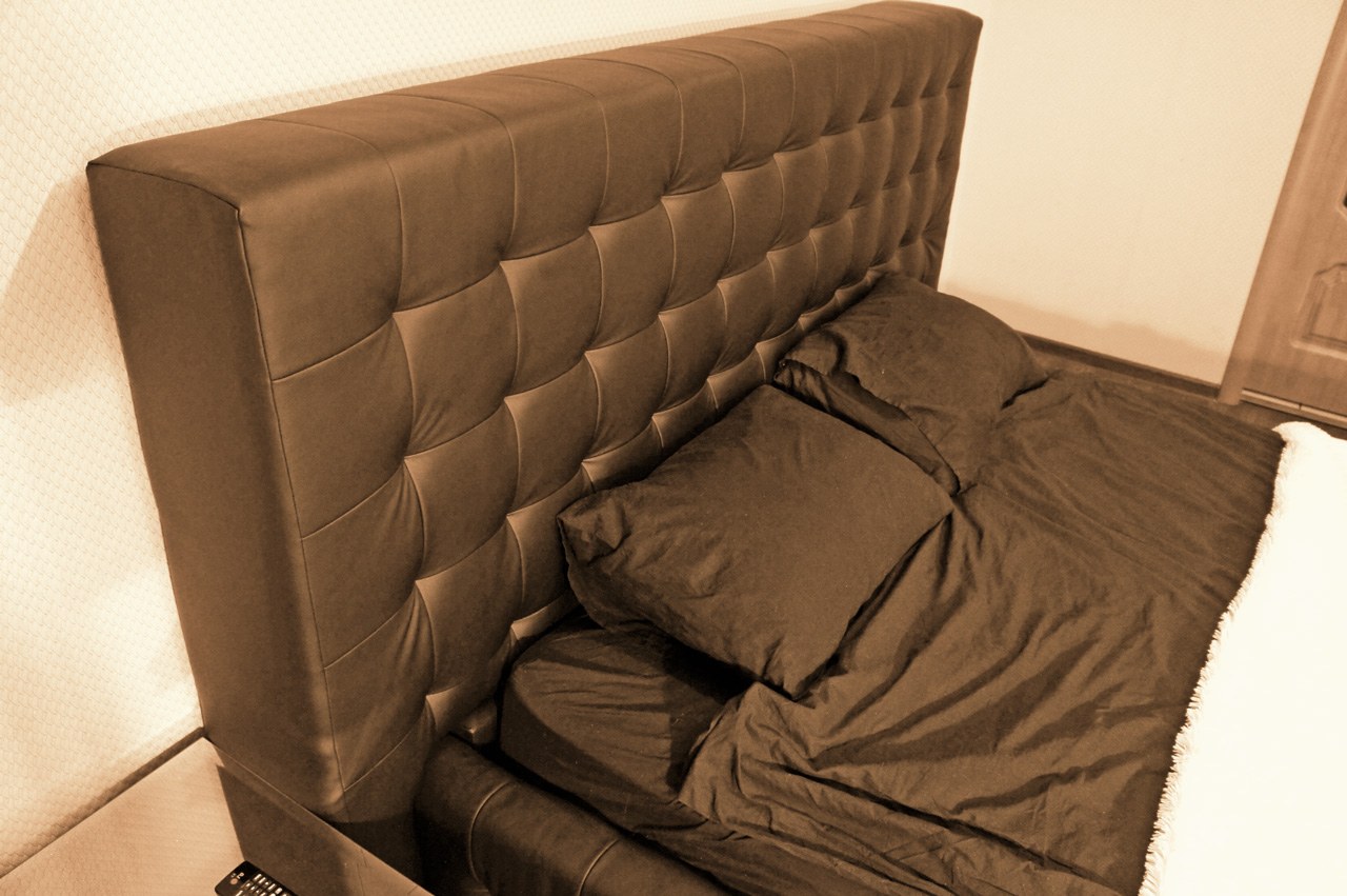 Обтяжка спинки кровати кожей