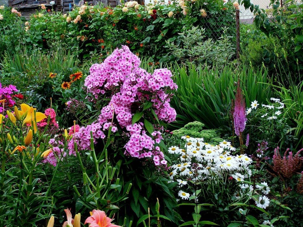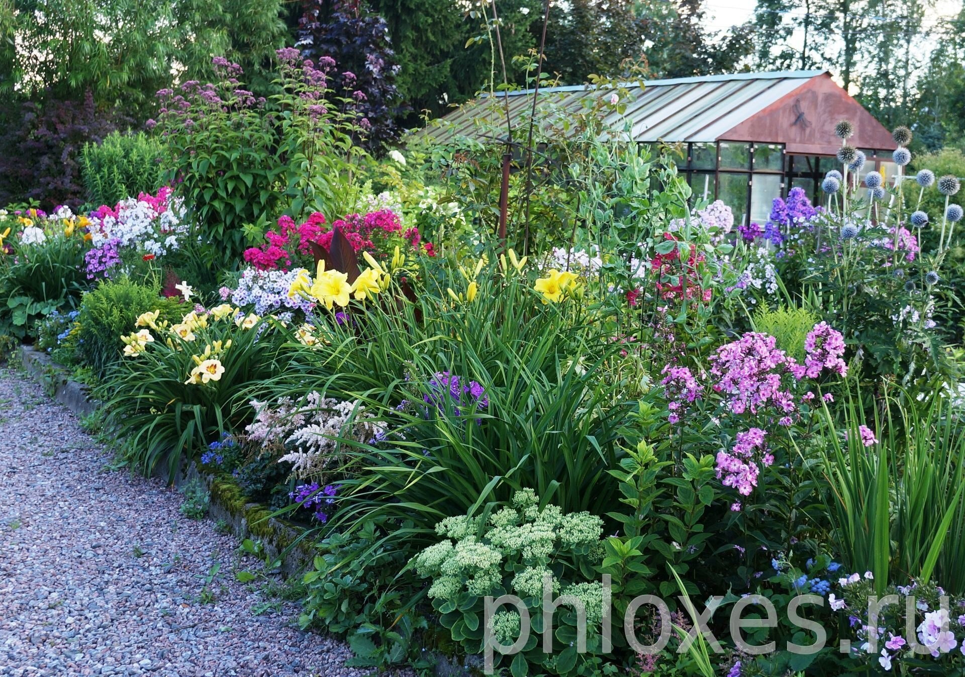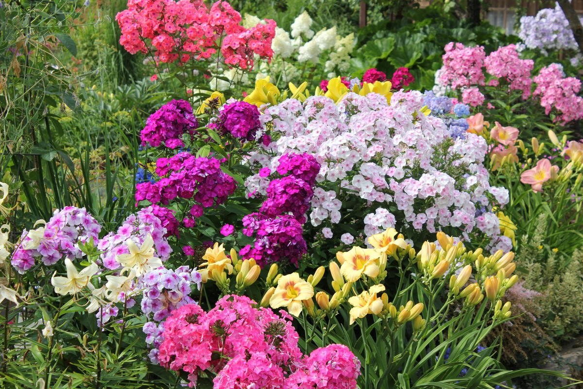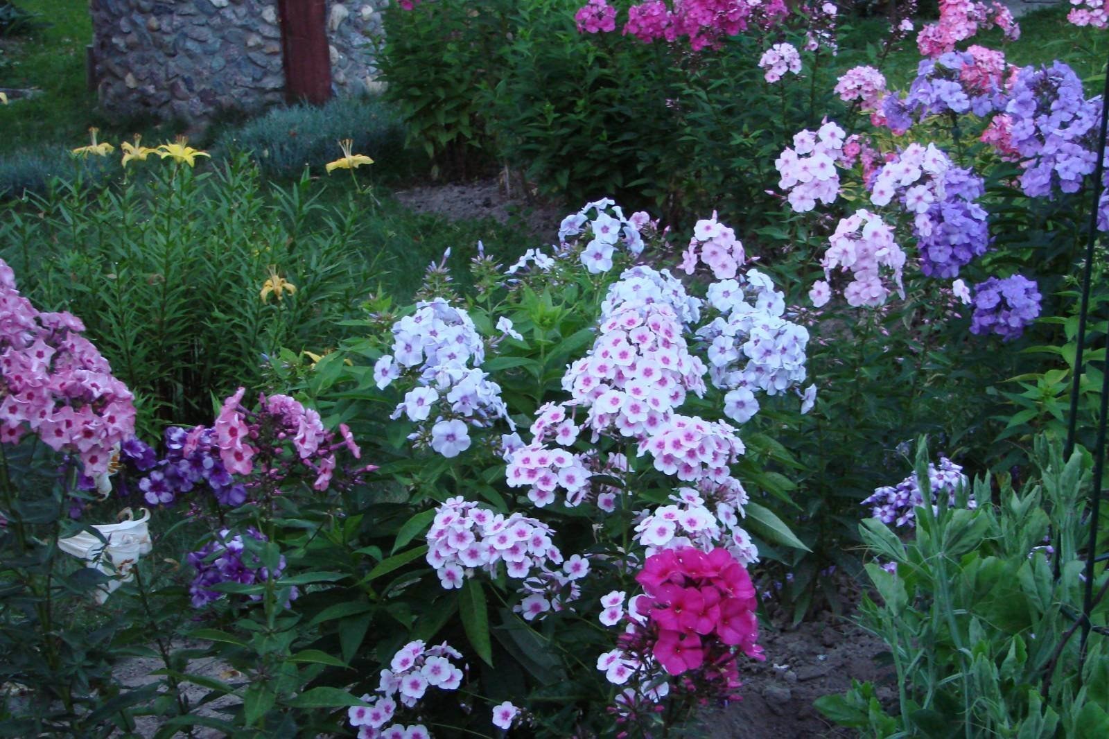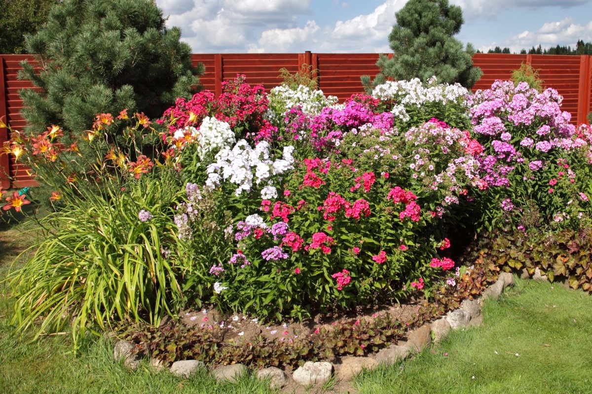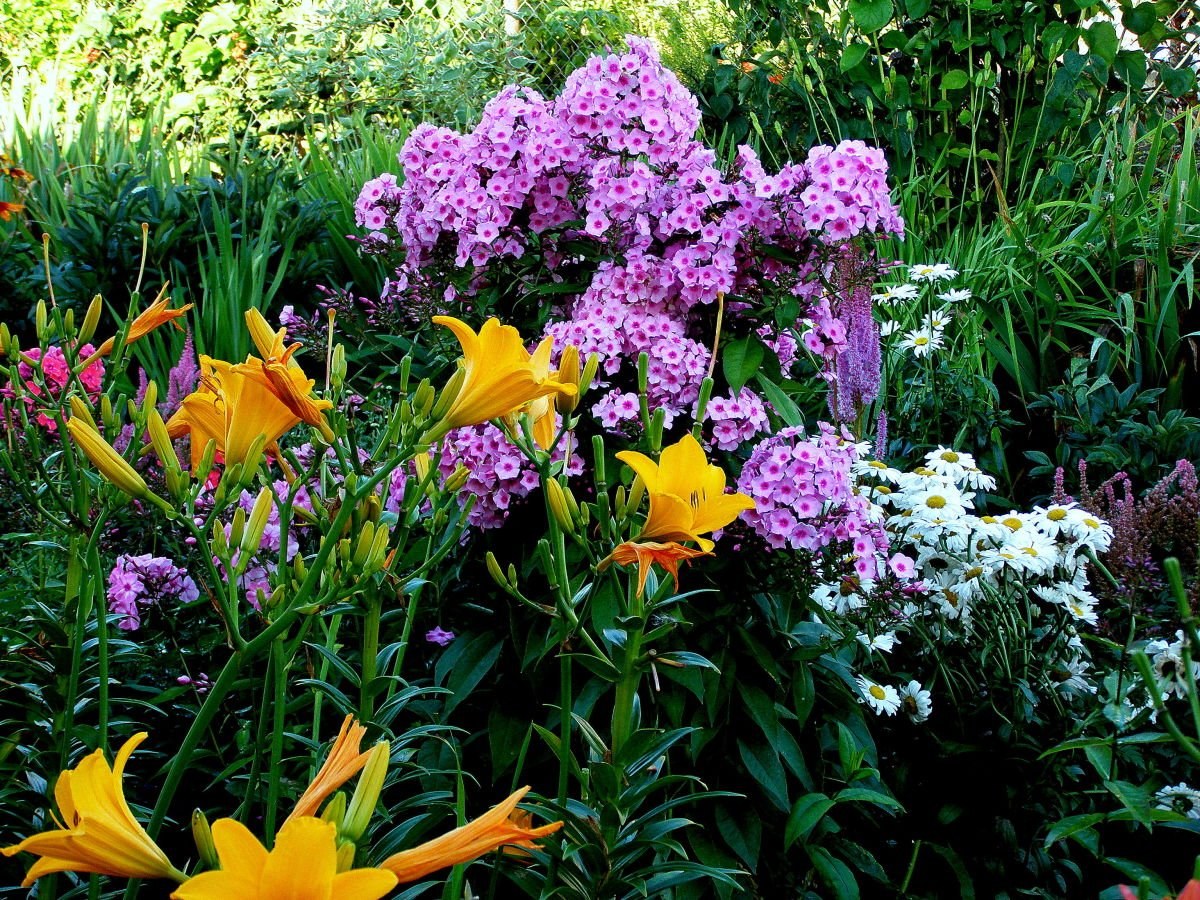 Клумба лилейники, Флоксы, ирисы, пионы, лилии