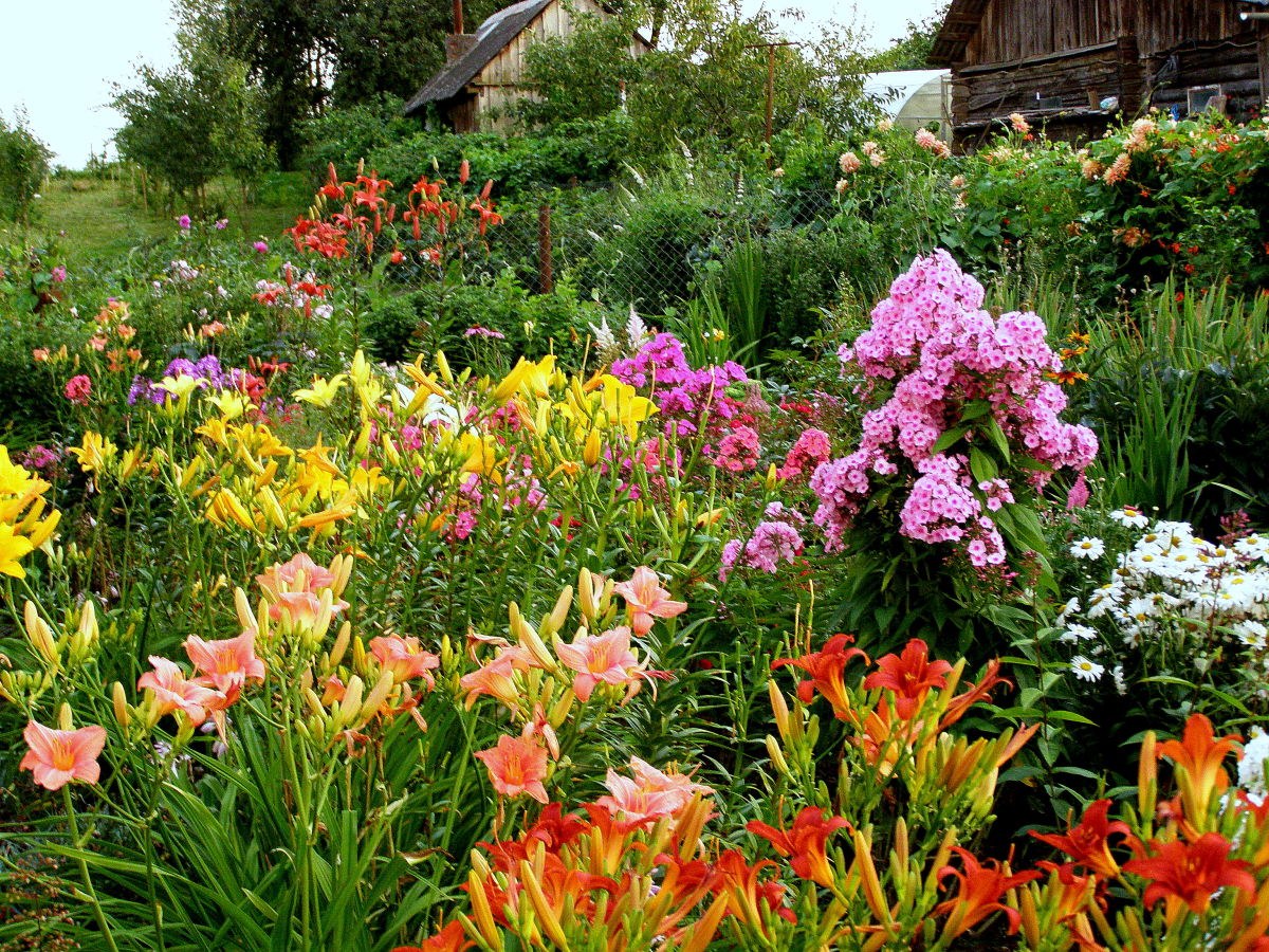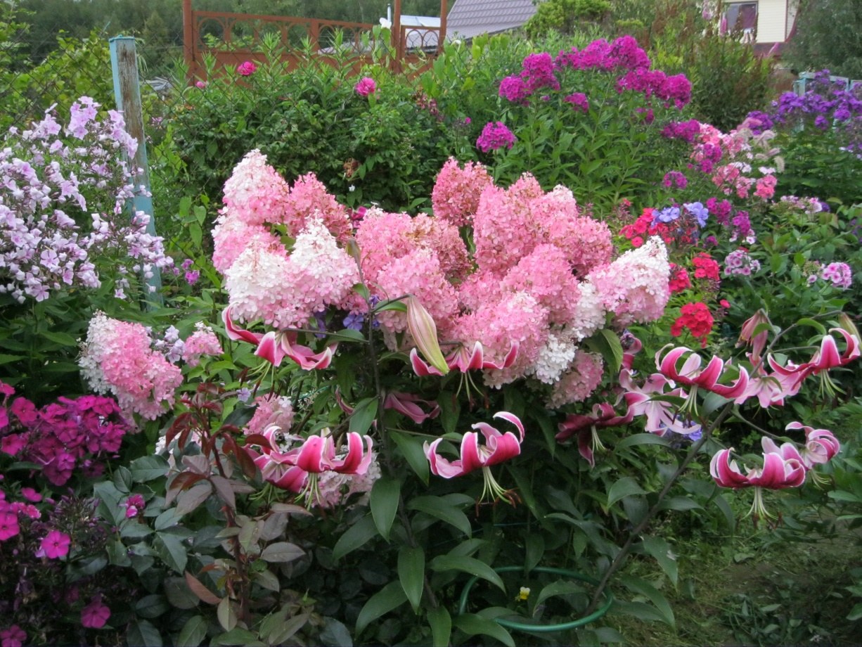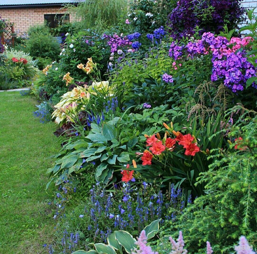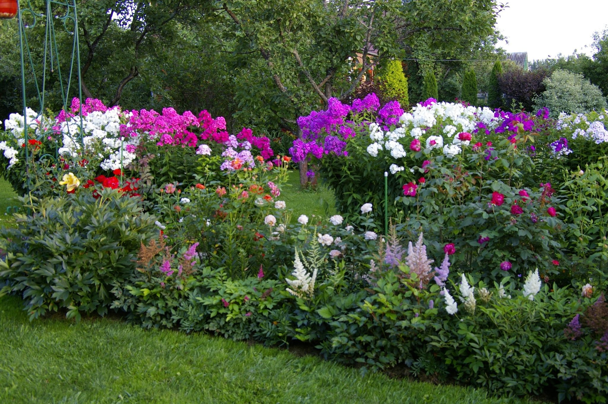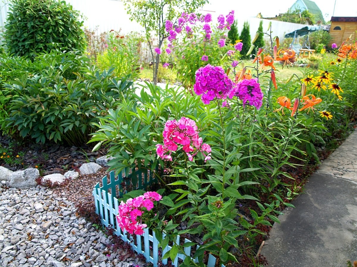 Клумба лилейники, Флоксы, ирисы, пионы, лилии