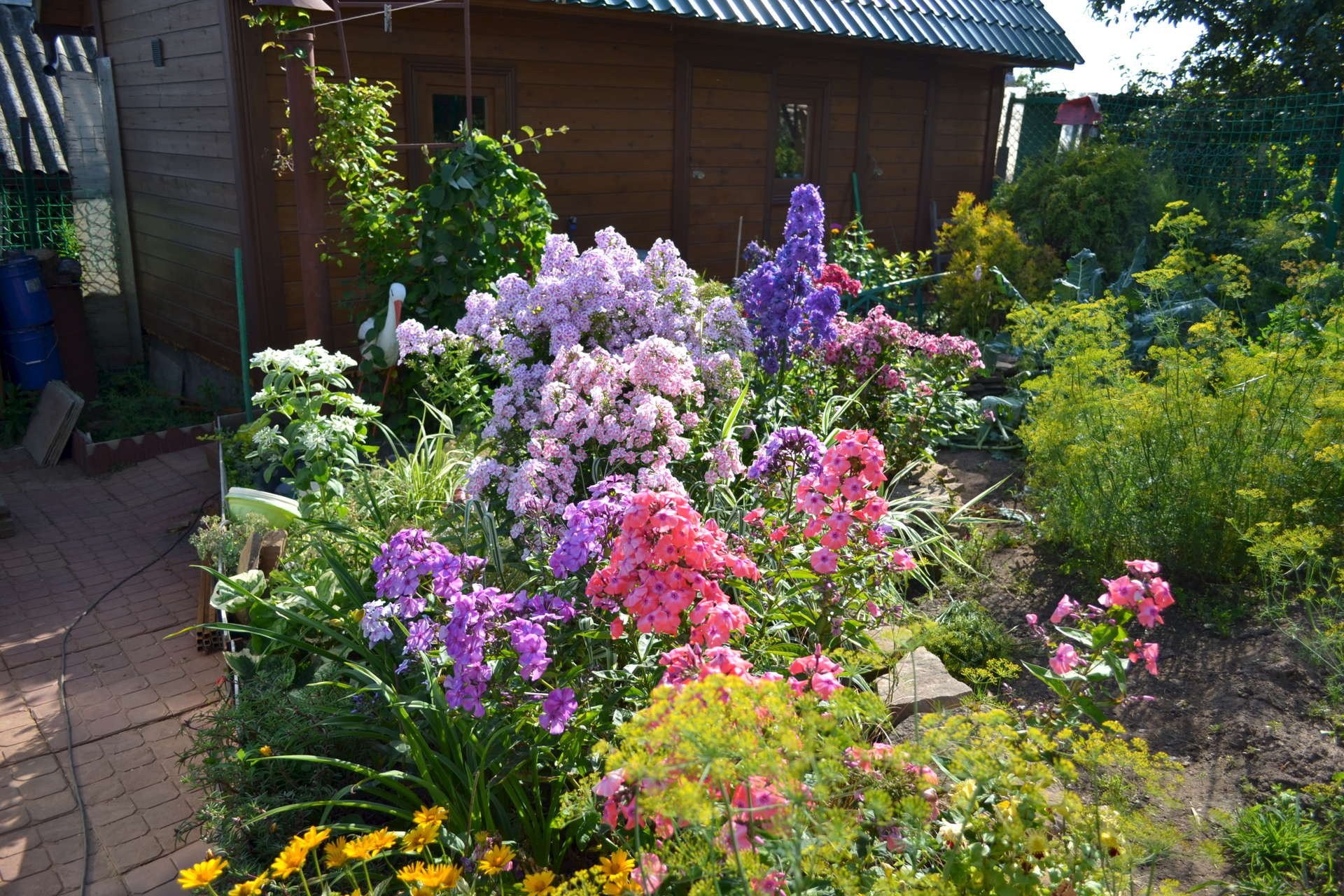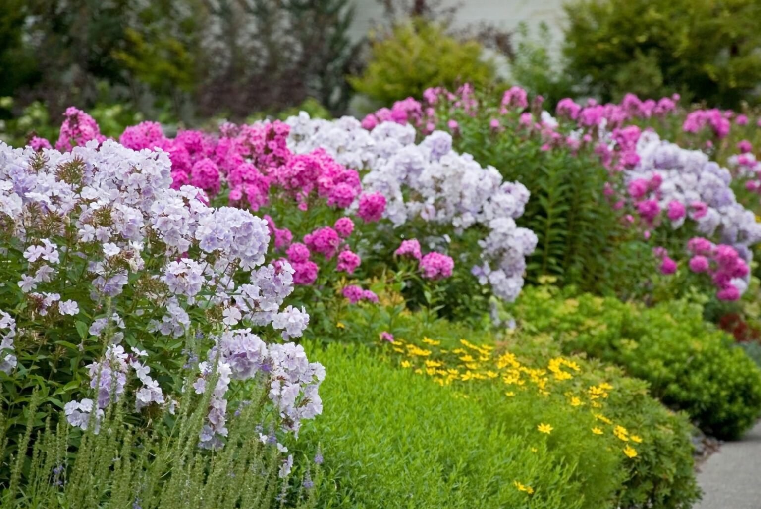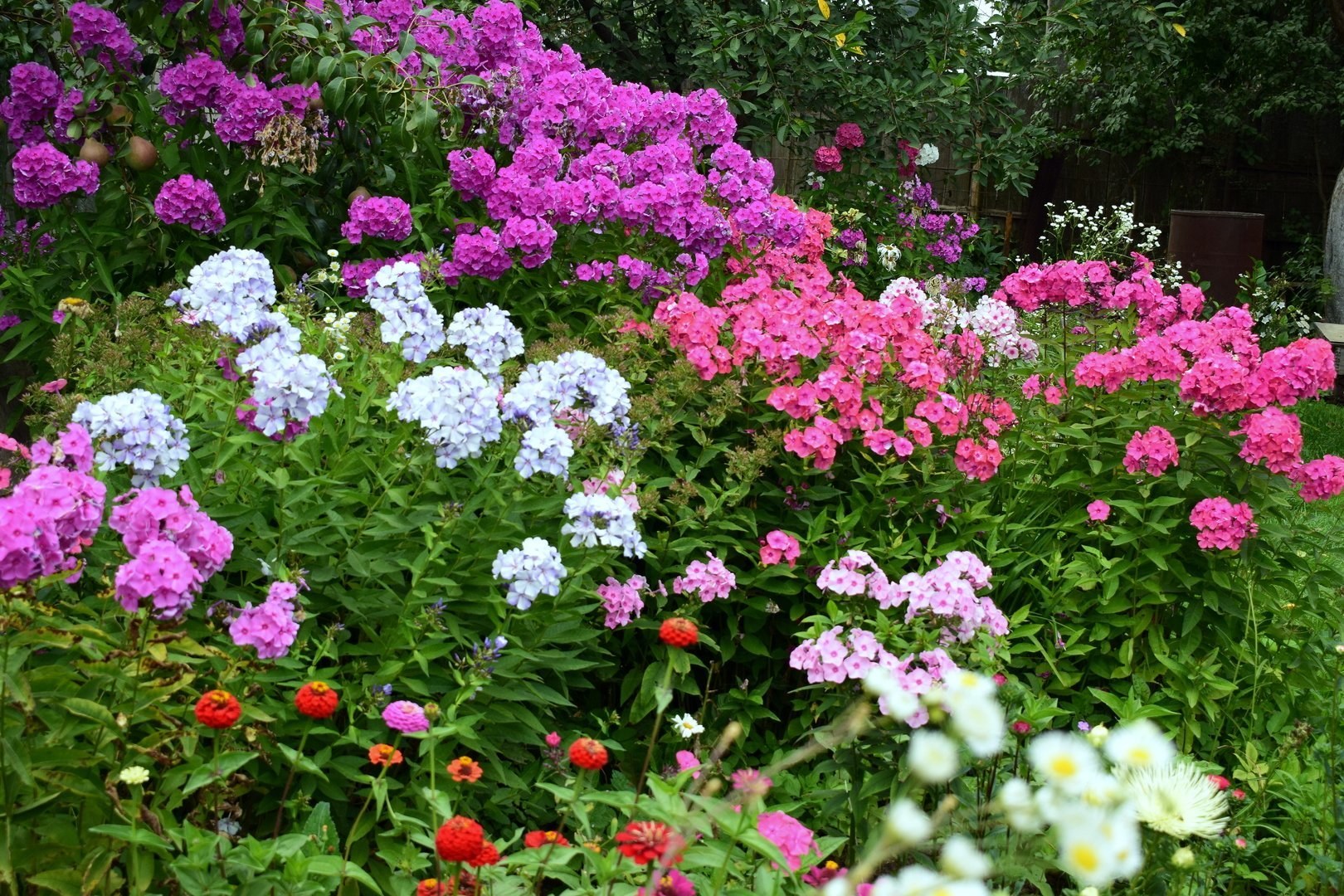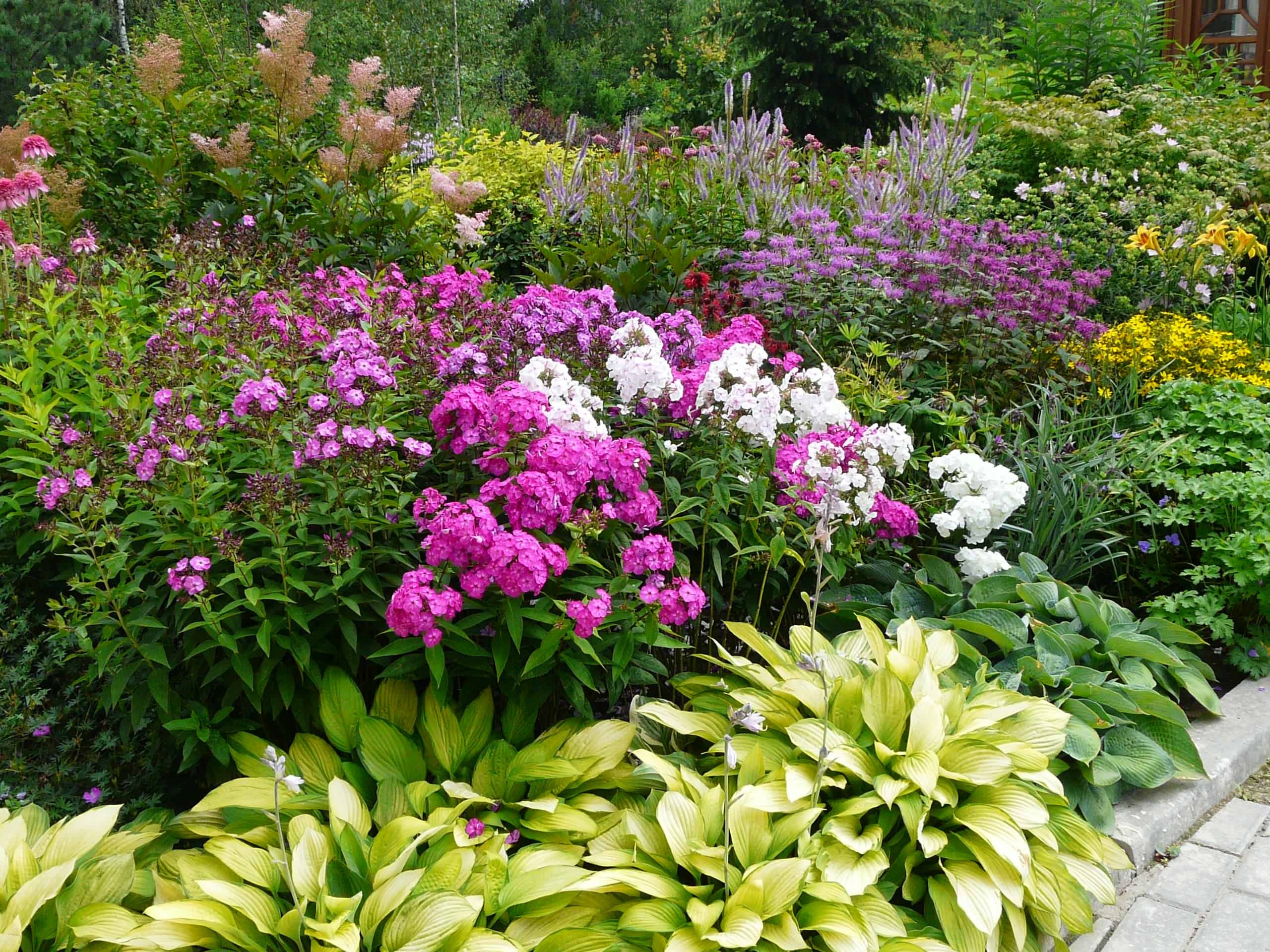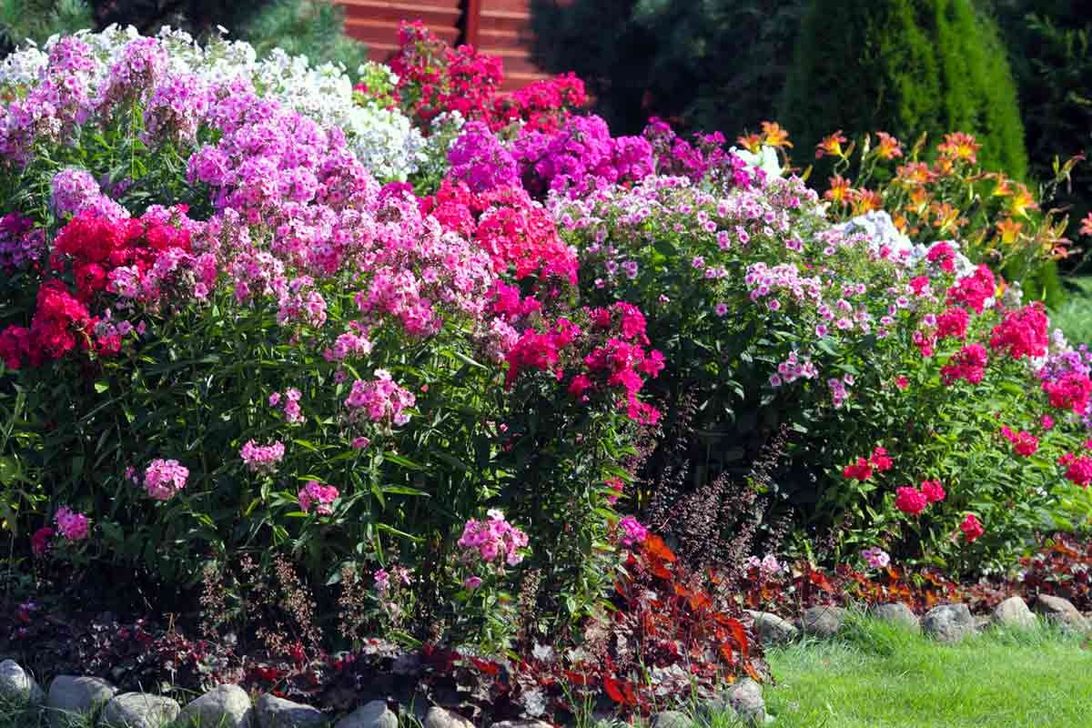 Клумба лилейники, Флоксы, ирисы, пионы, лилии