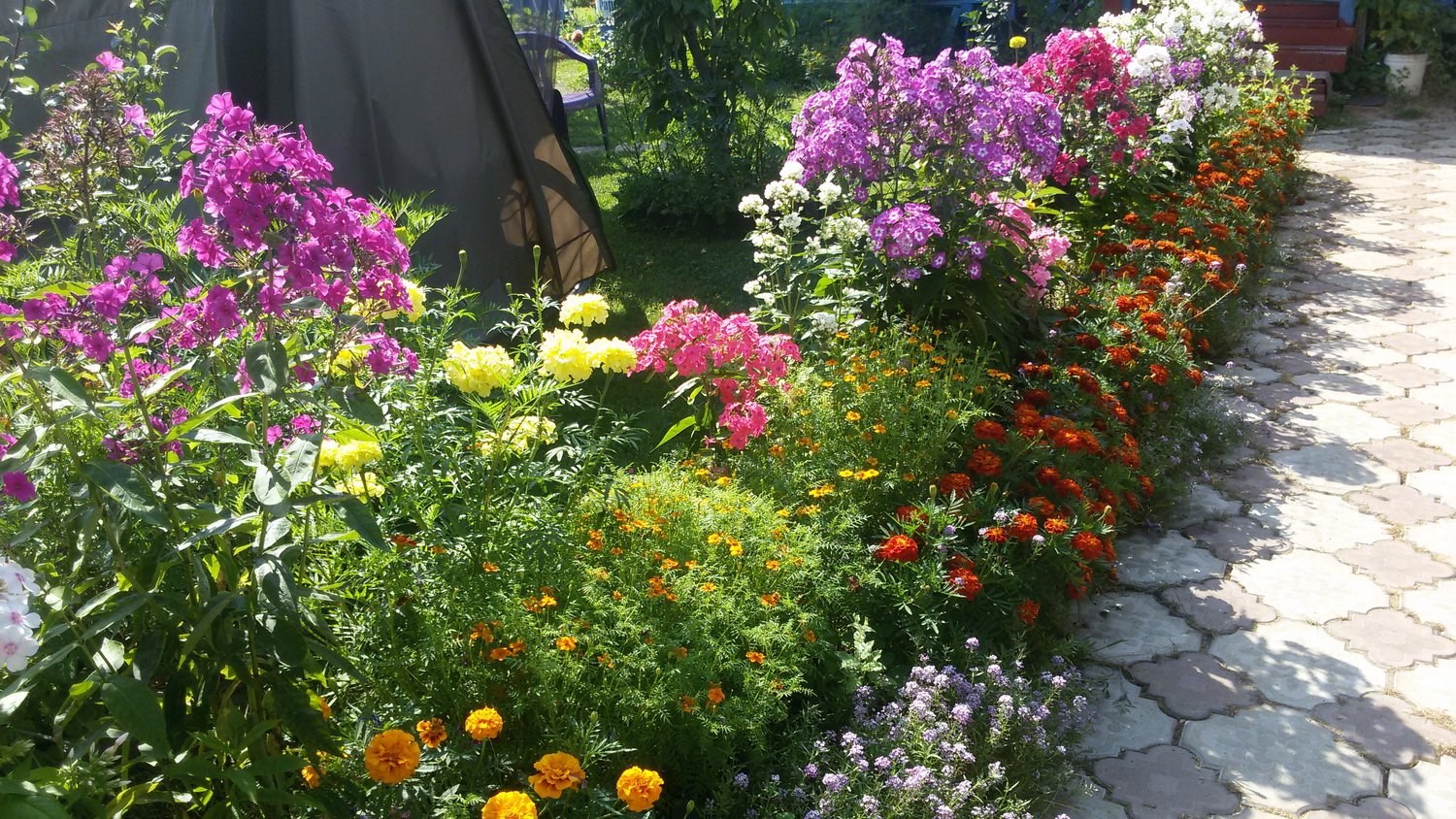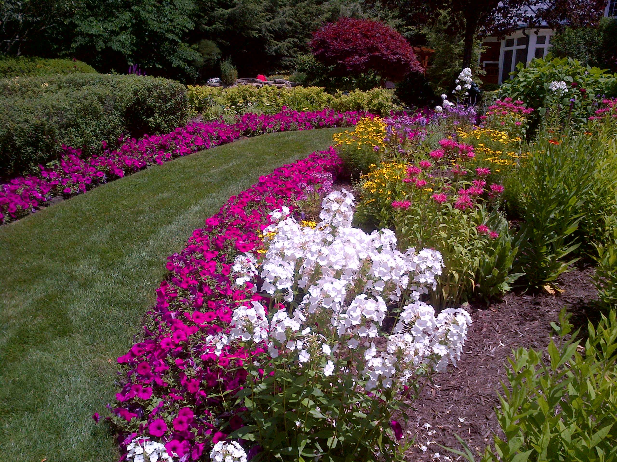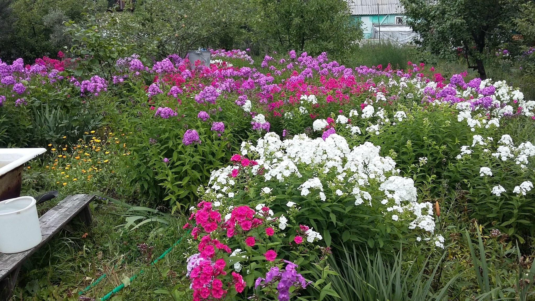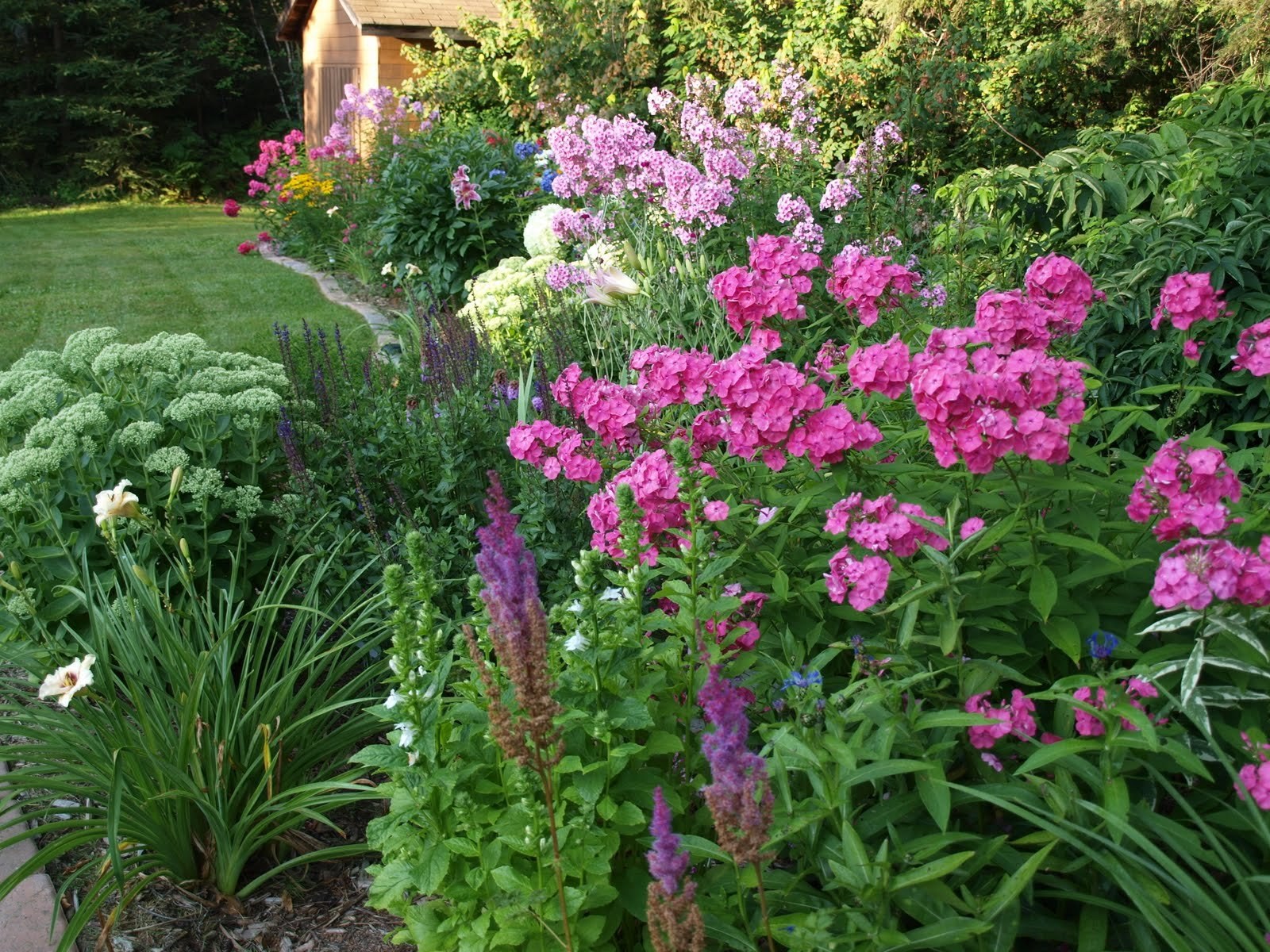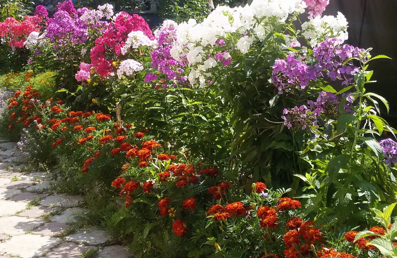 Клумба лилейники, Флоксы, ирисы, пионы, лилии