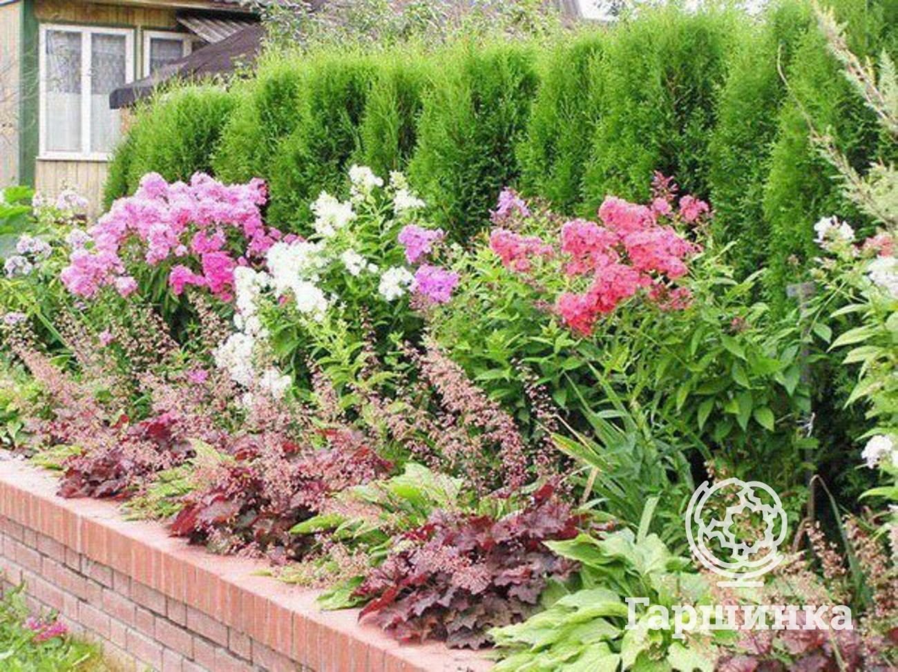 Клумба Мальва дельфиниум Хоста Флоксы рудбекия