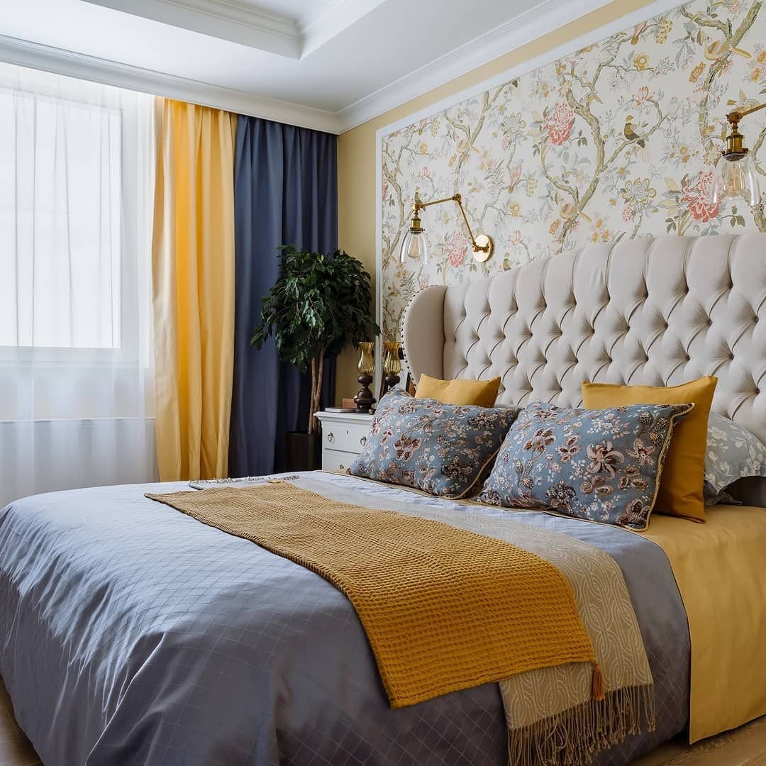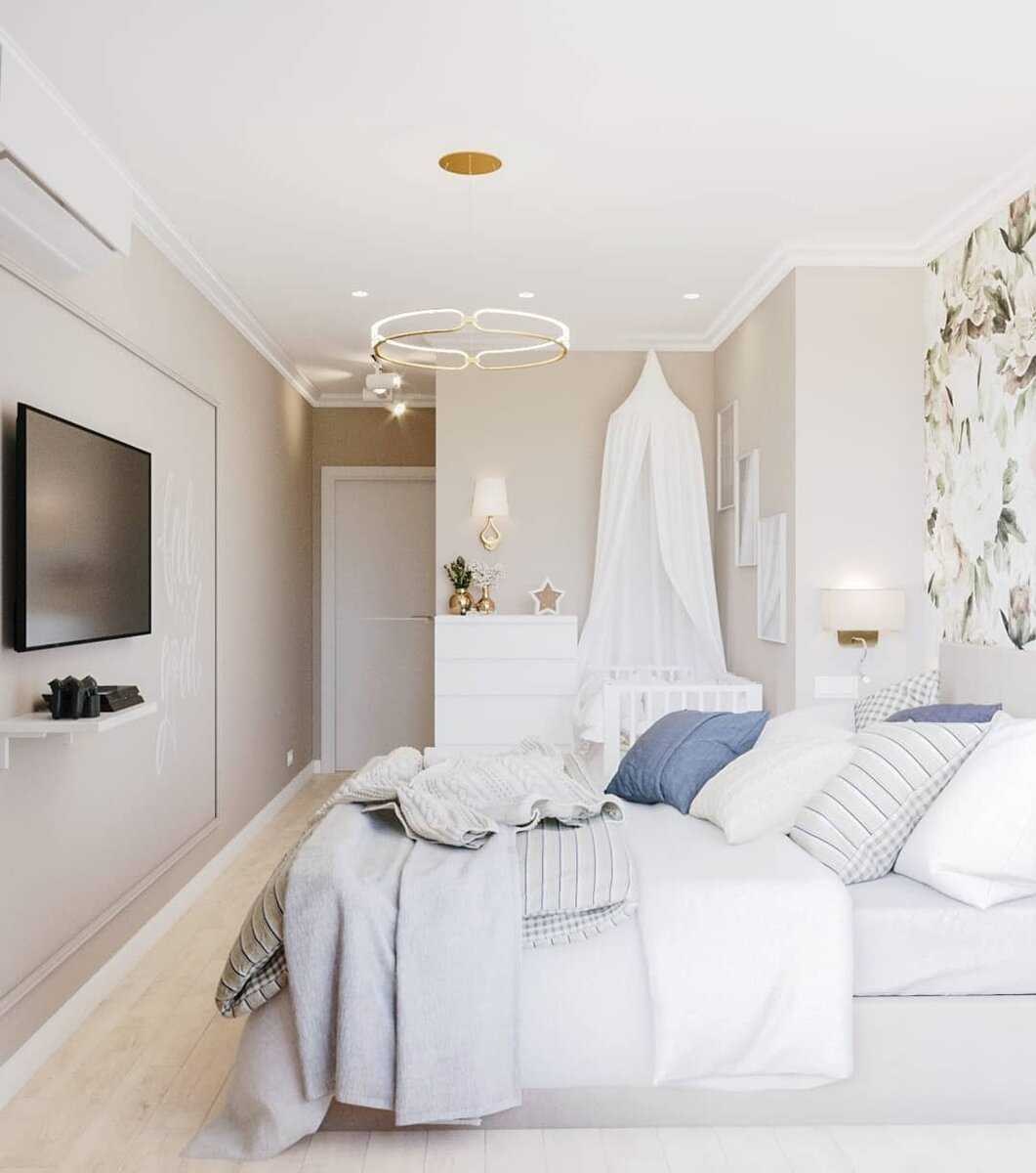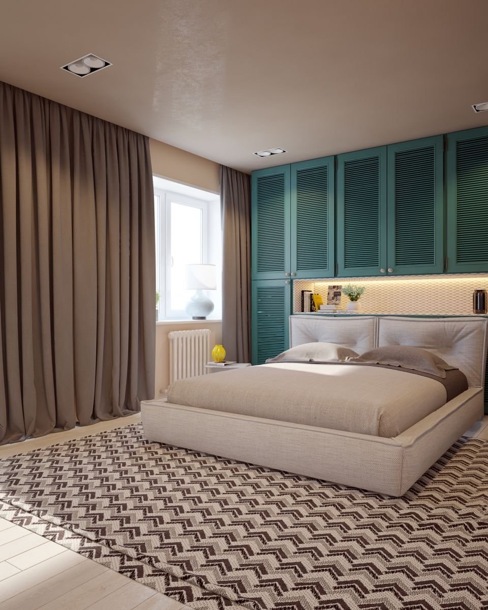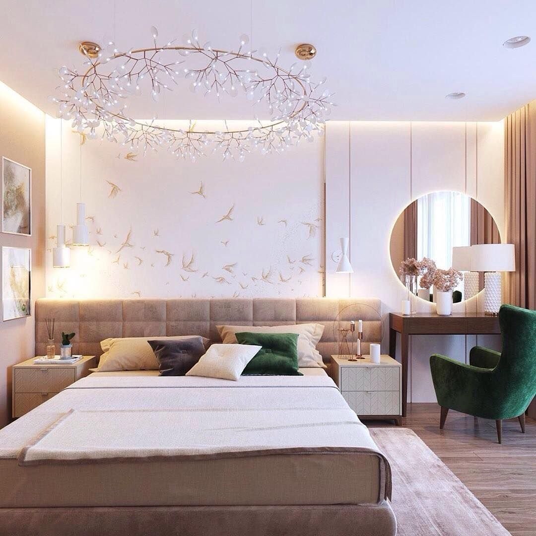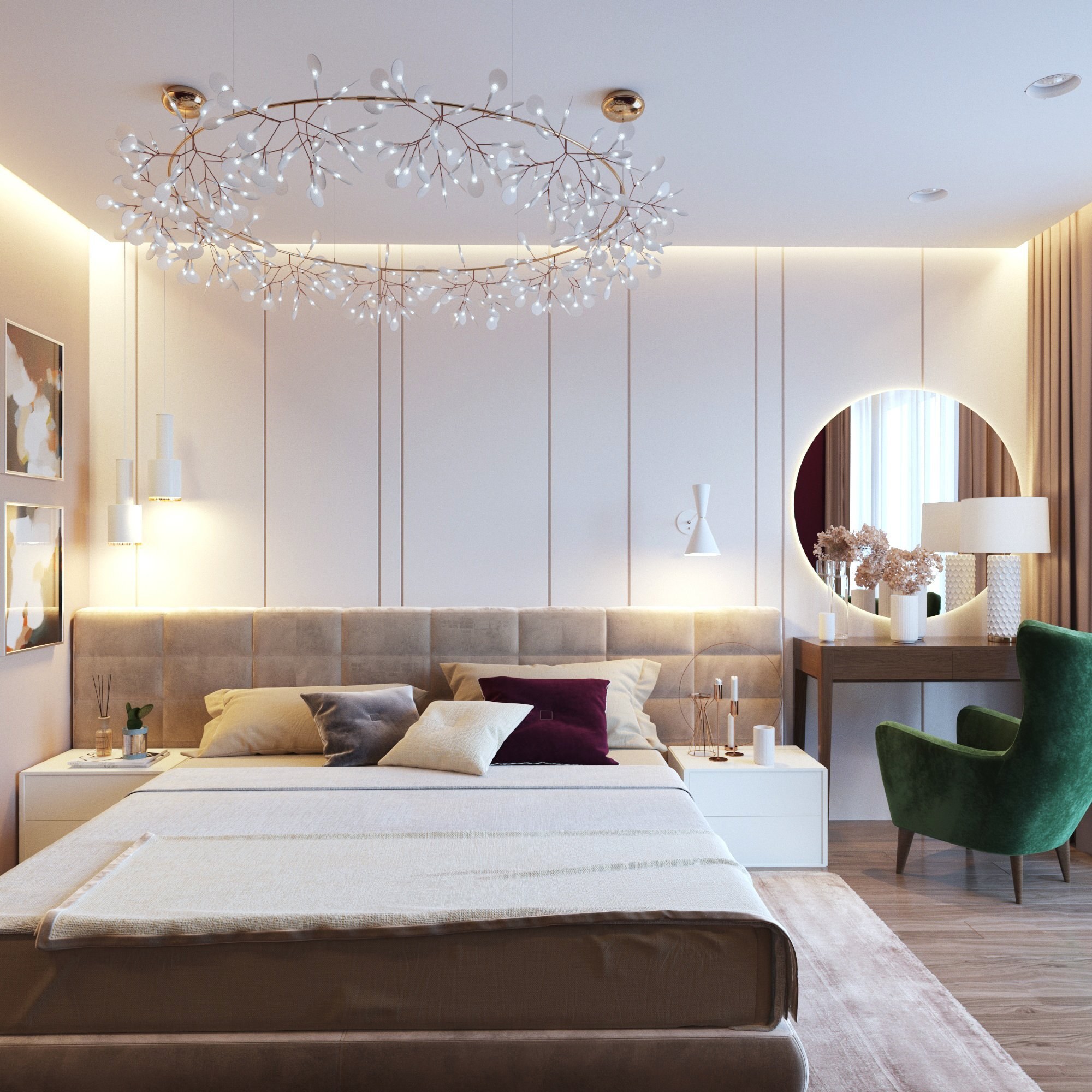 Интерьер гостиной в бежевых тонах с яркими акцентами