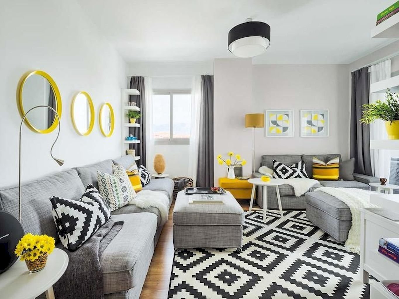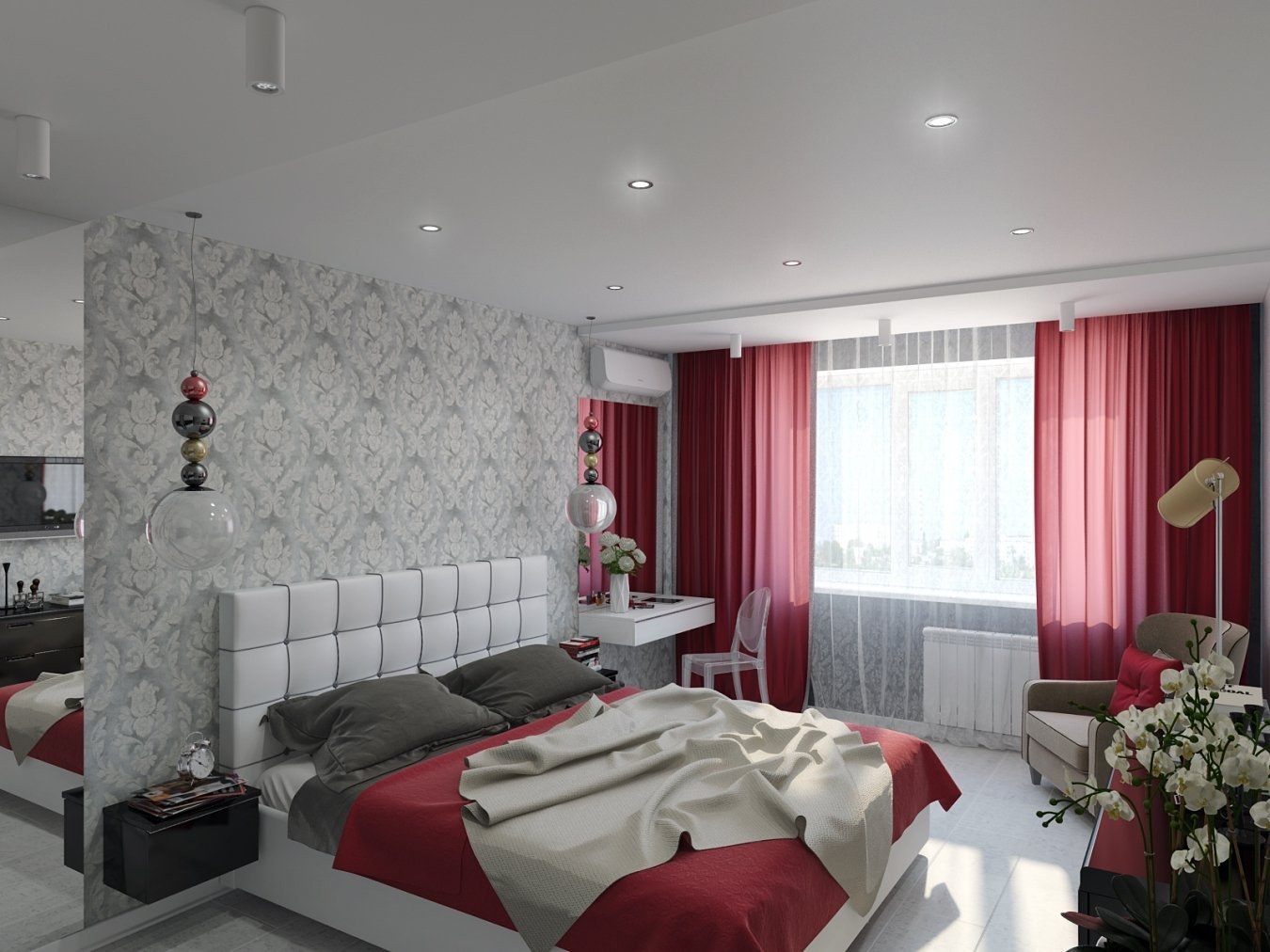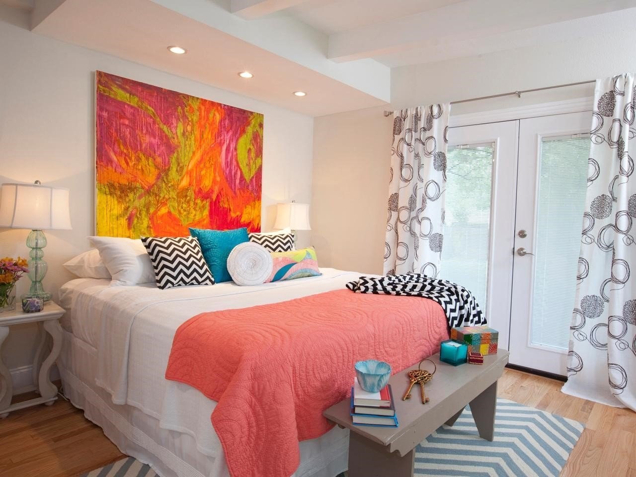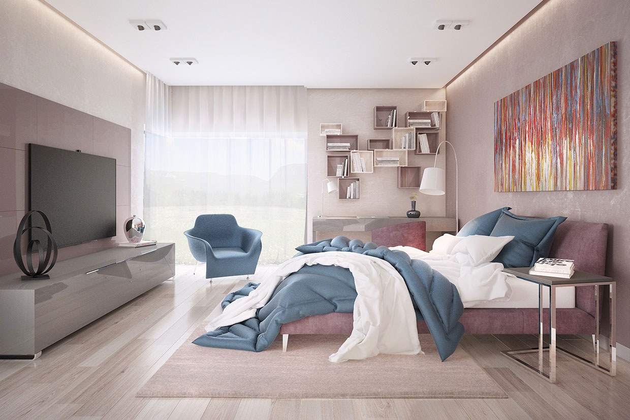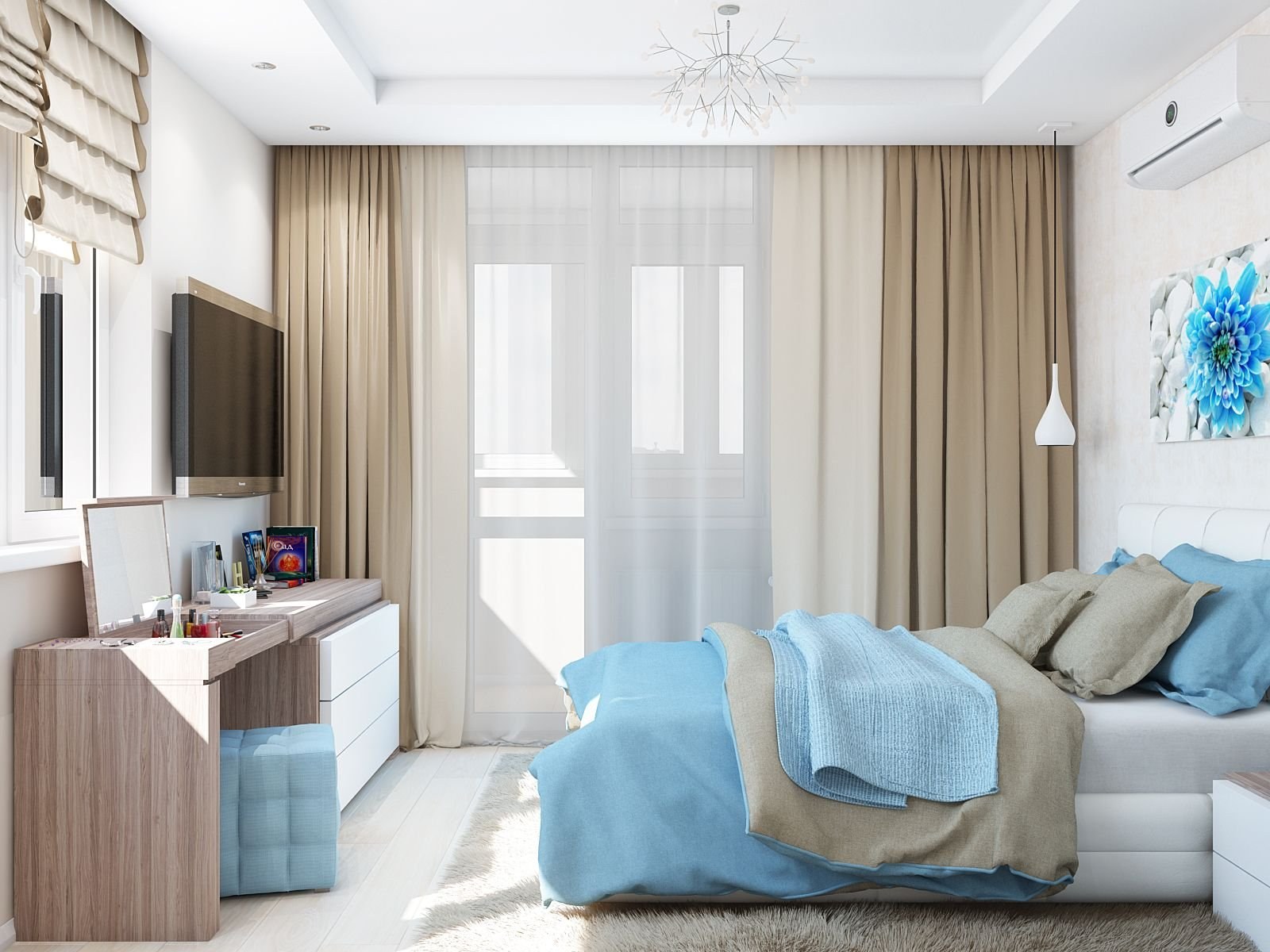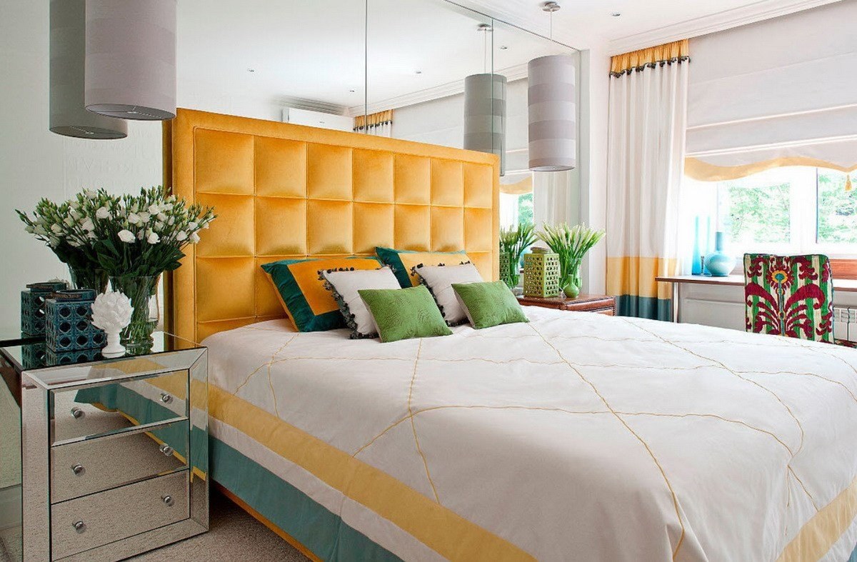 Интерьер гостиной в светлых тонах с яркими акцентами