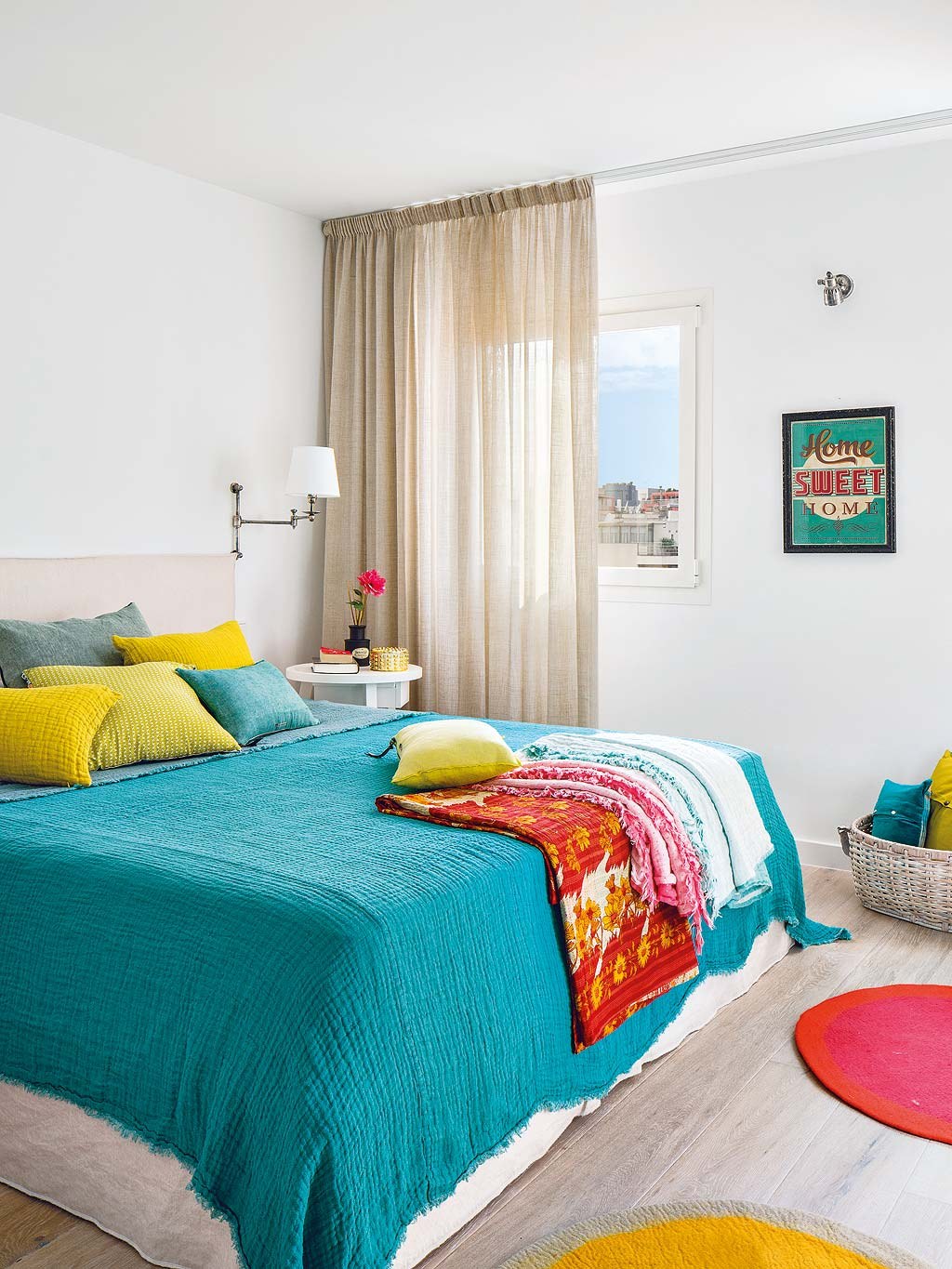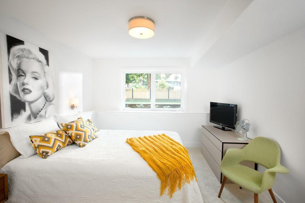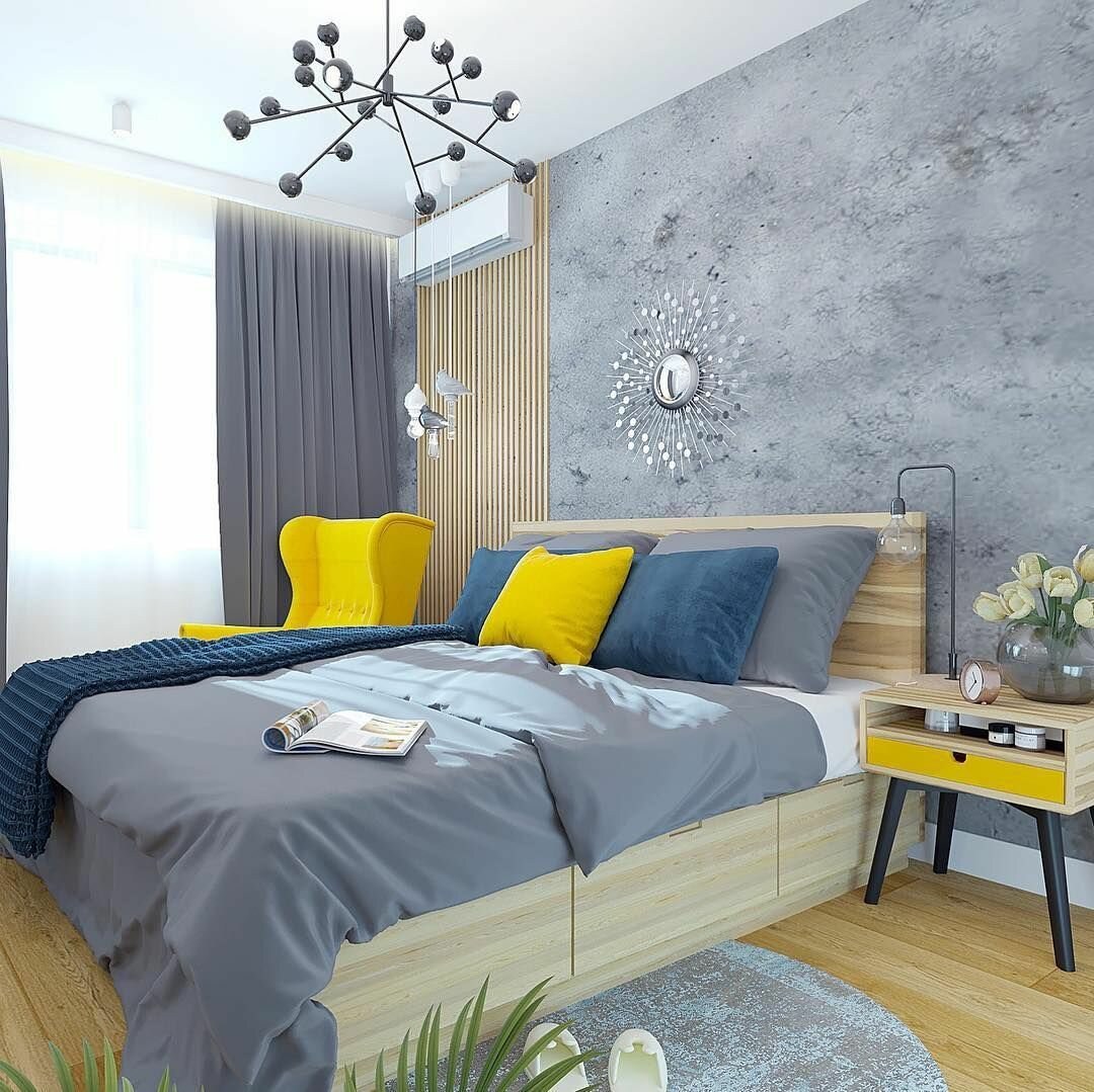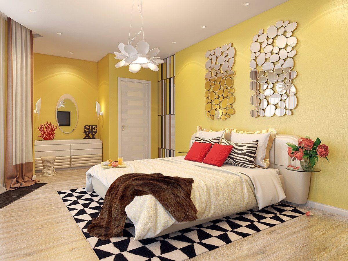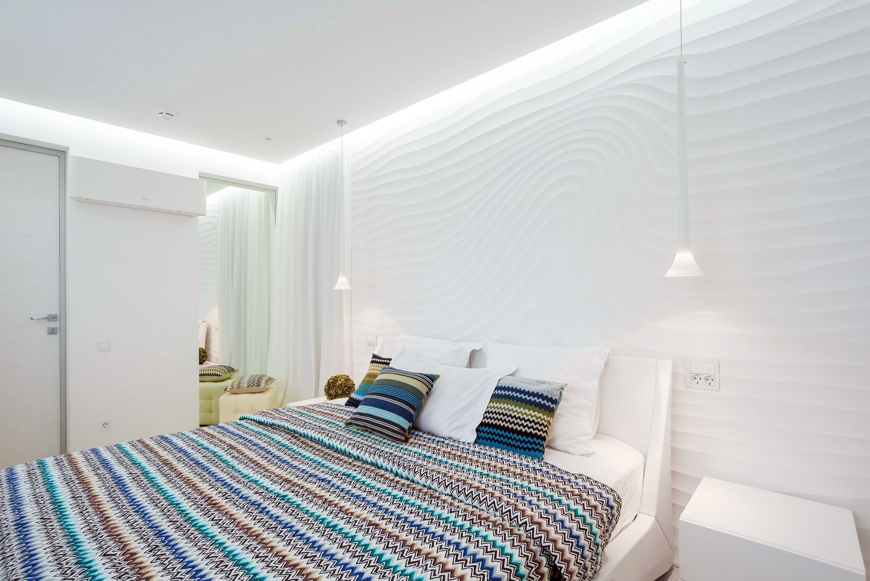 Интерьер гостиной в светлых тонах с яркими акцентами