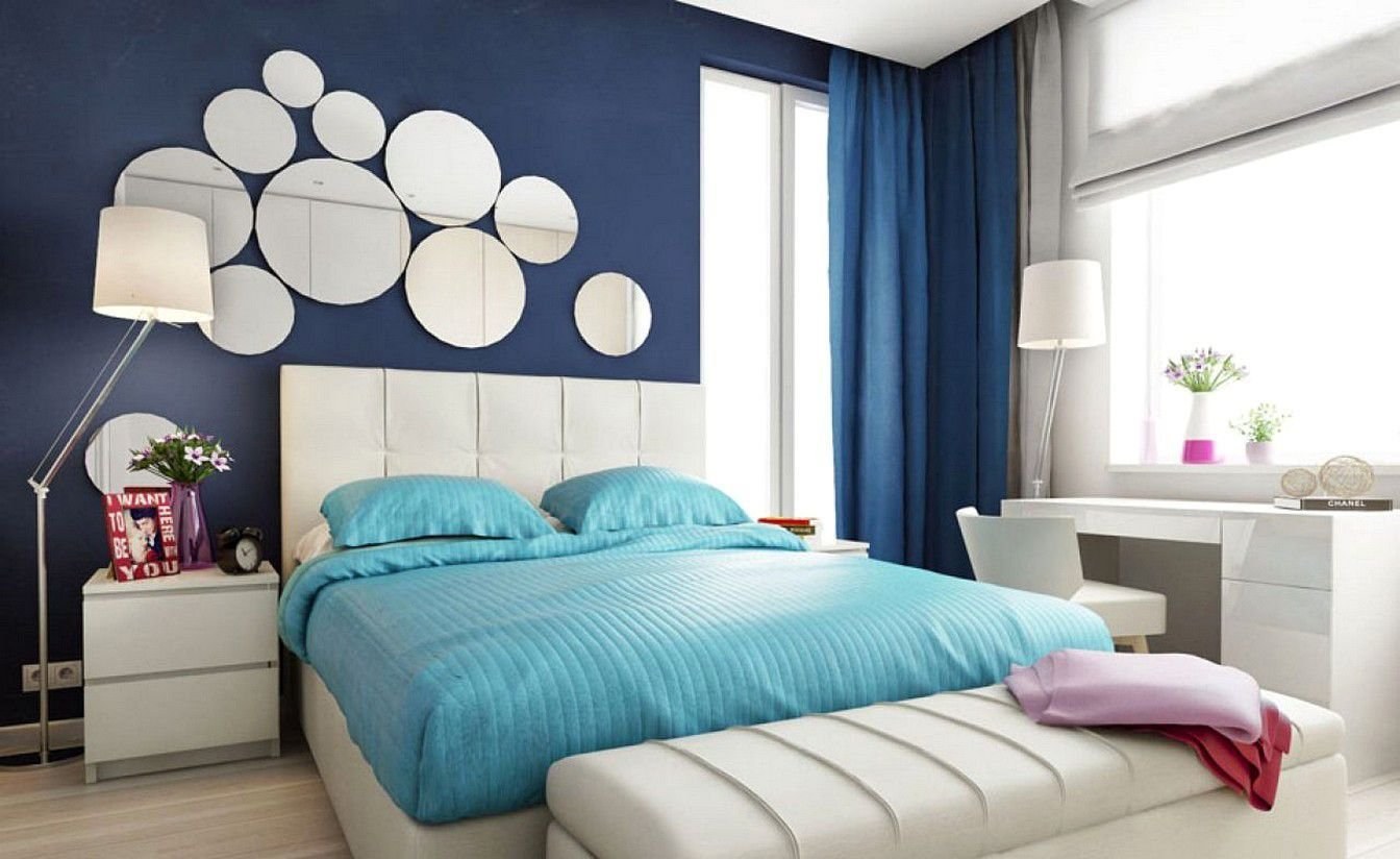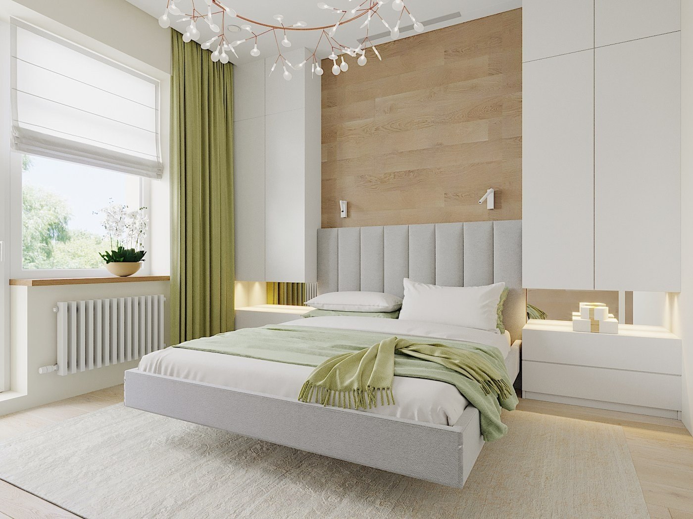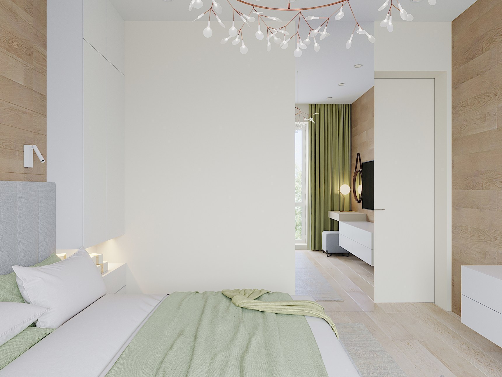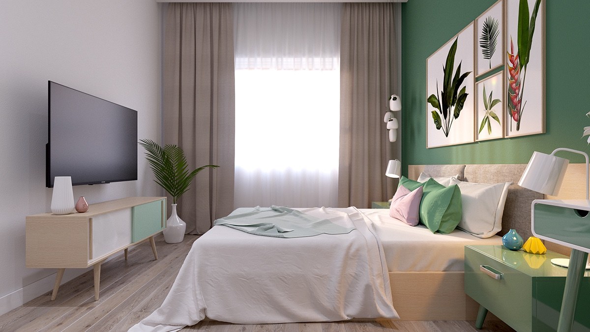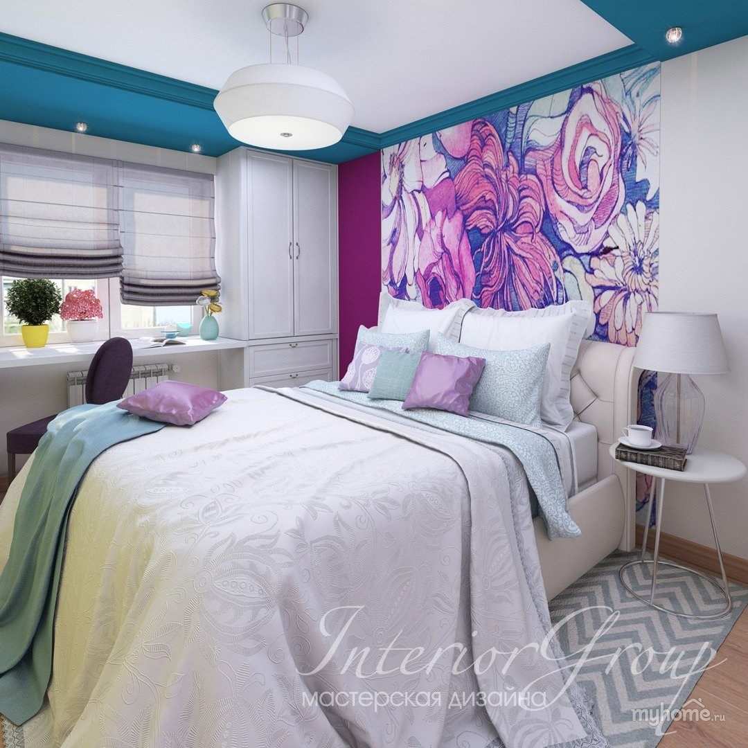 Интерьер гостиной в светлых тонах с яркими акцентами