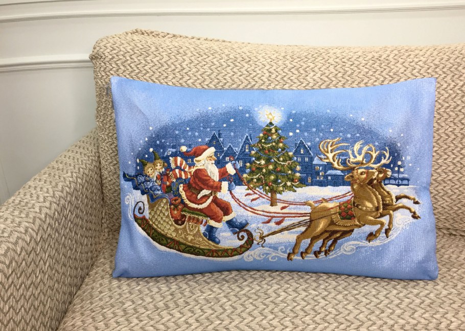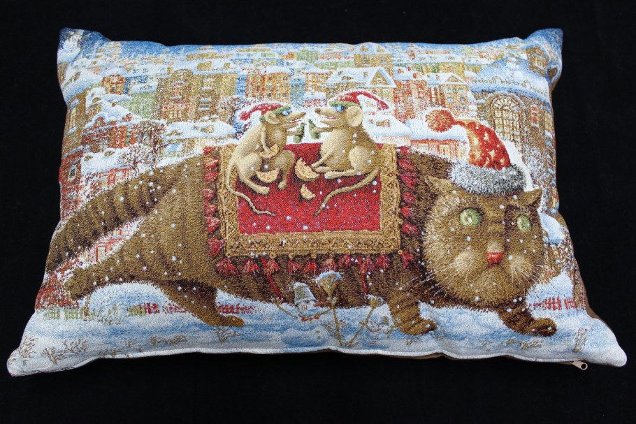 Наволочка из гобелена зимний вечер друзья у кормушки Ле гобелен