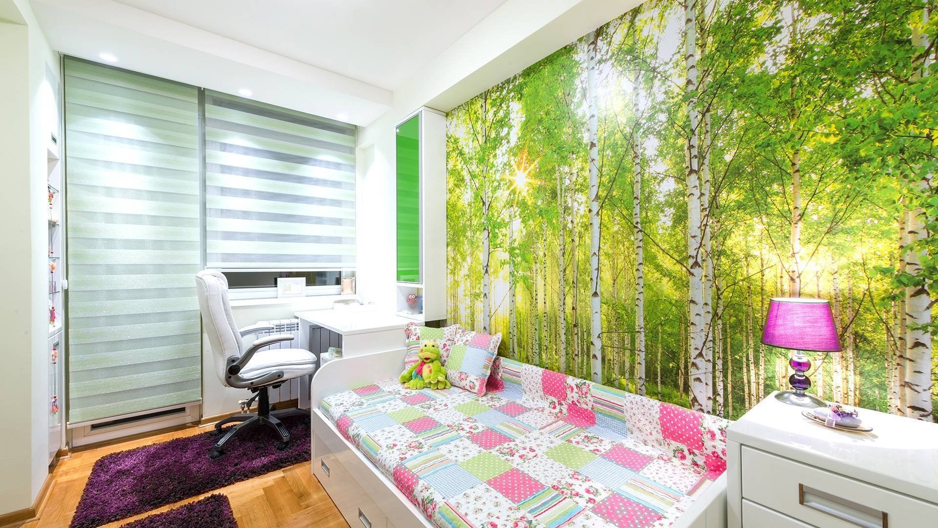 Фотообои в интерьере маленькой комнаты