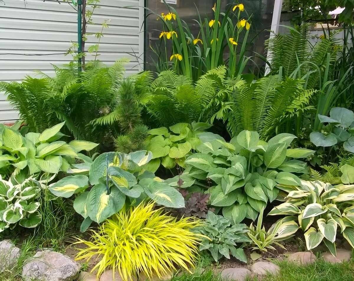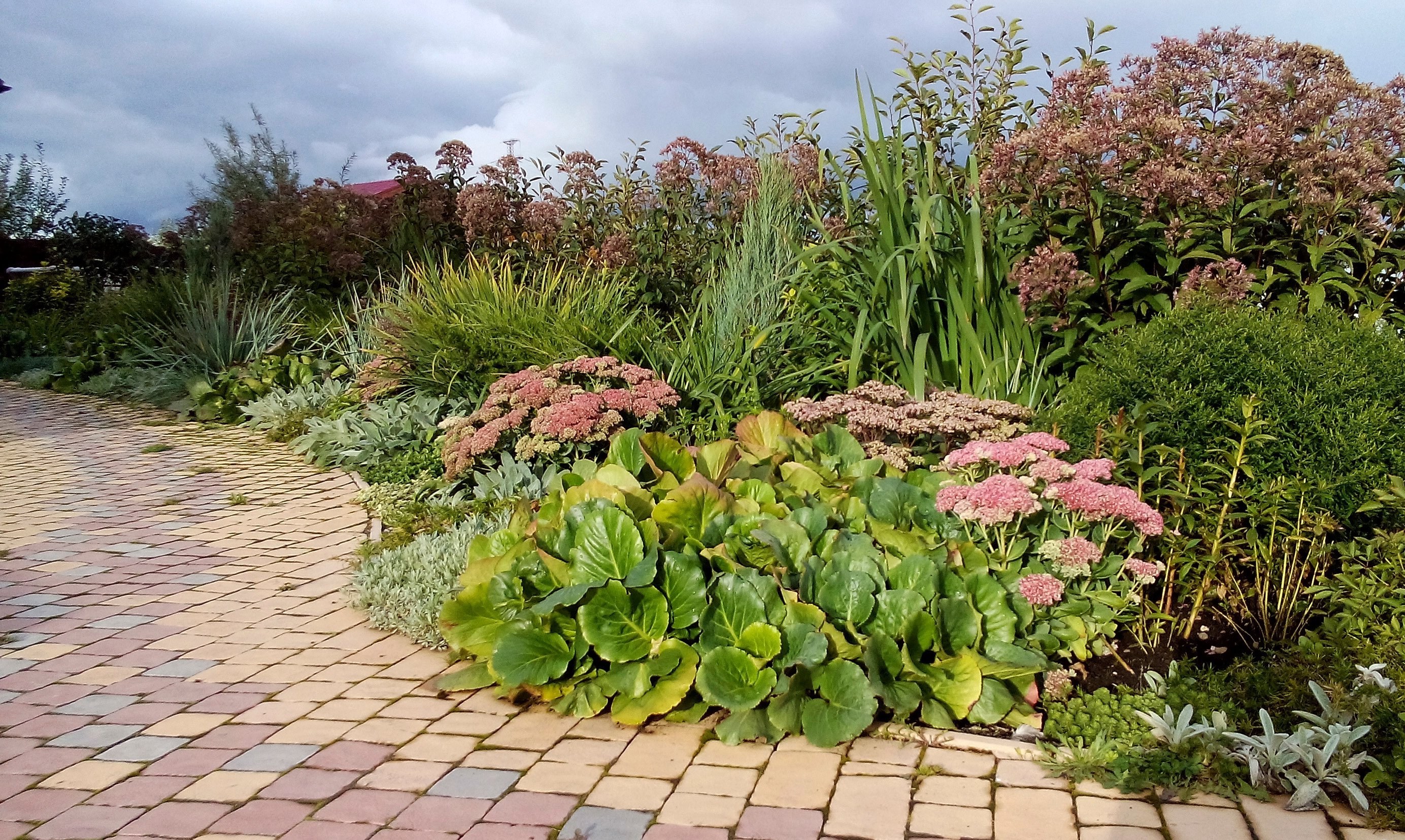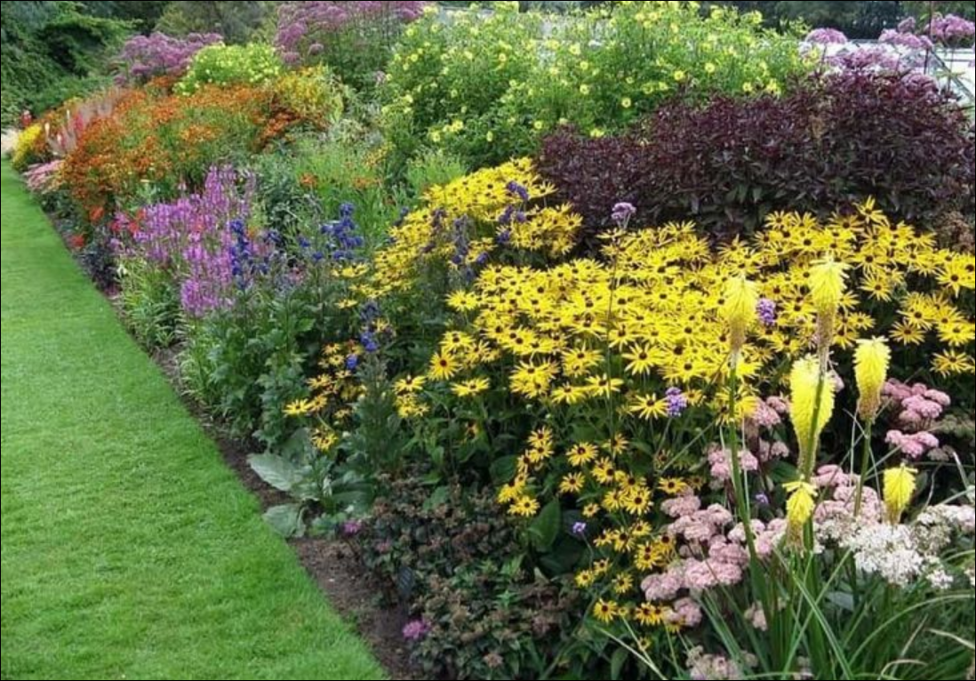 Клумба Мальва дельфиниум Хоста Флоксы рудбекия