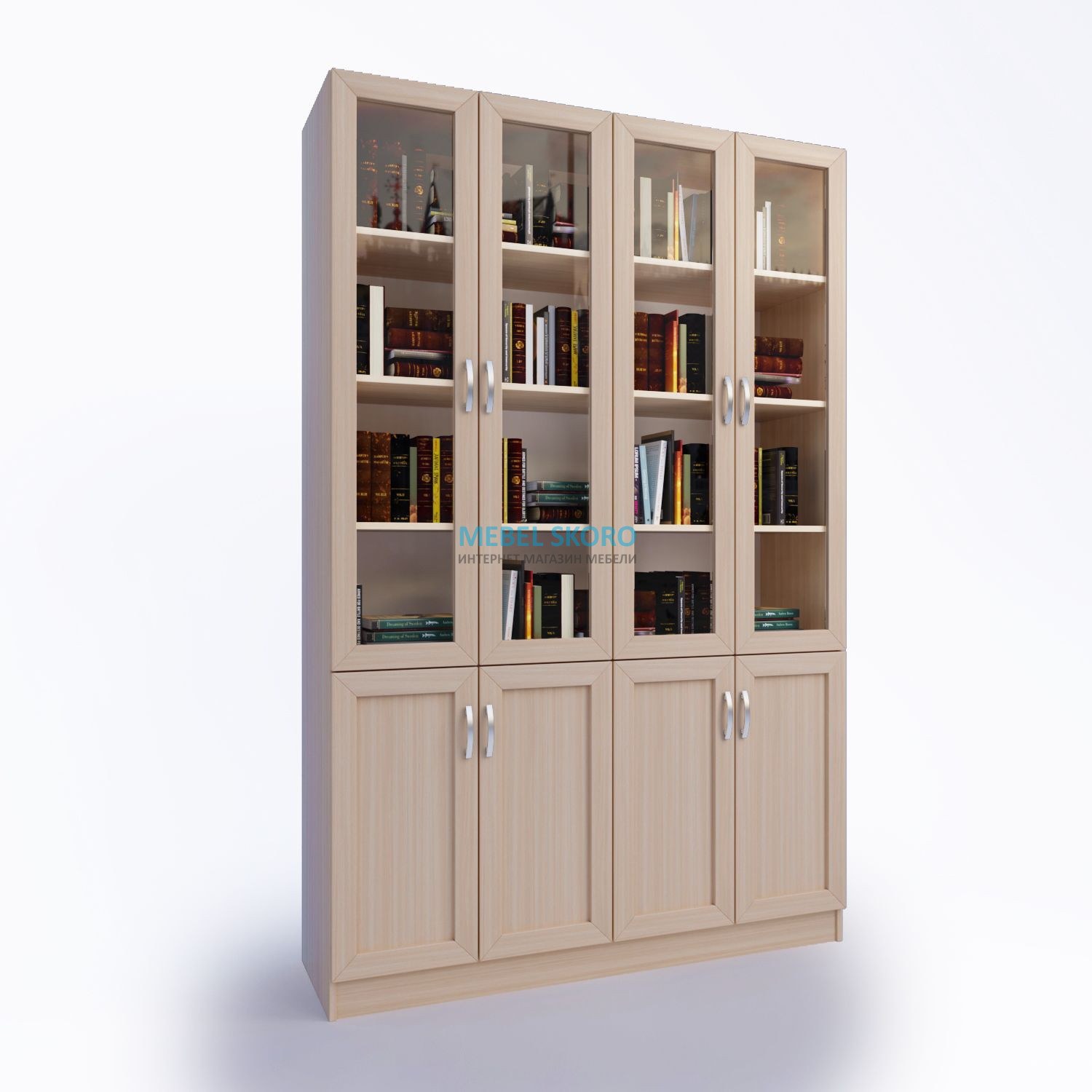 Шкаф книжный со стеклянными дверцами; r5s72 моно-Люкс